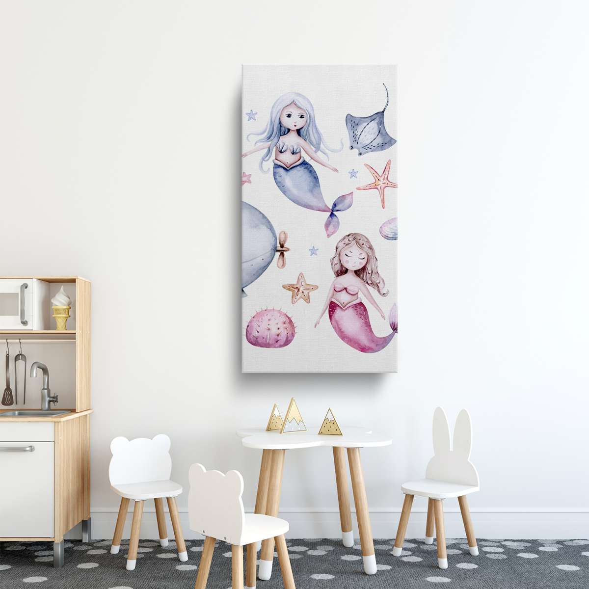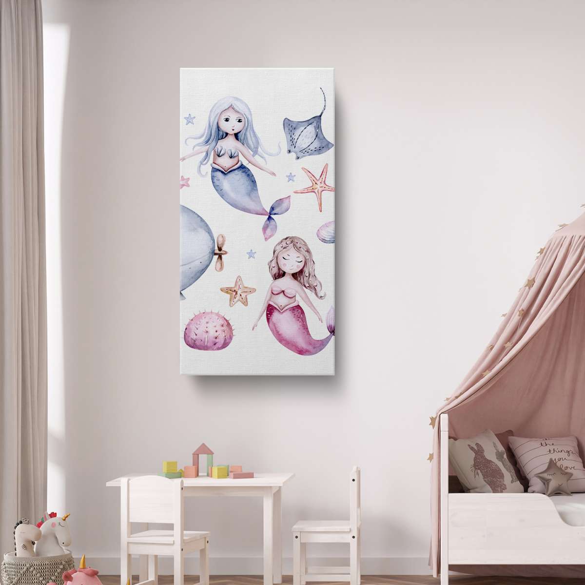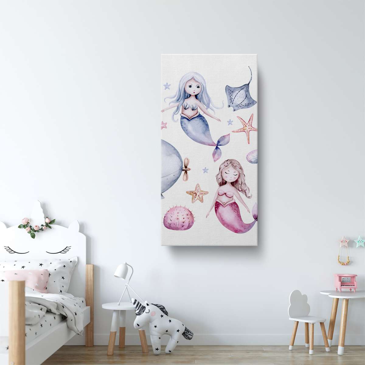 Mořský život s mořskými pannami - akvarel