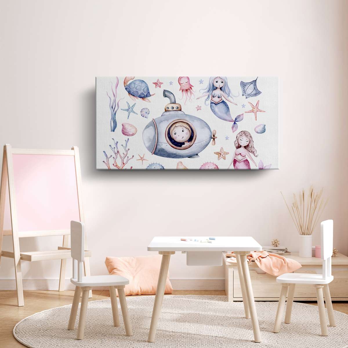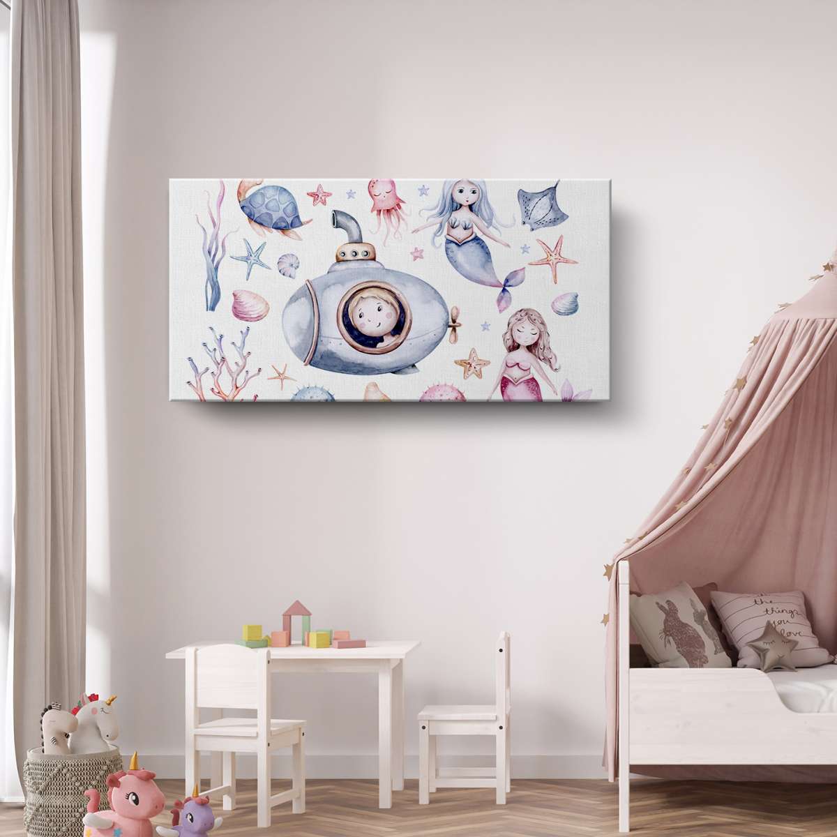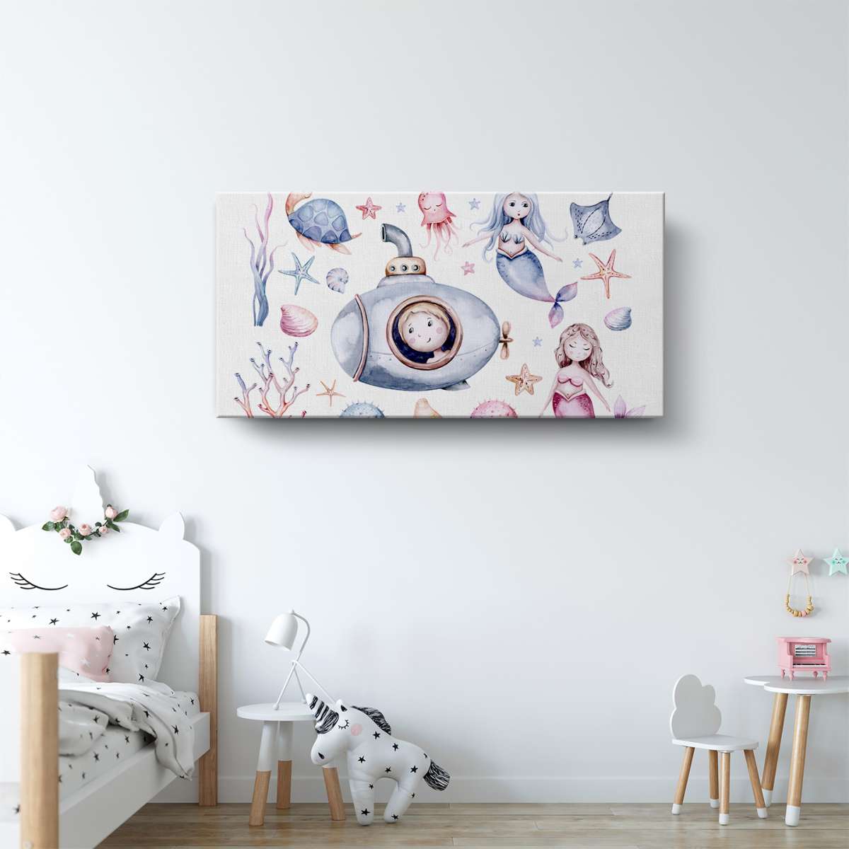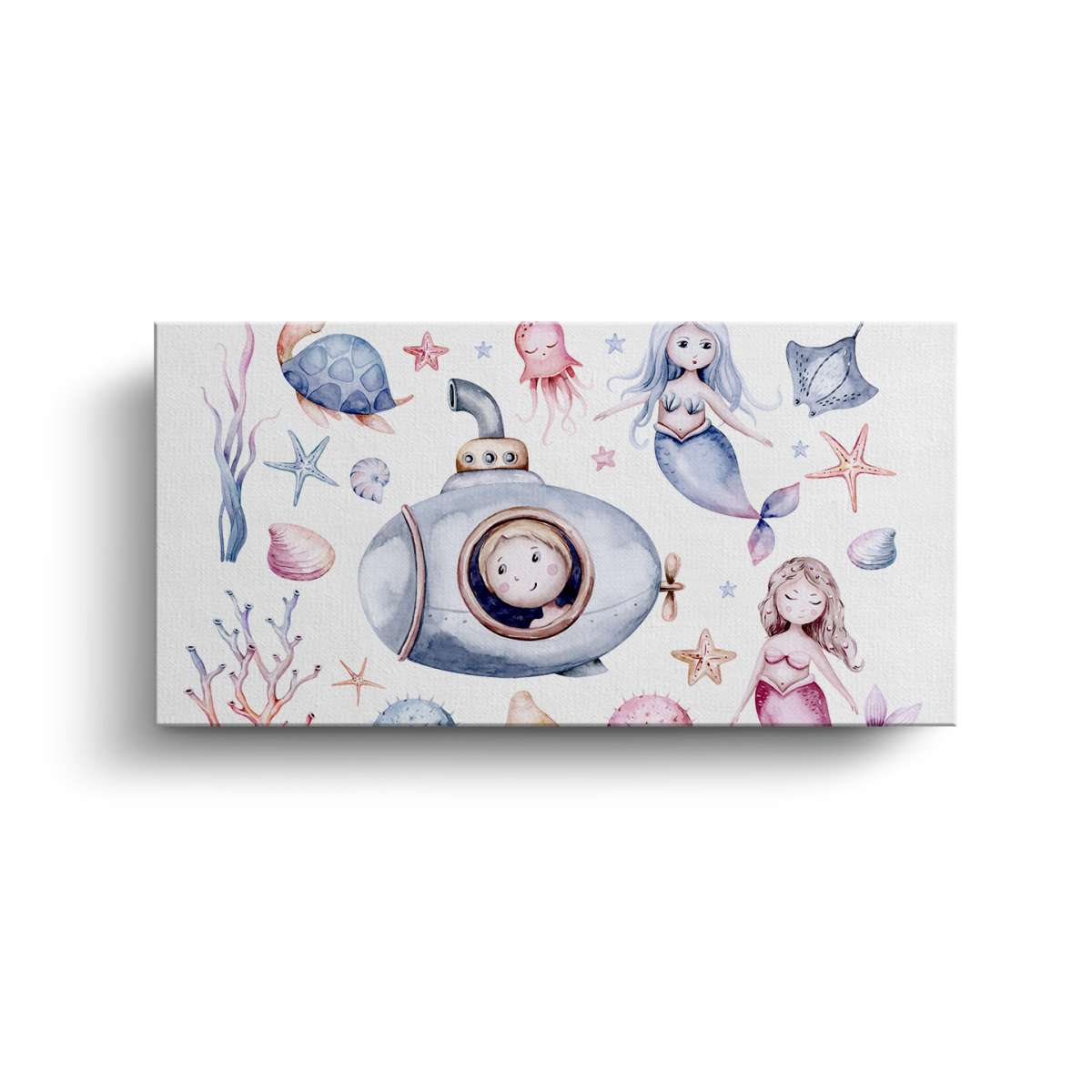 Mořský život s mořskými pannami - akvarel