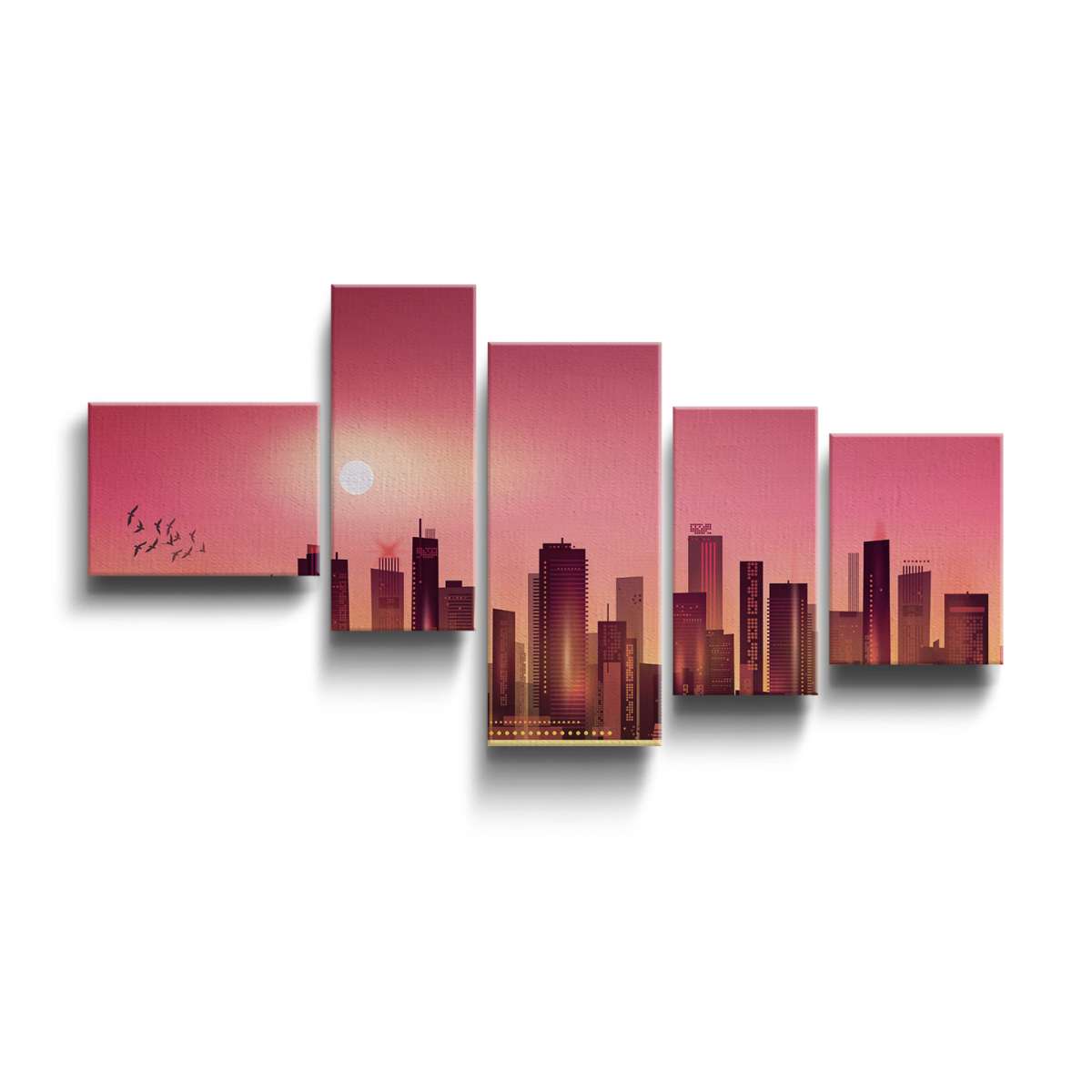 Mrakodrapy města při západu slunce - ilustrace