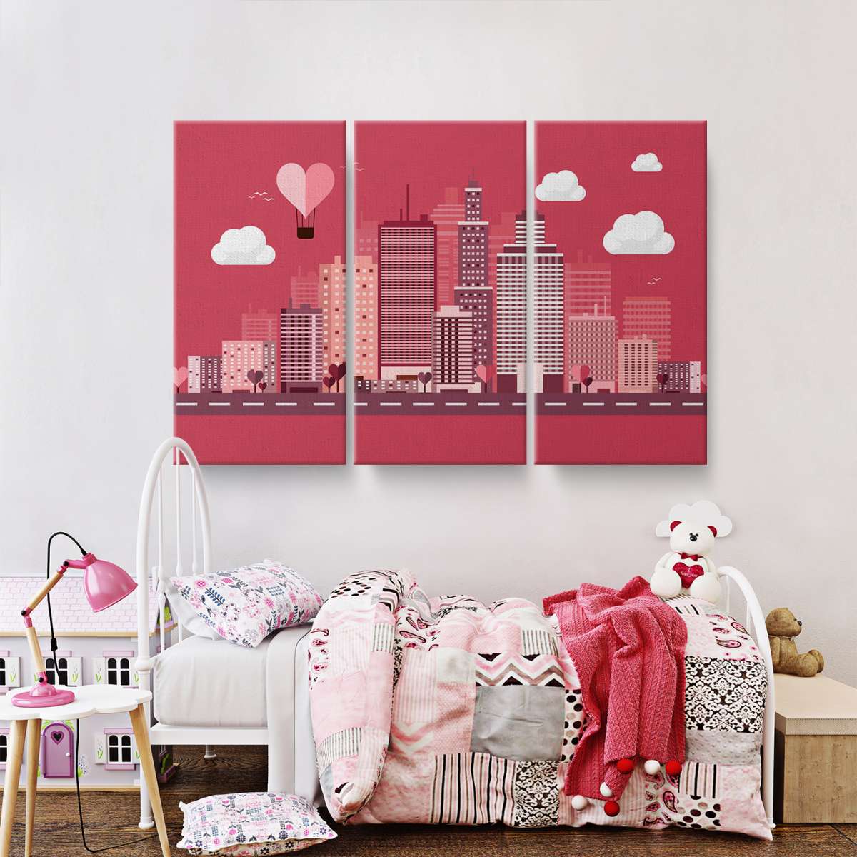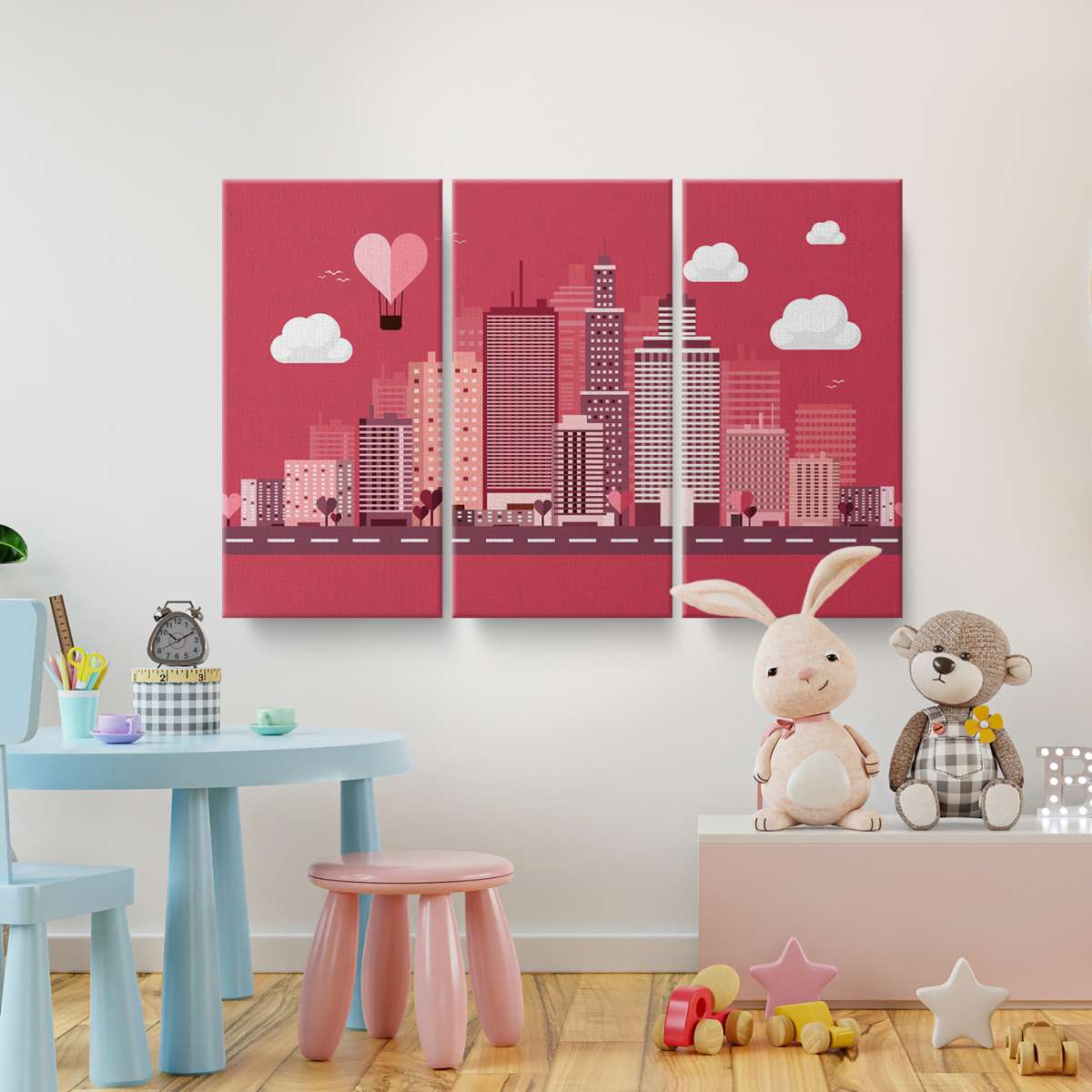 Mrakodrapy města se srdíčky - ilustrace