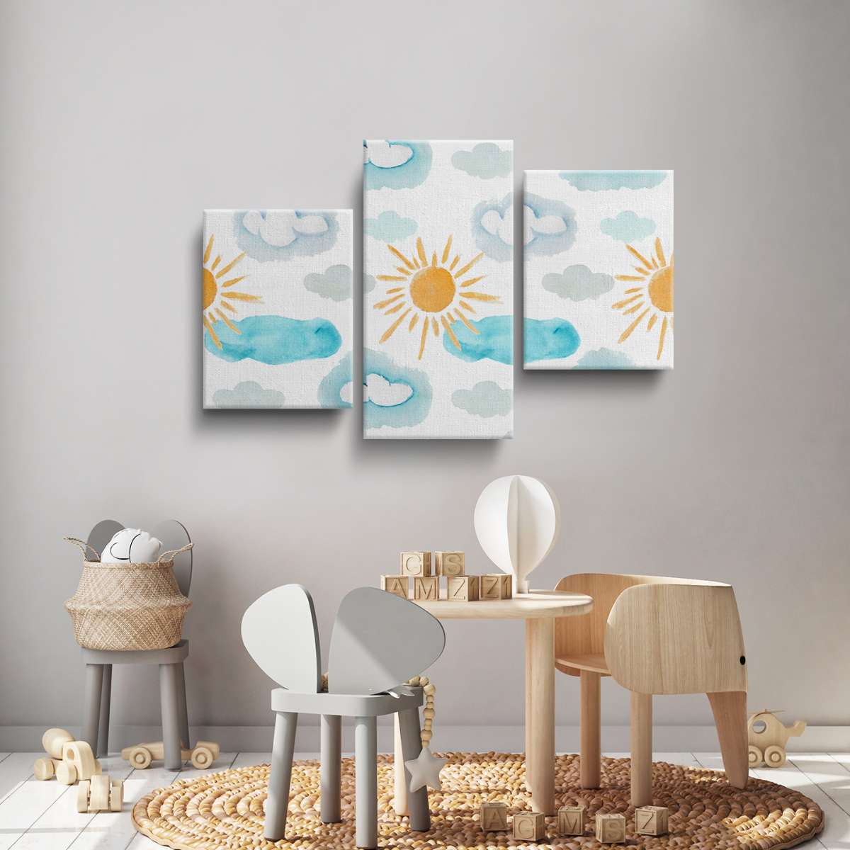 Mraky a slunce - akvarel
