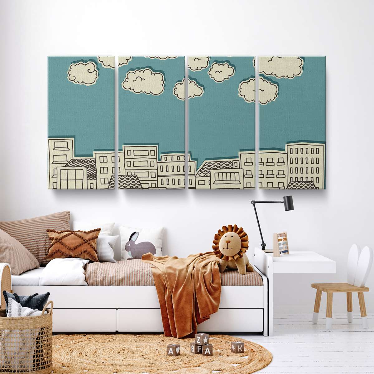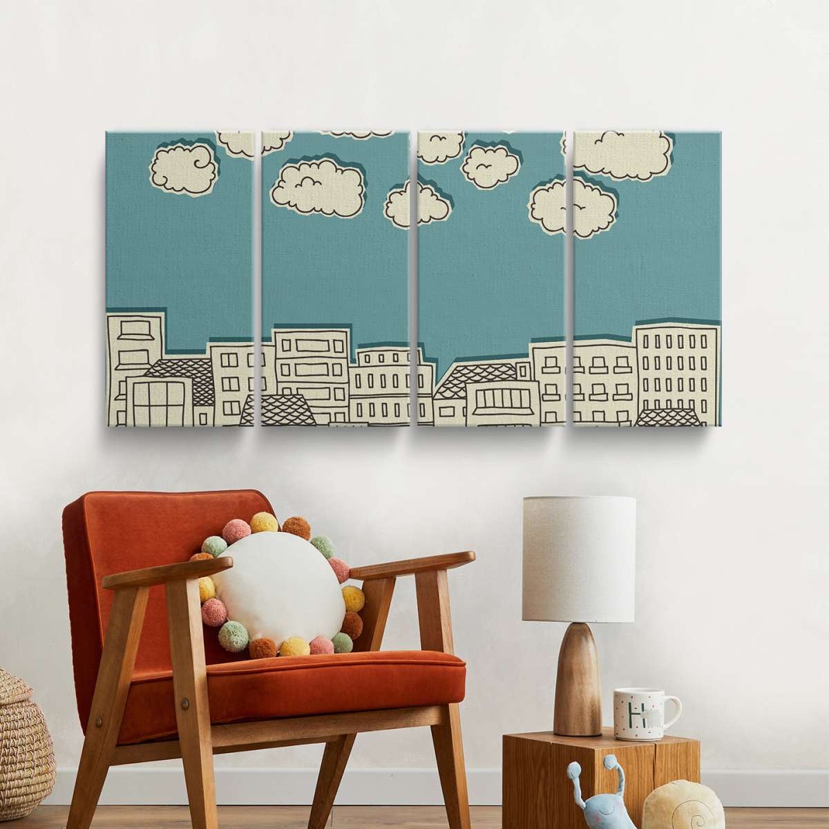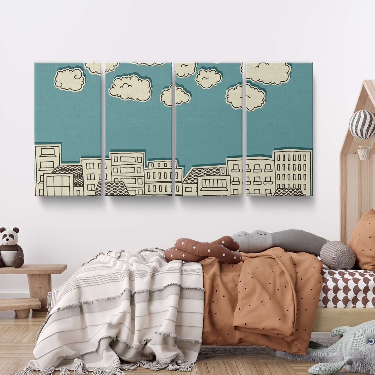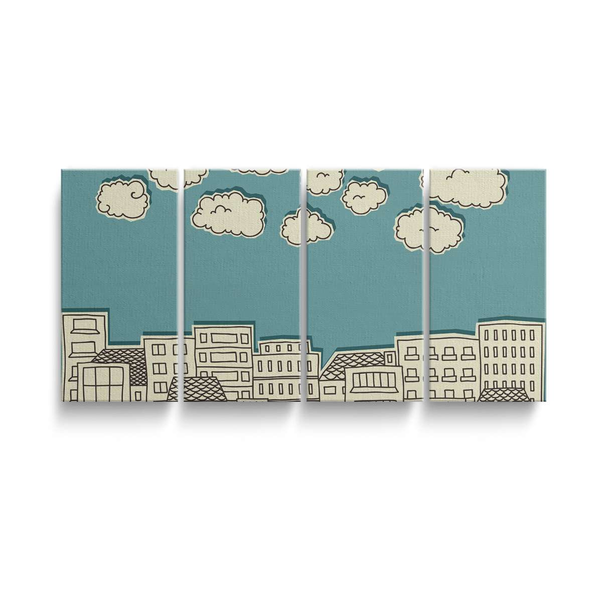 Mraky nad městem - papírová ilustrace