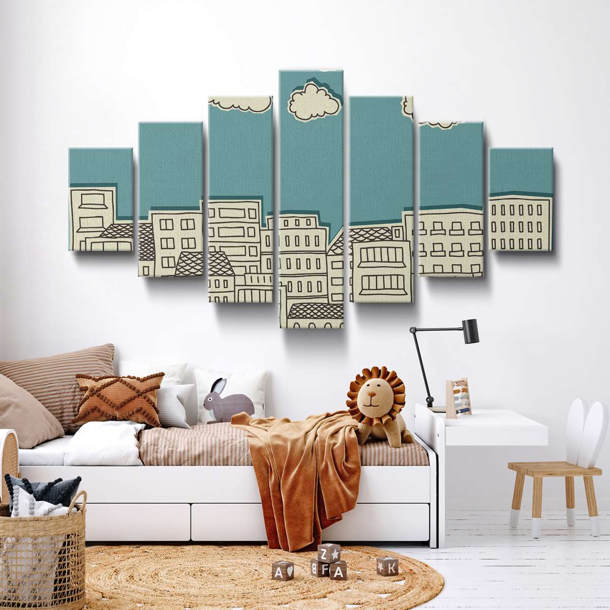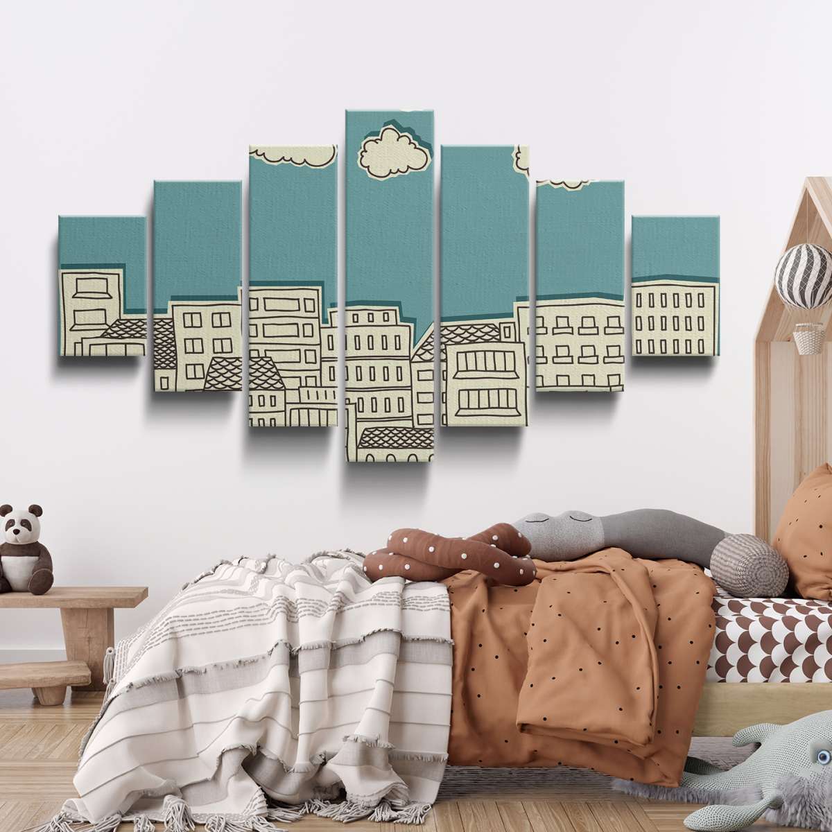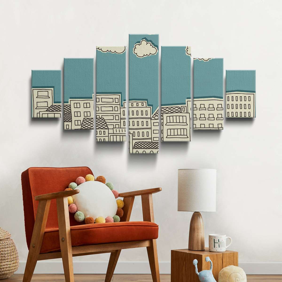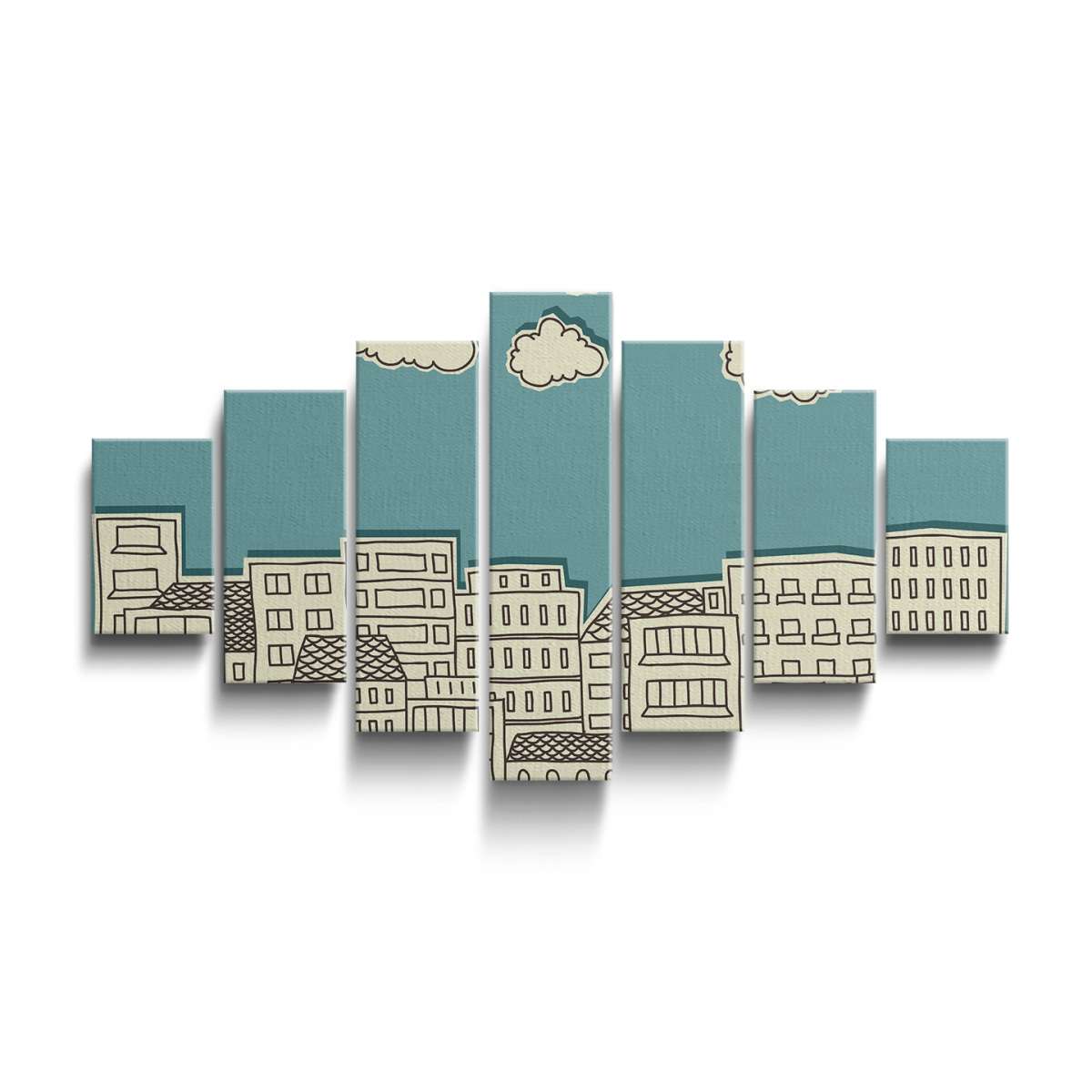 Mraky nad městem - papírová ilustrace