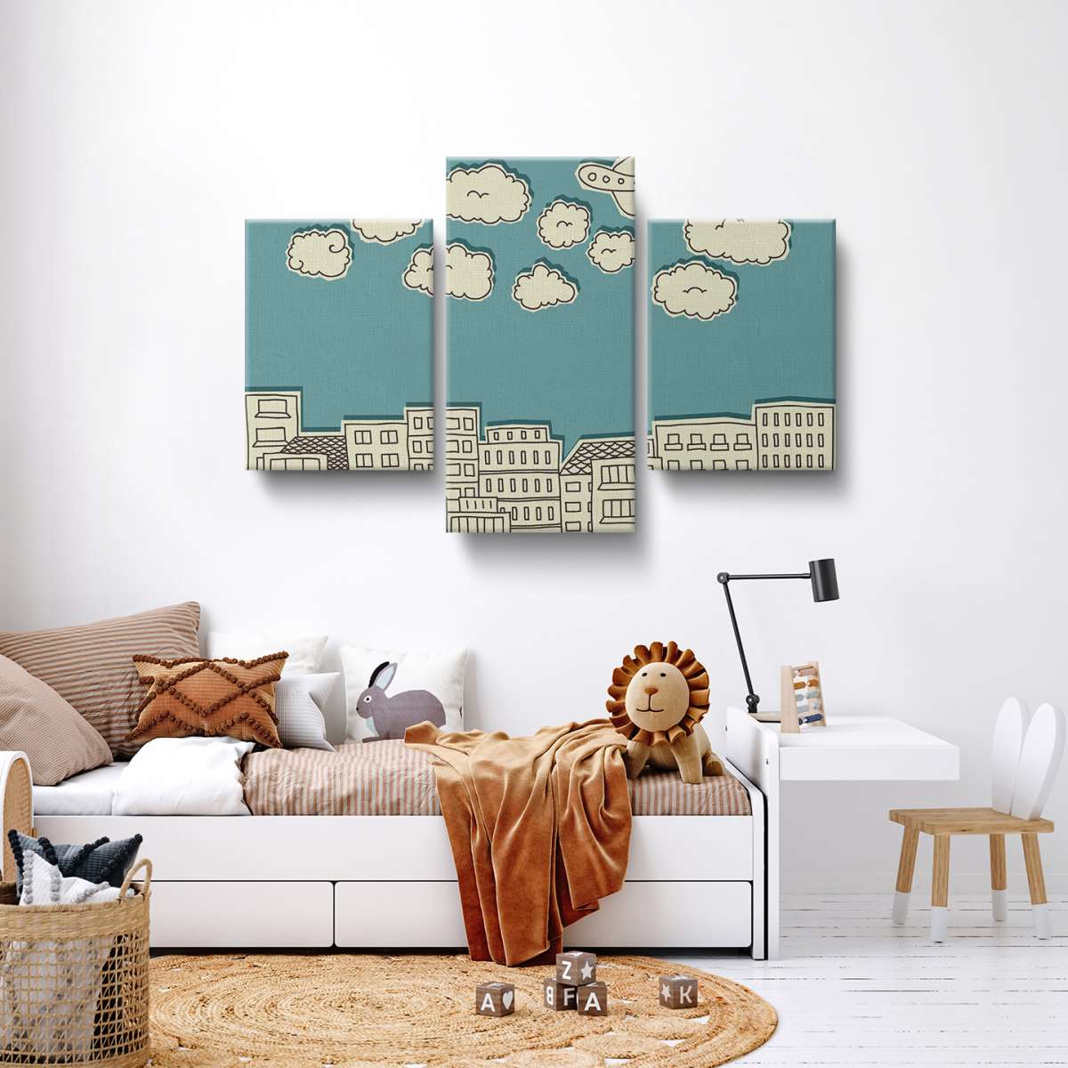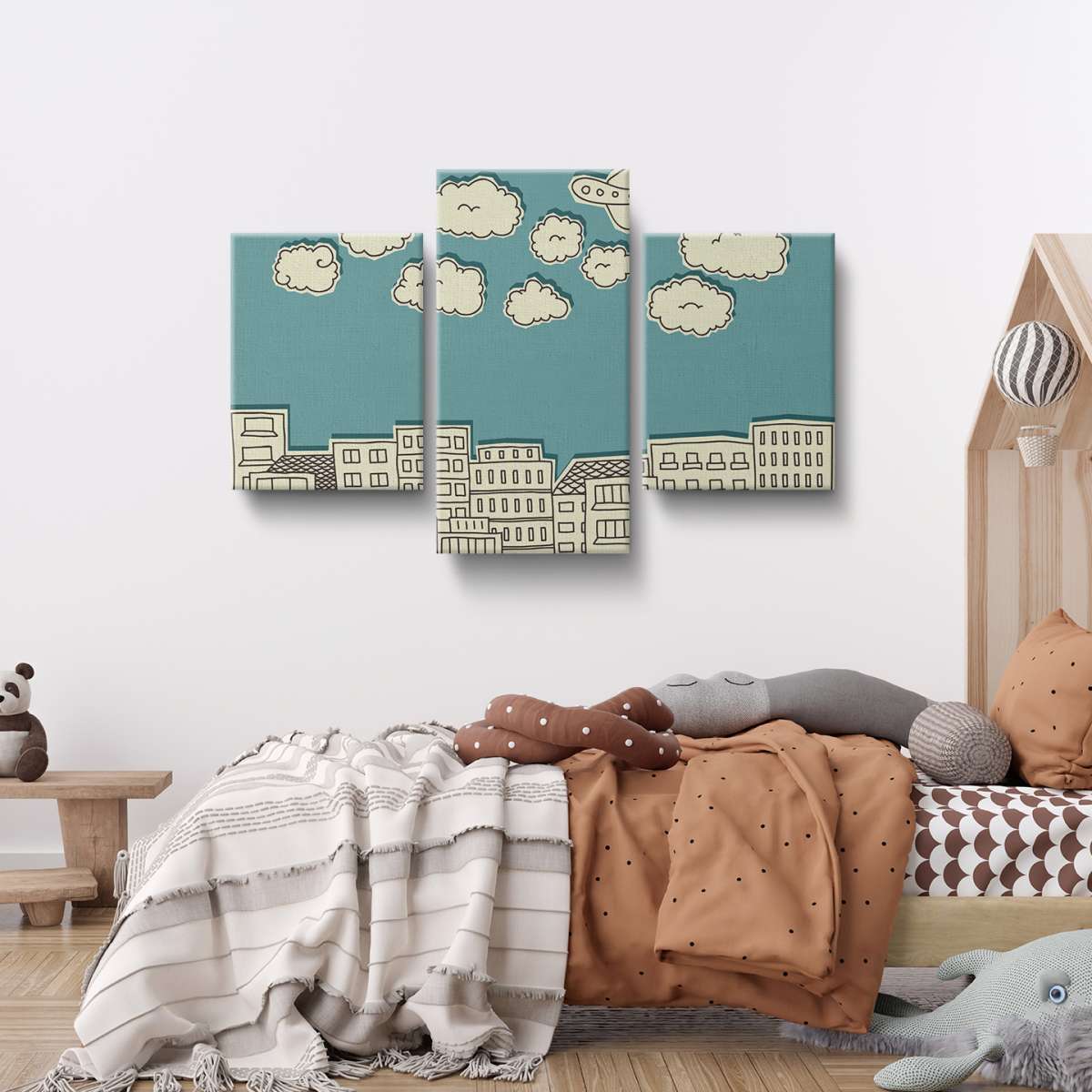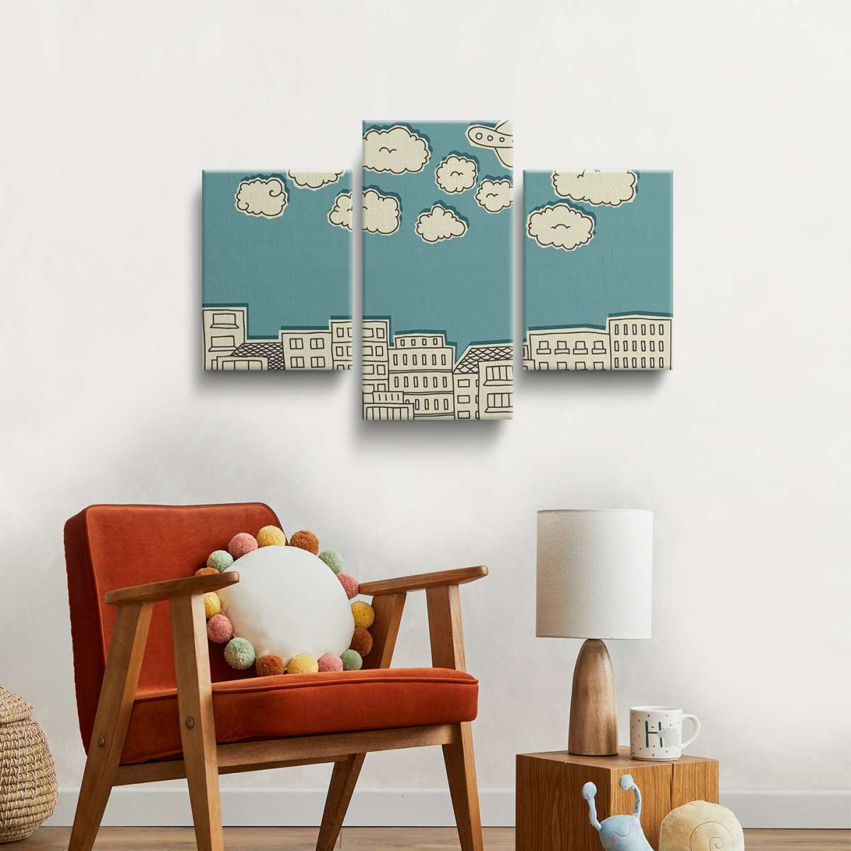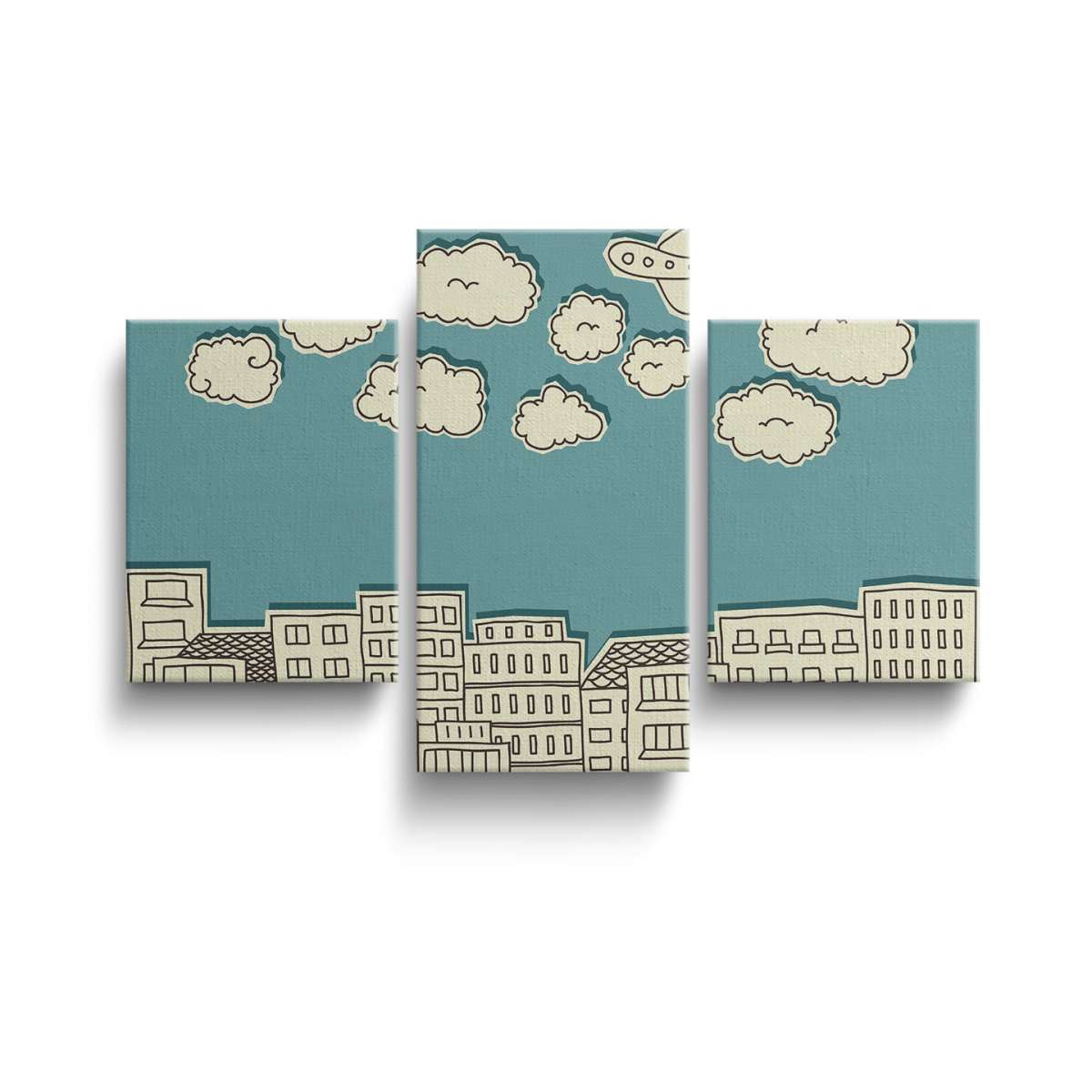Mraky nad městem - papírová ilustrace