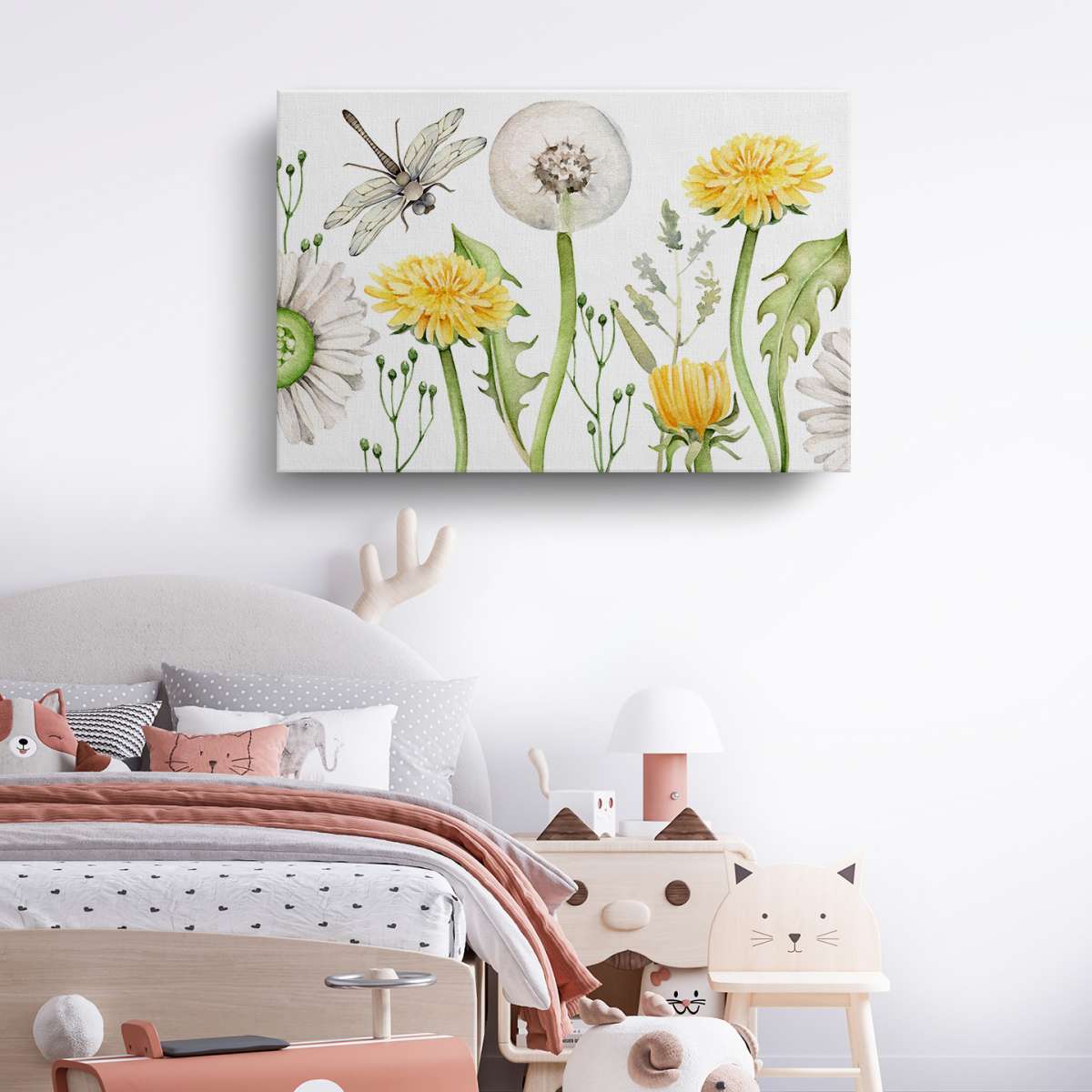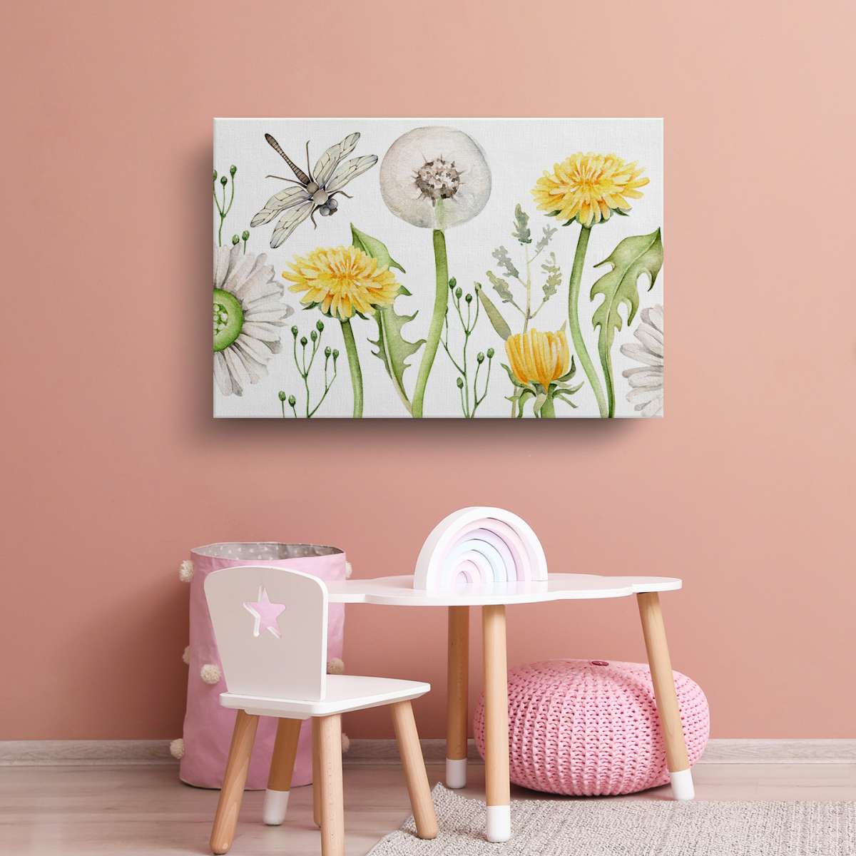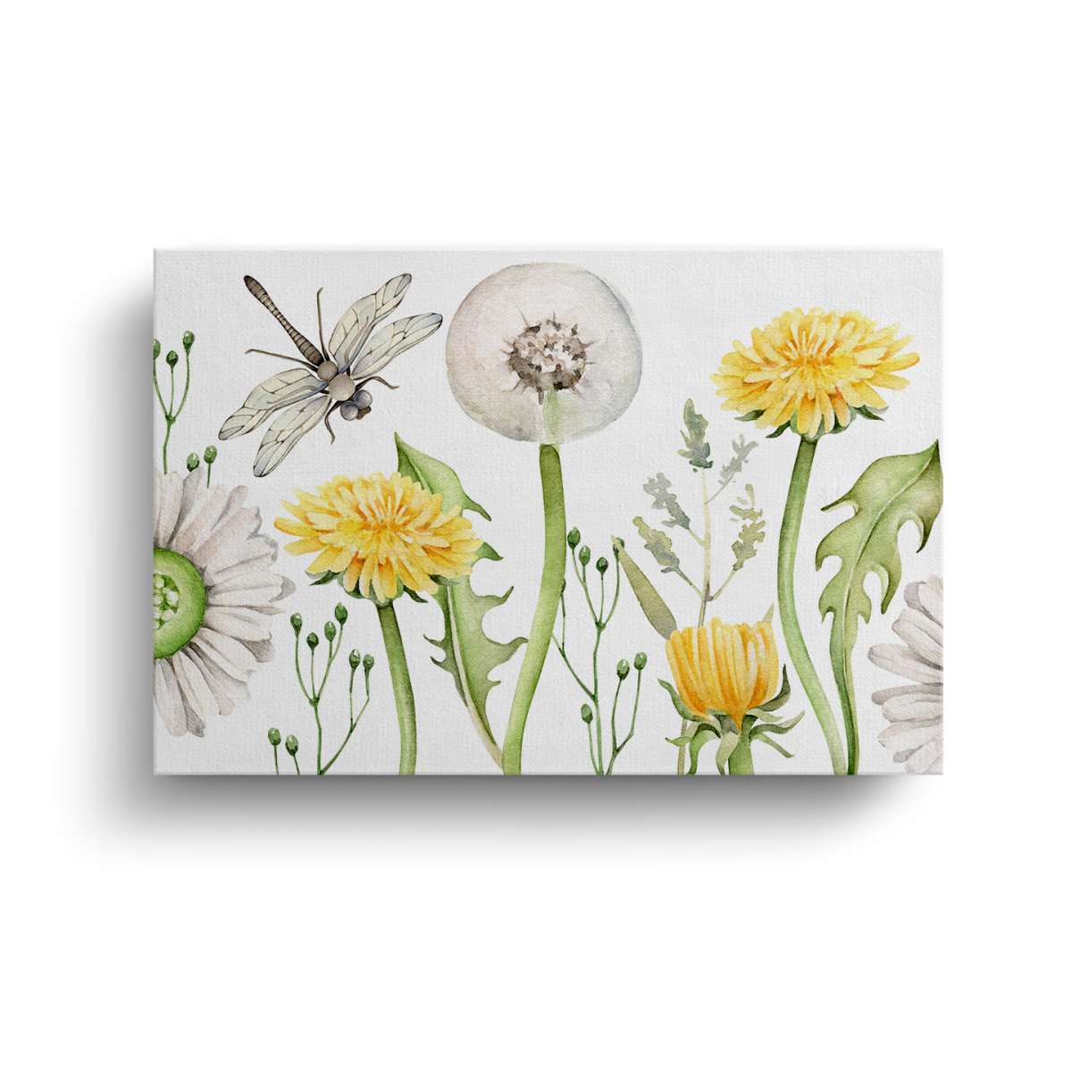 Pampelišky a vážka - akvarel