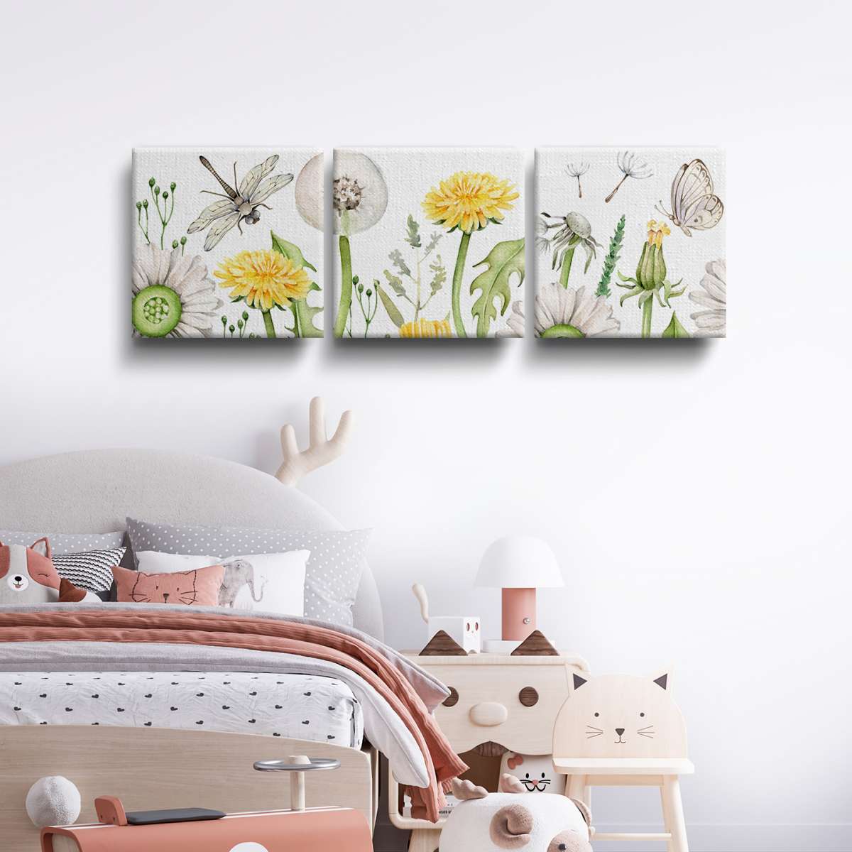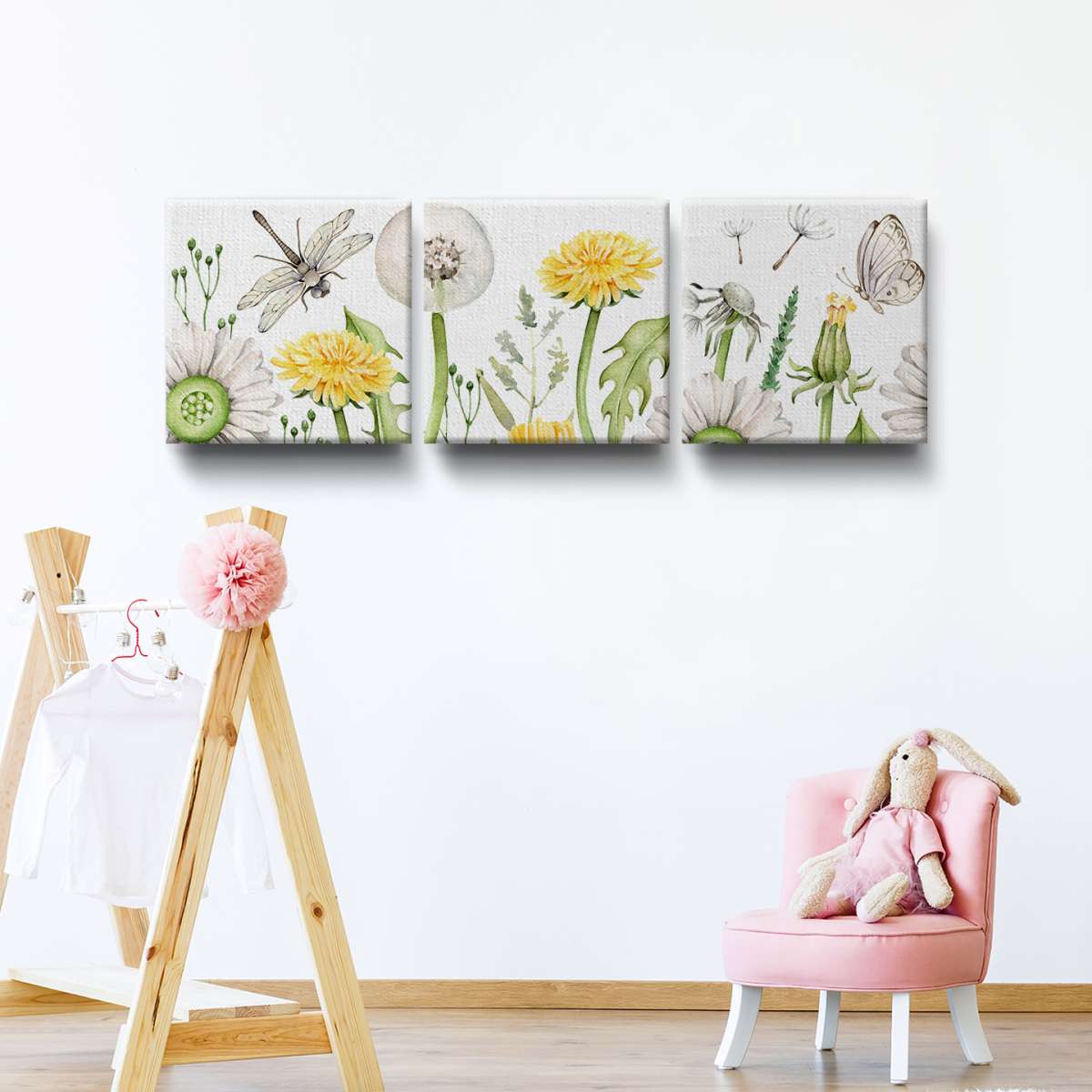 Pampelišky a vážka - akvarel