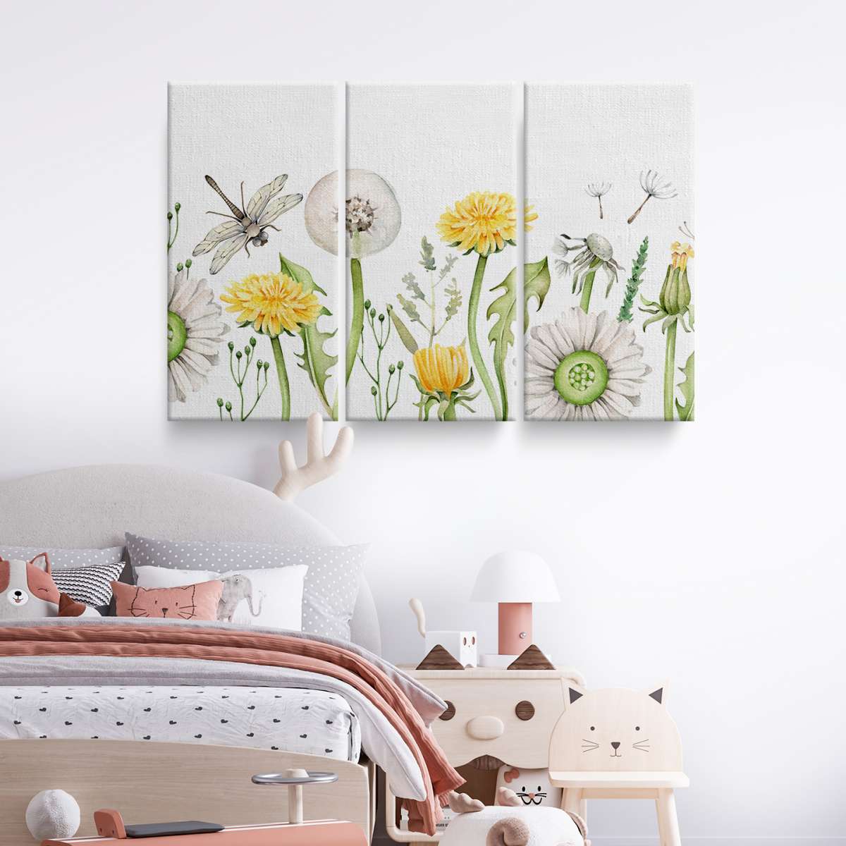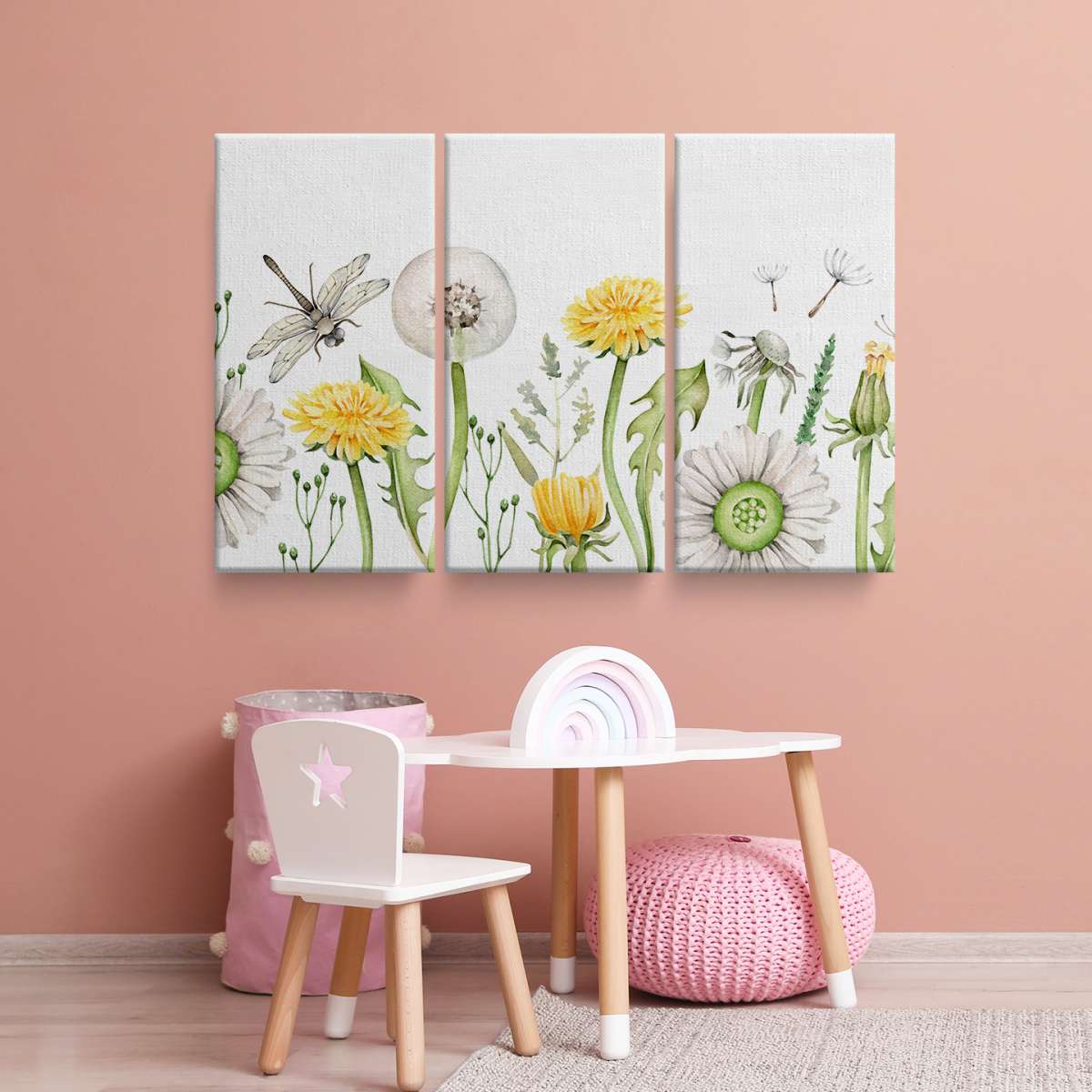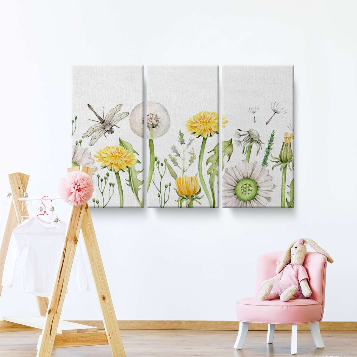 Pampelišky a vážka - akvarel