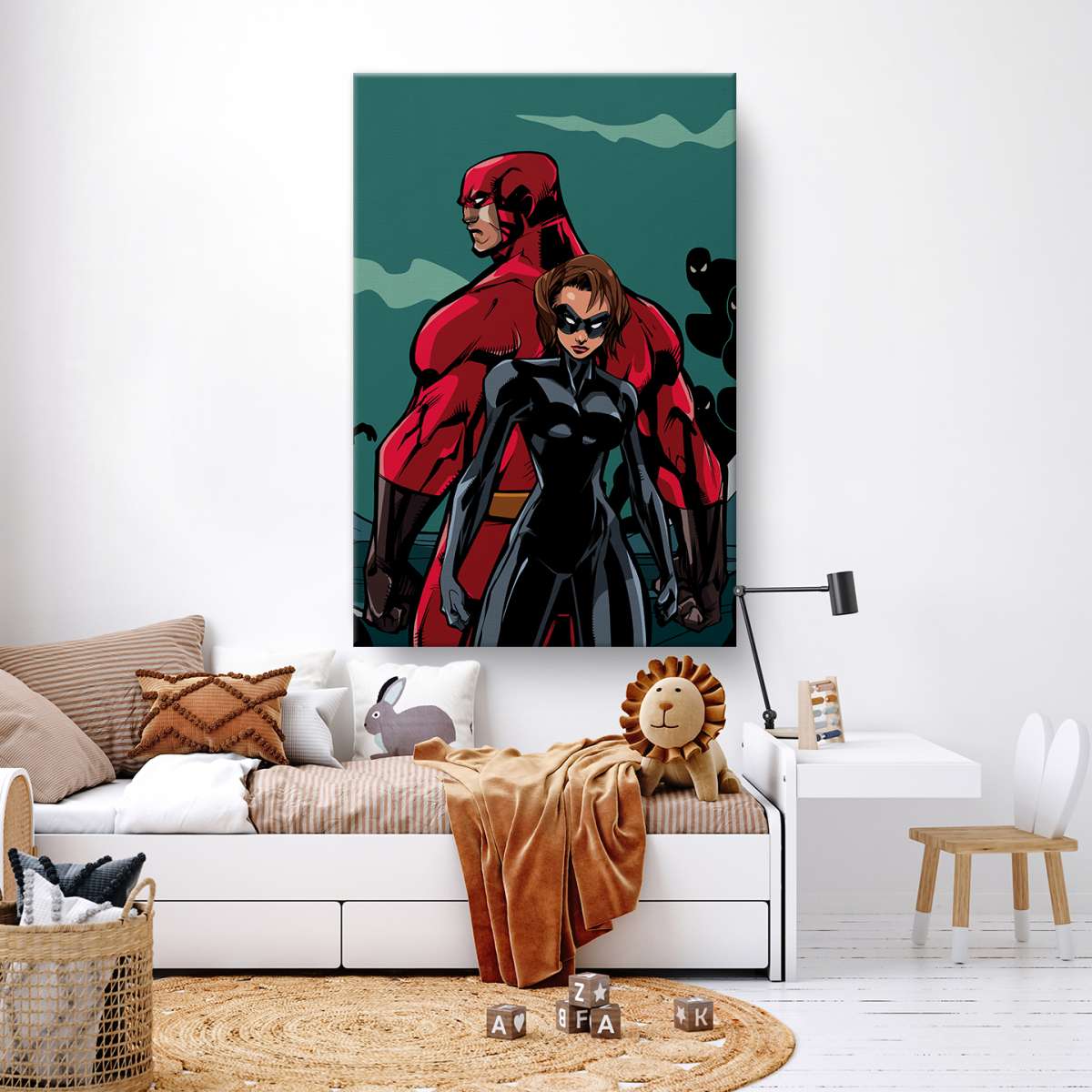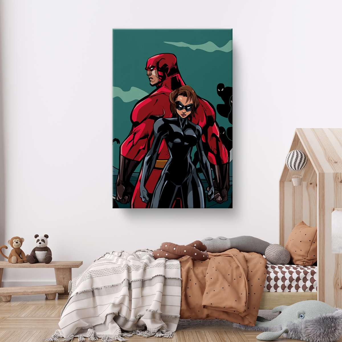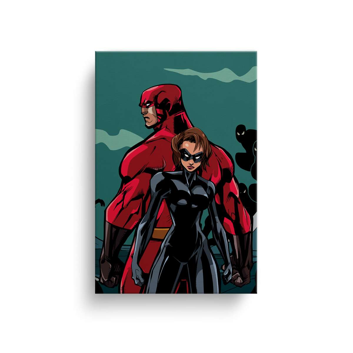 Pár superhrdinů bojující proti nepřátelům - ilustrace