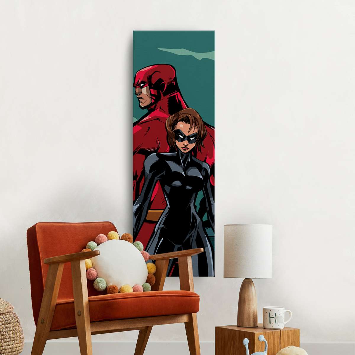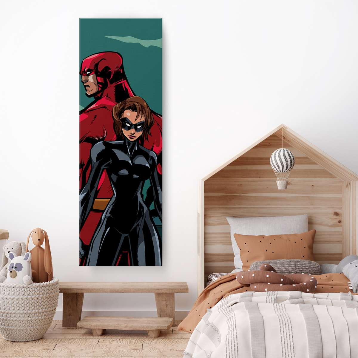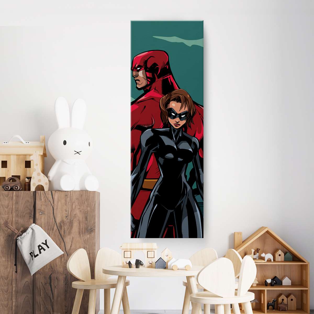 Pár superhrdinů bojující proti nepřátelům - ilustrace