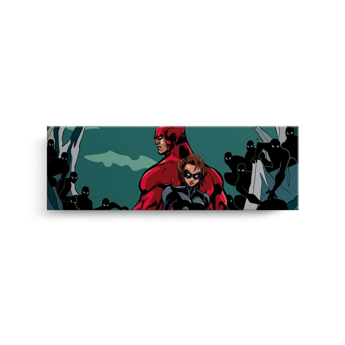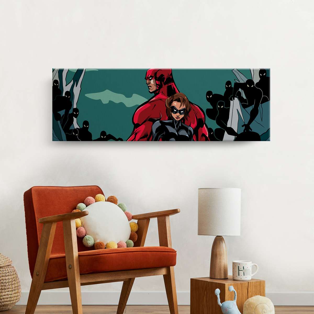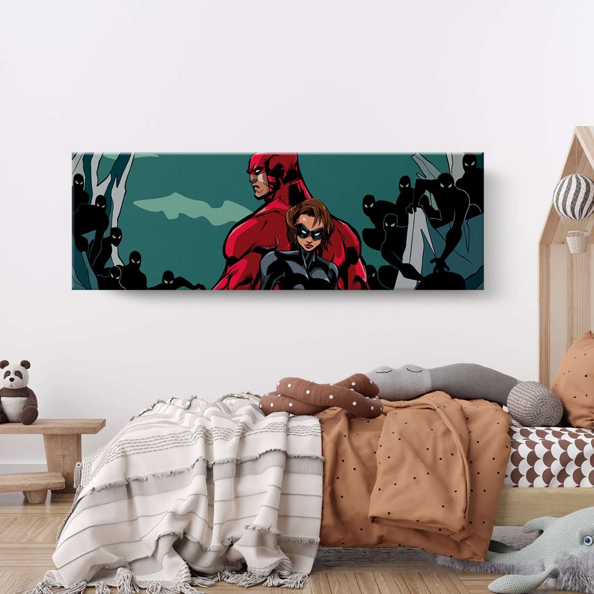 Pár superhrdinů bojující proti nepřátelům - ilustrace