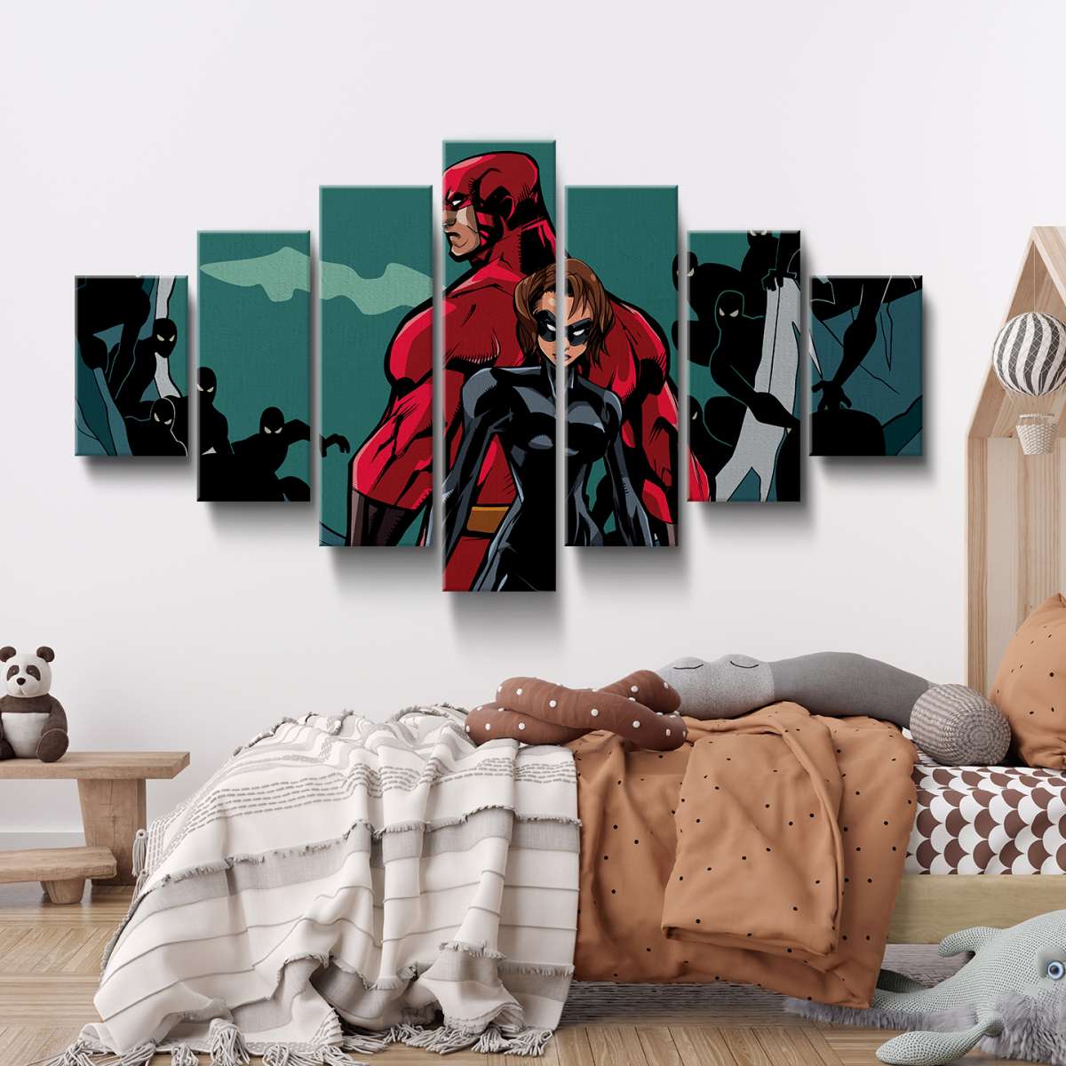 Pár superhrdinů bojující proti nepřátelům - ilustrace