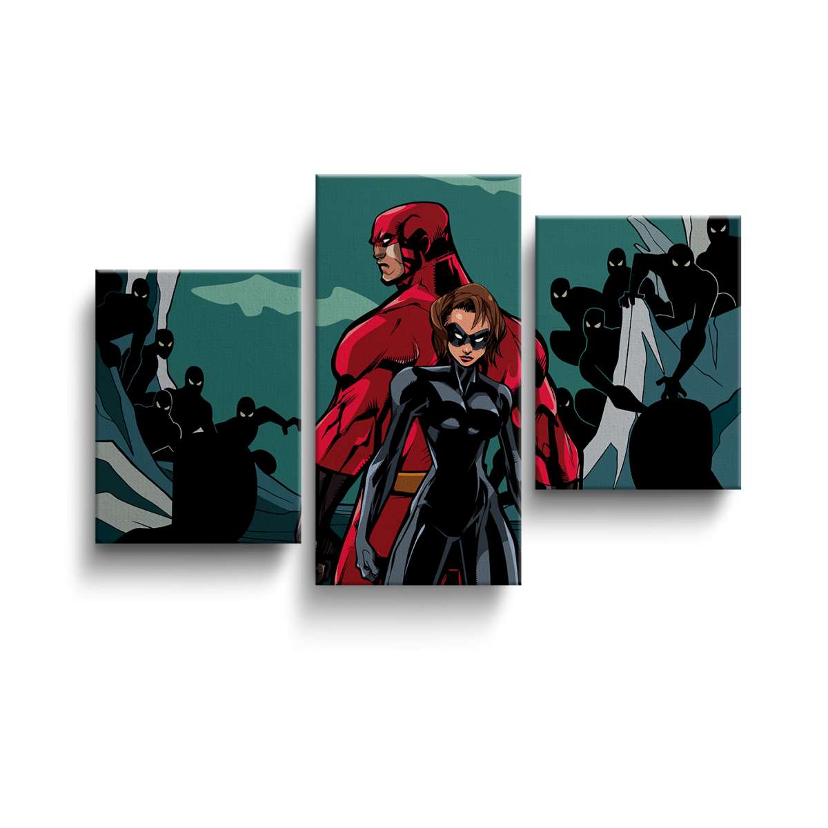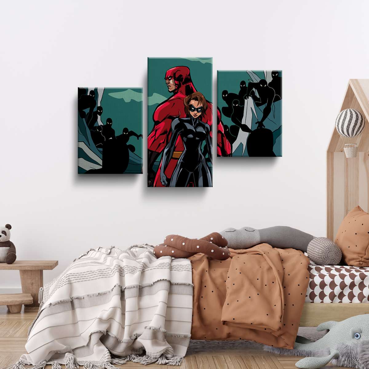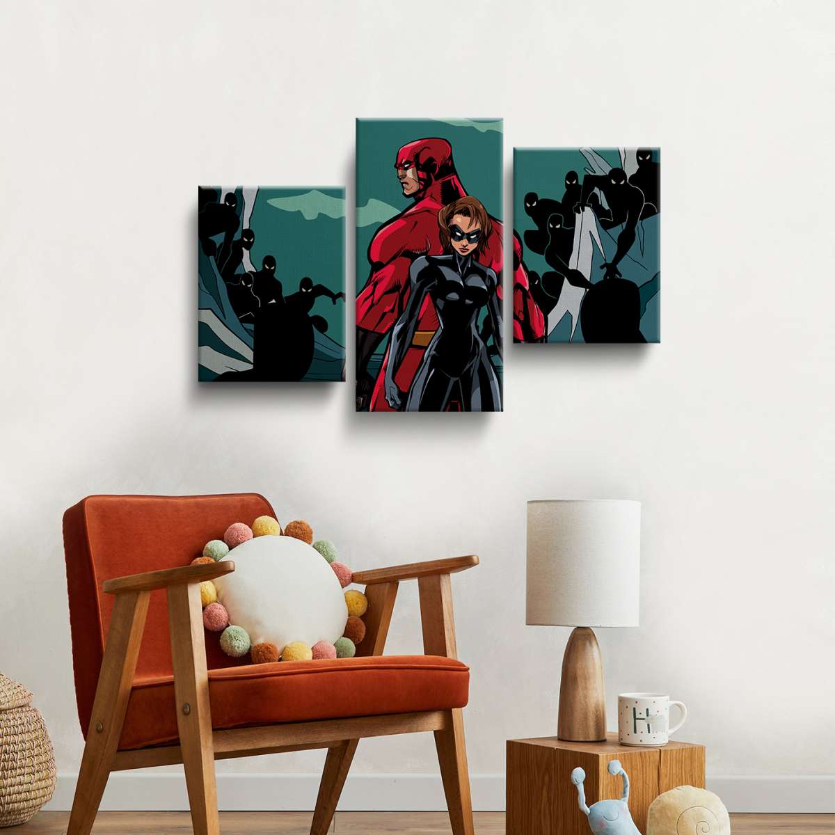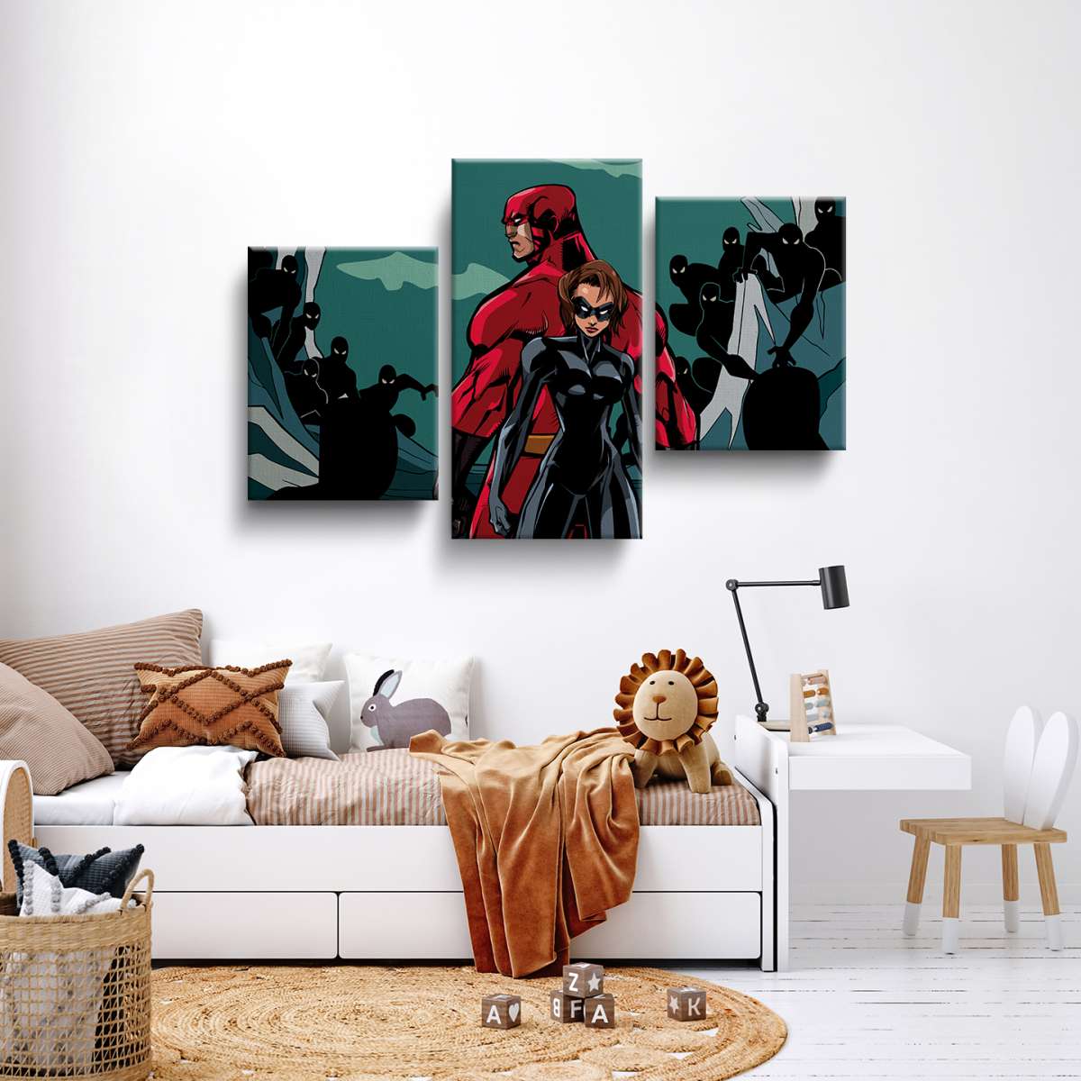 Pár superhrdinů bojující proti nepřátelům - ilustrace