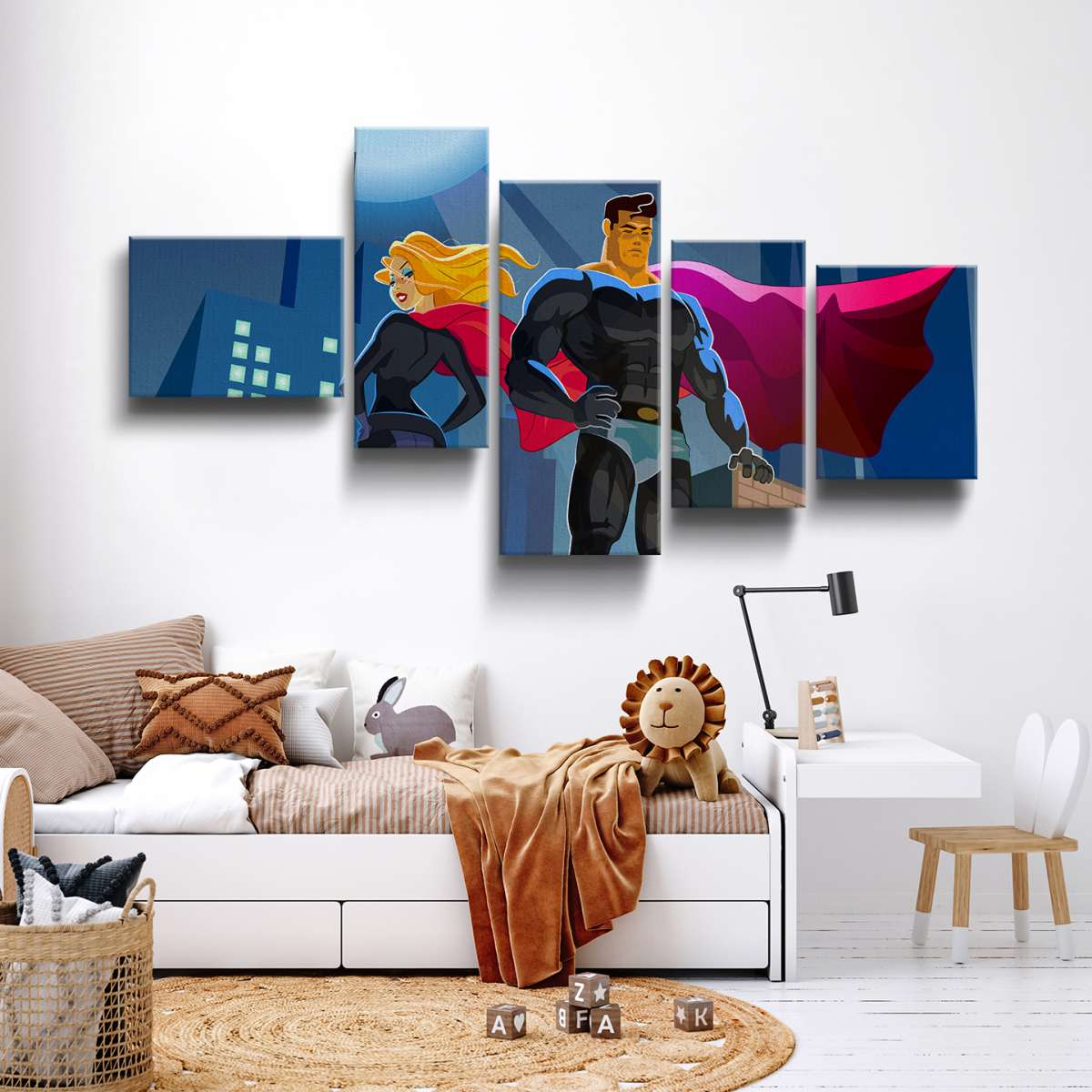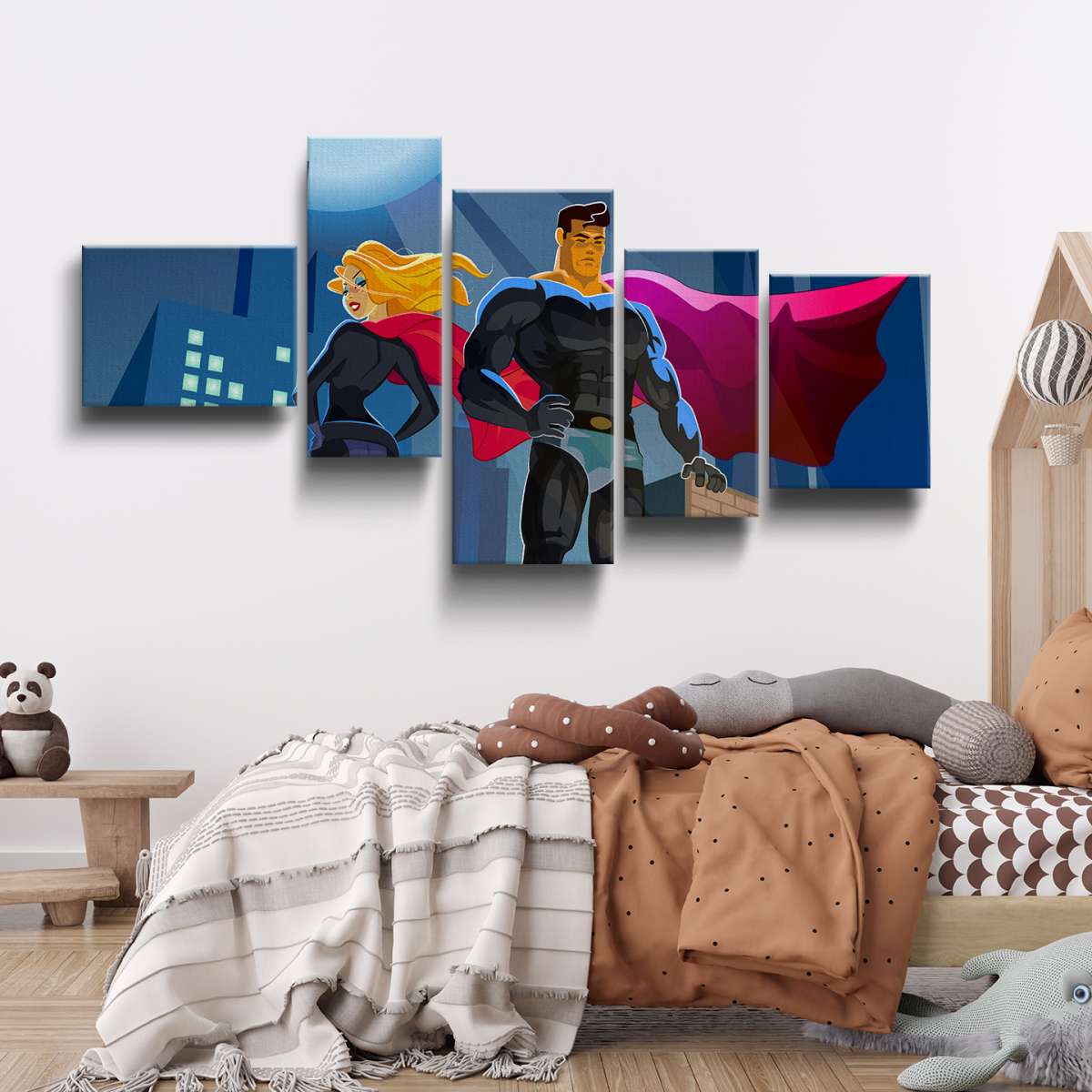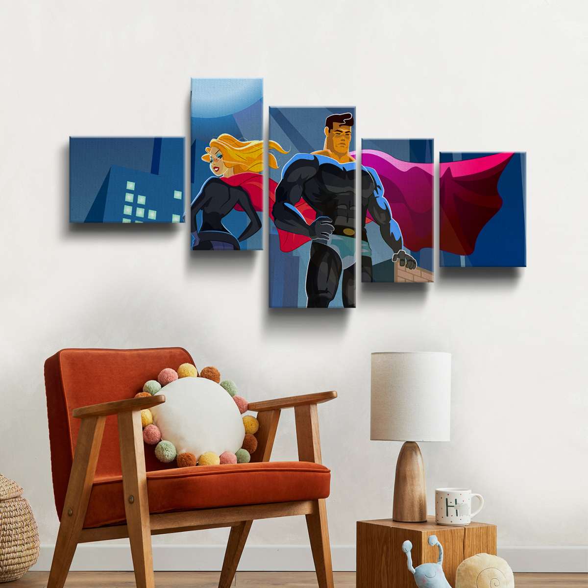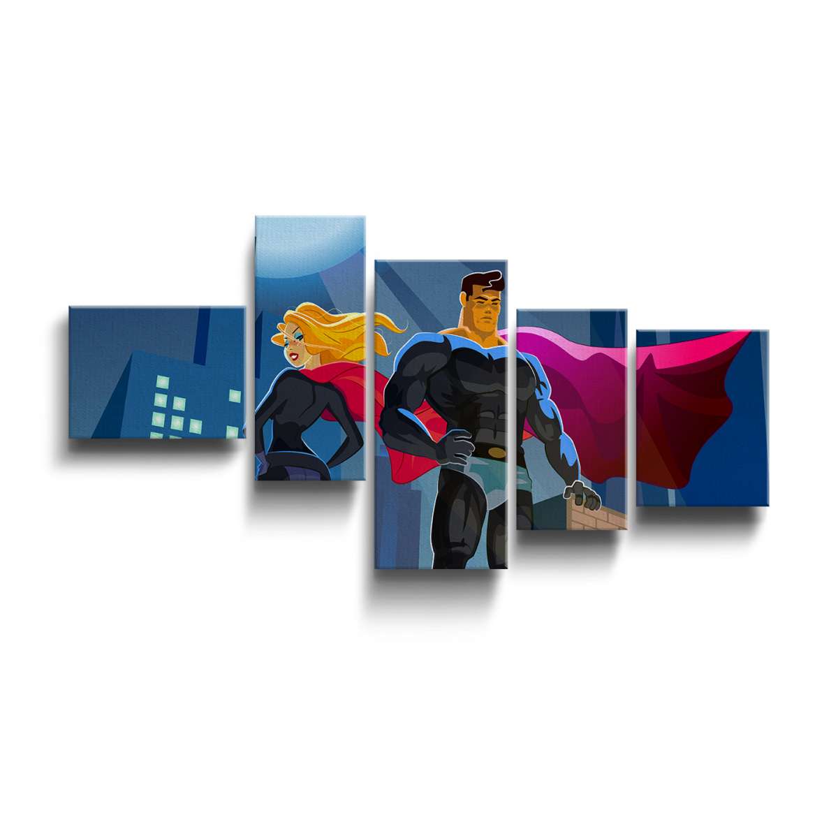 Pár superhrdinů na střeše mrakodrapu - ilustrace