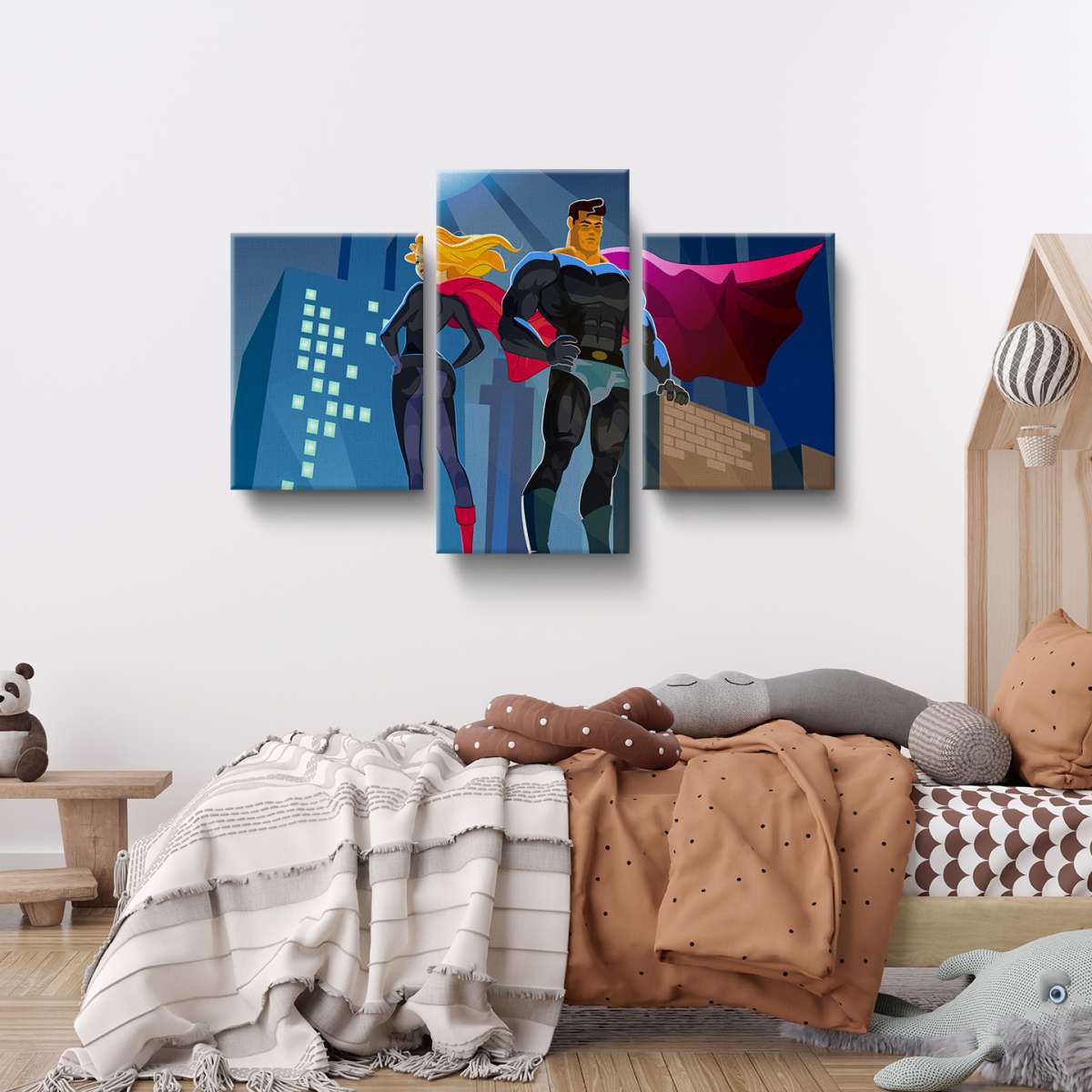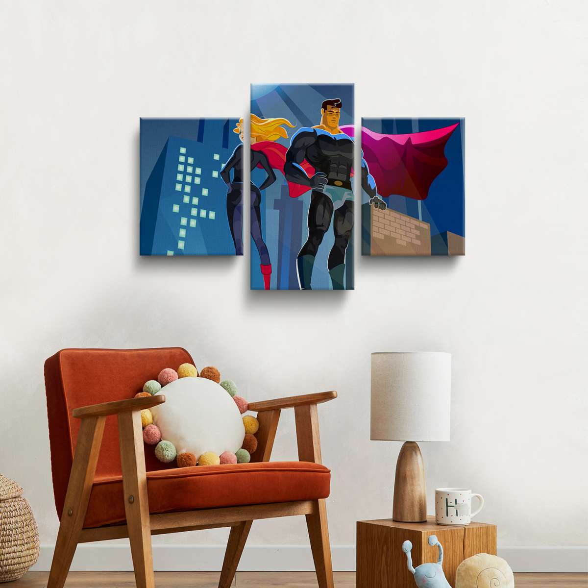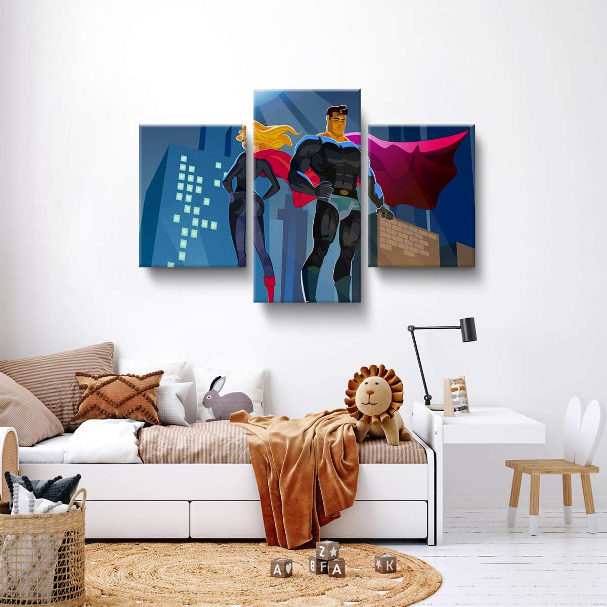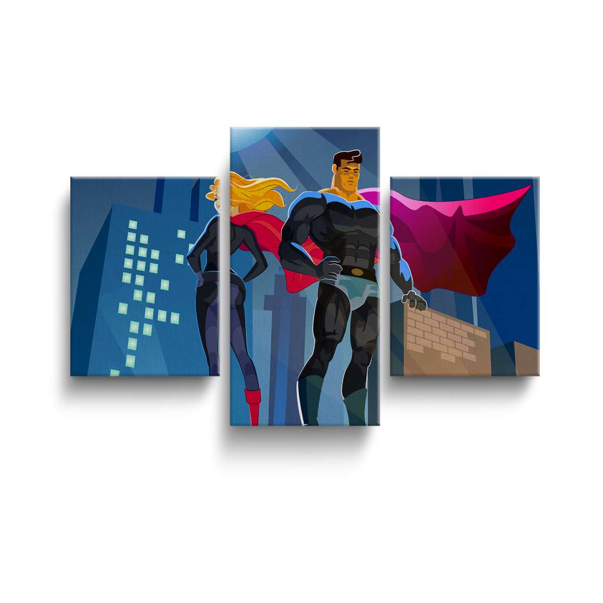 Pár superhrdinů na střeše mrakodrapu - ilustrace