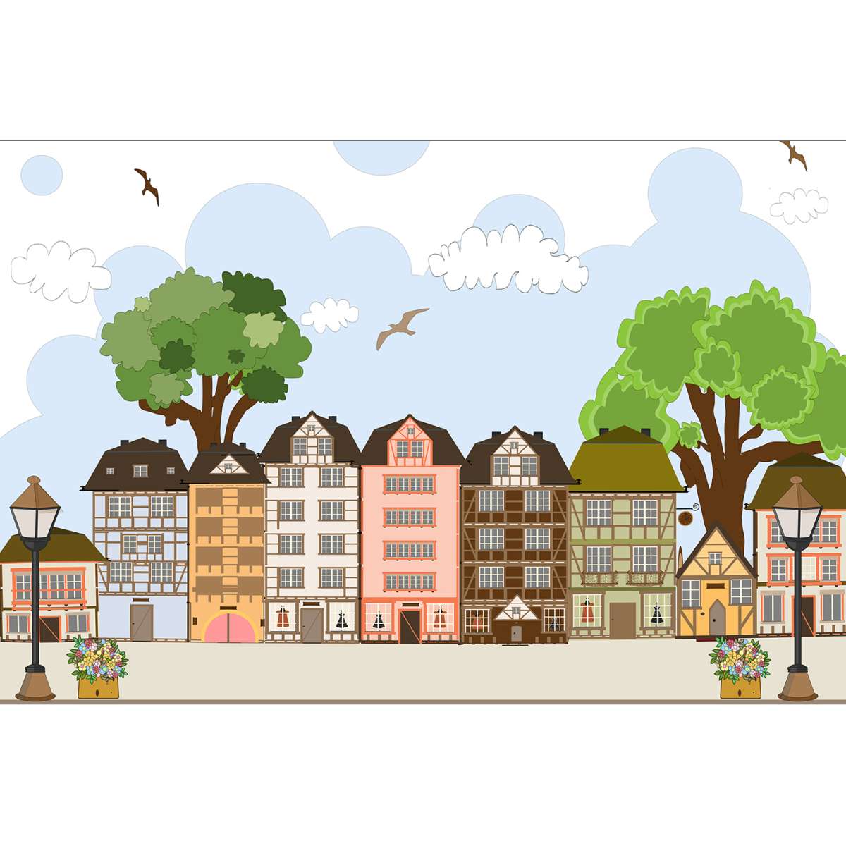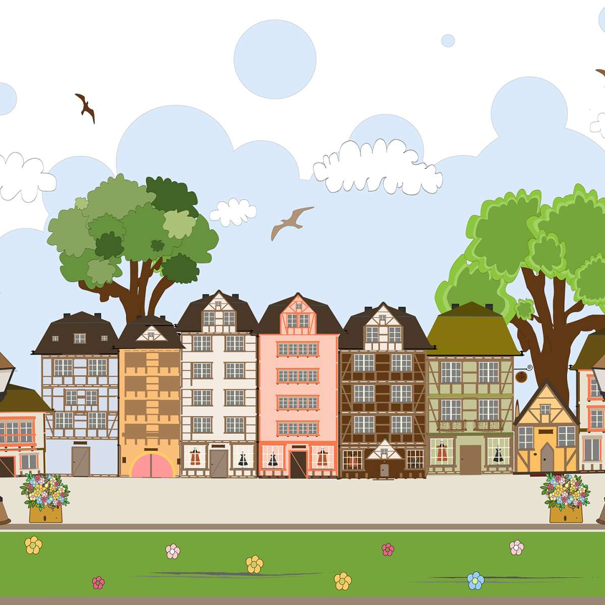 Pastelové domečky - ilustrace