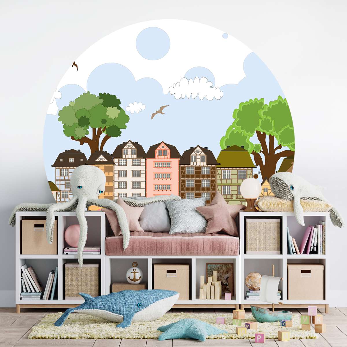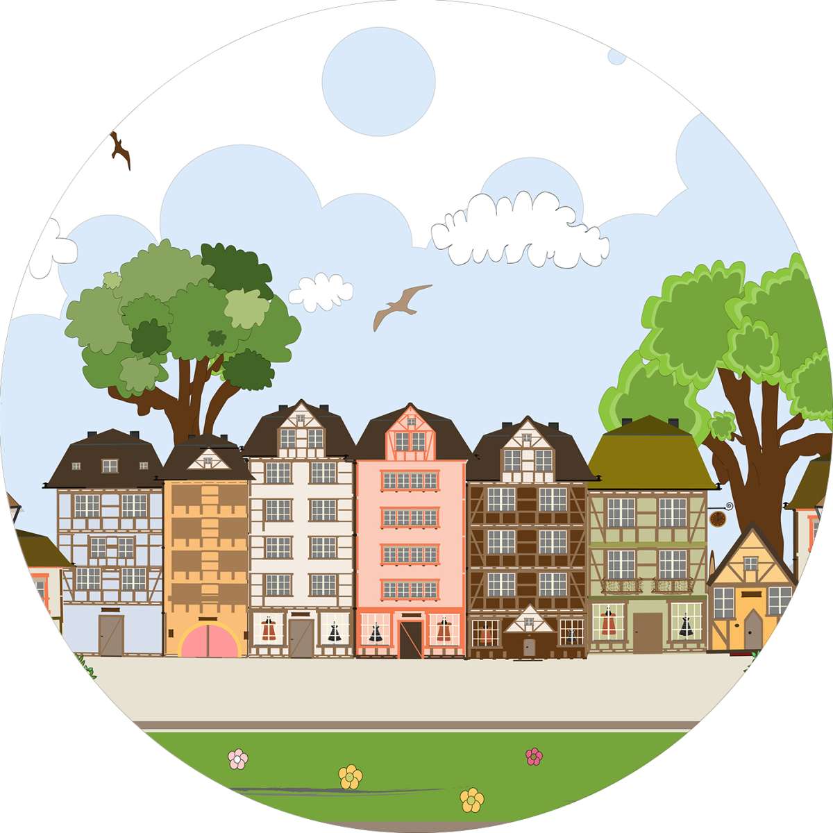 Pastelové domečky - ilustrace