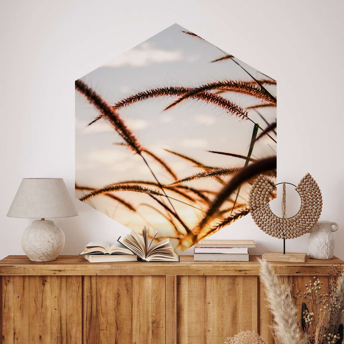 Péřová tráva při západu slunce