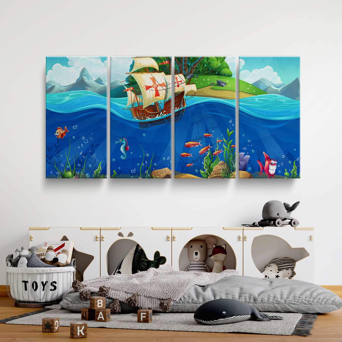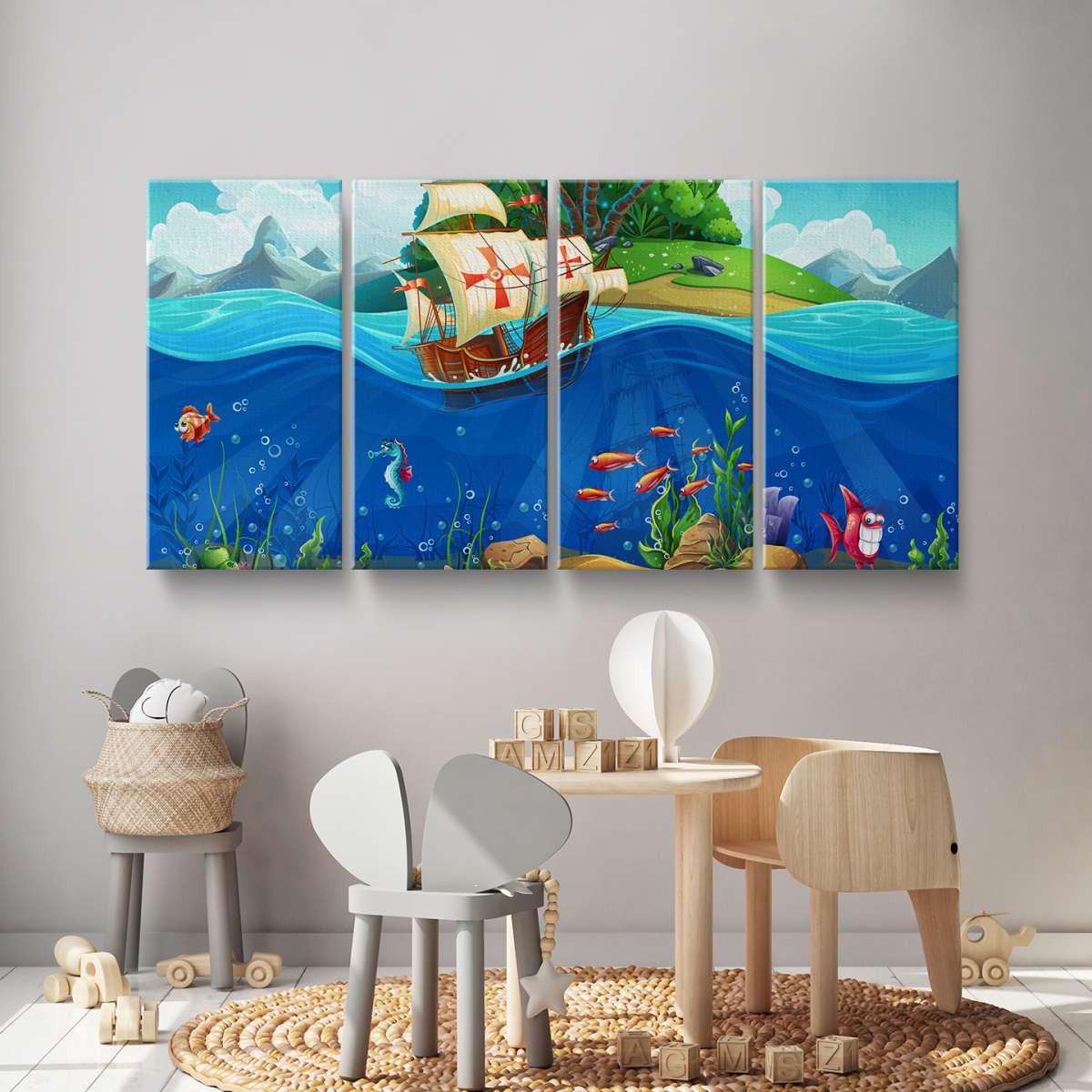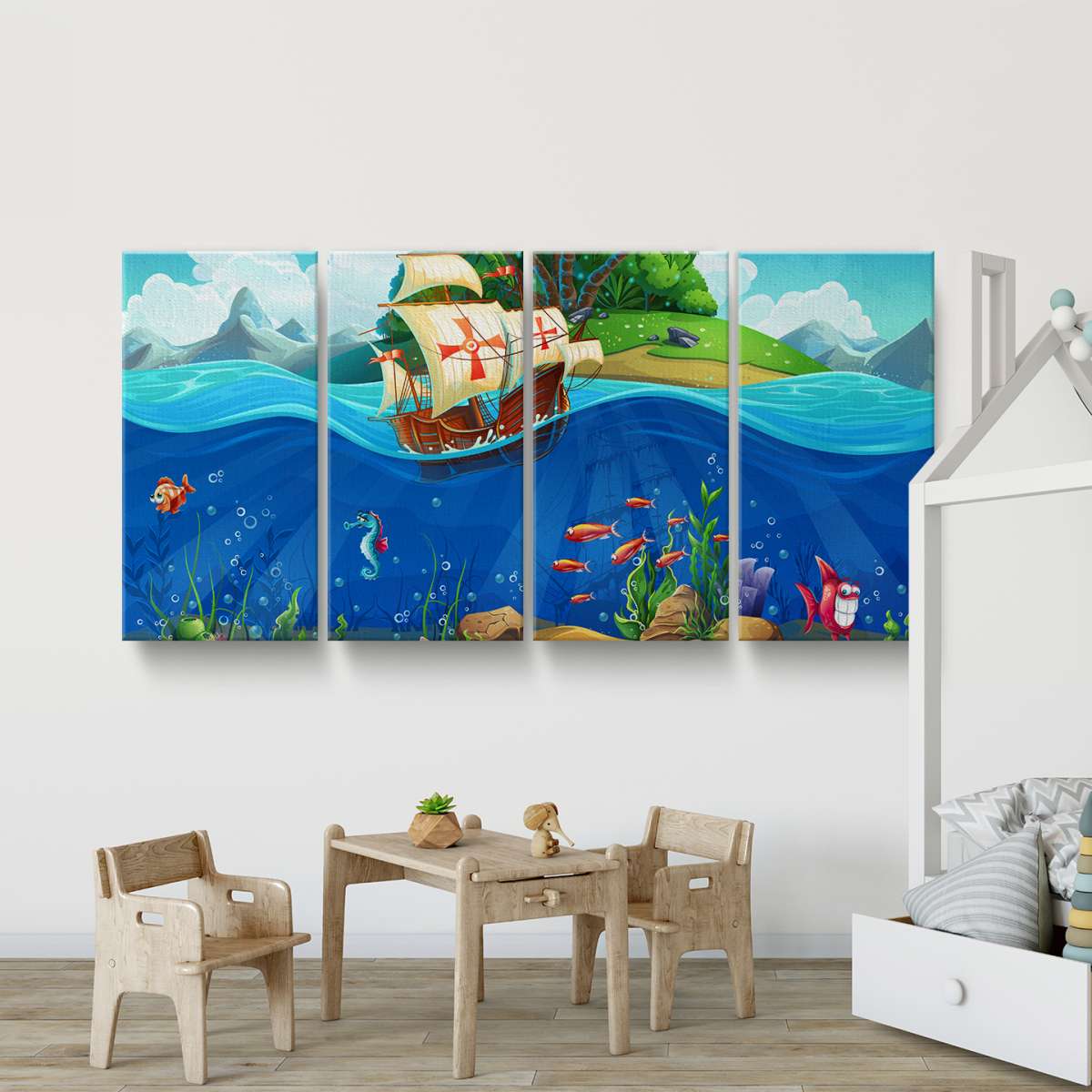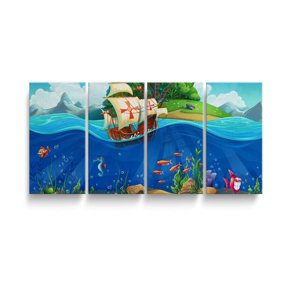 Pirátská loď a mořský svět - ilustrace