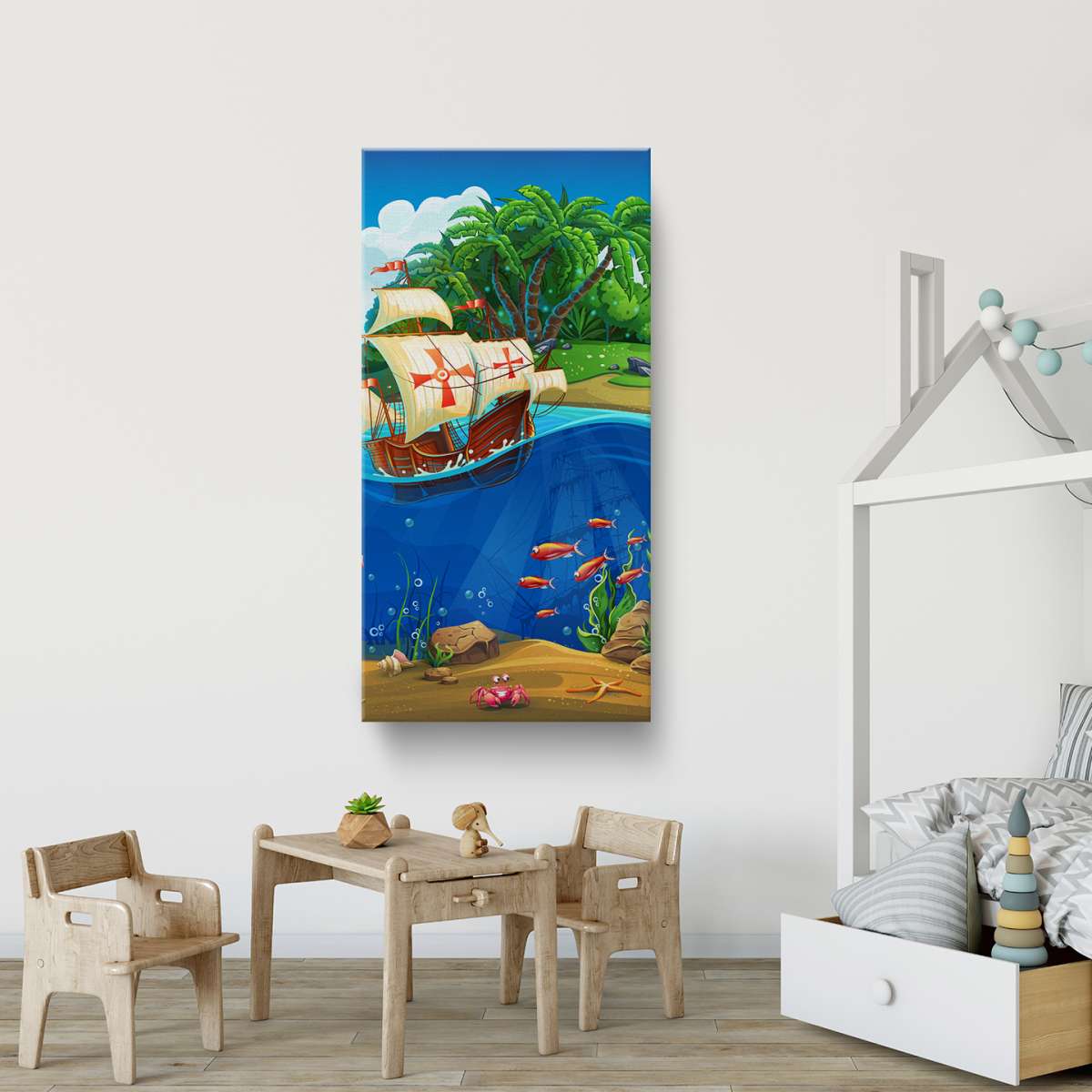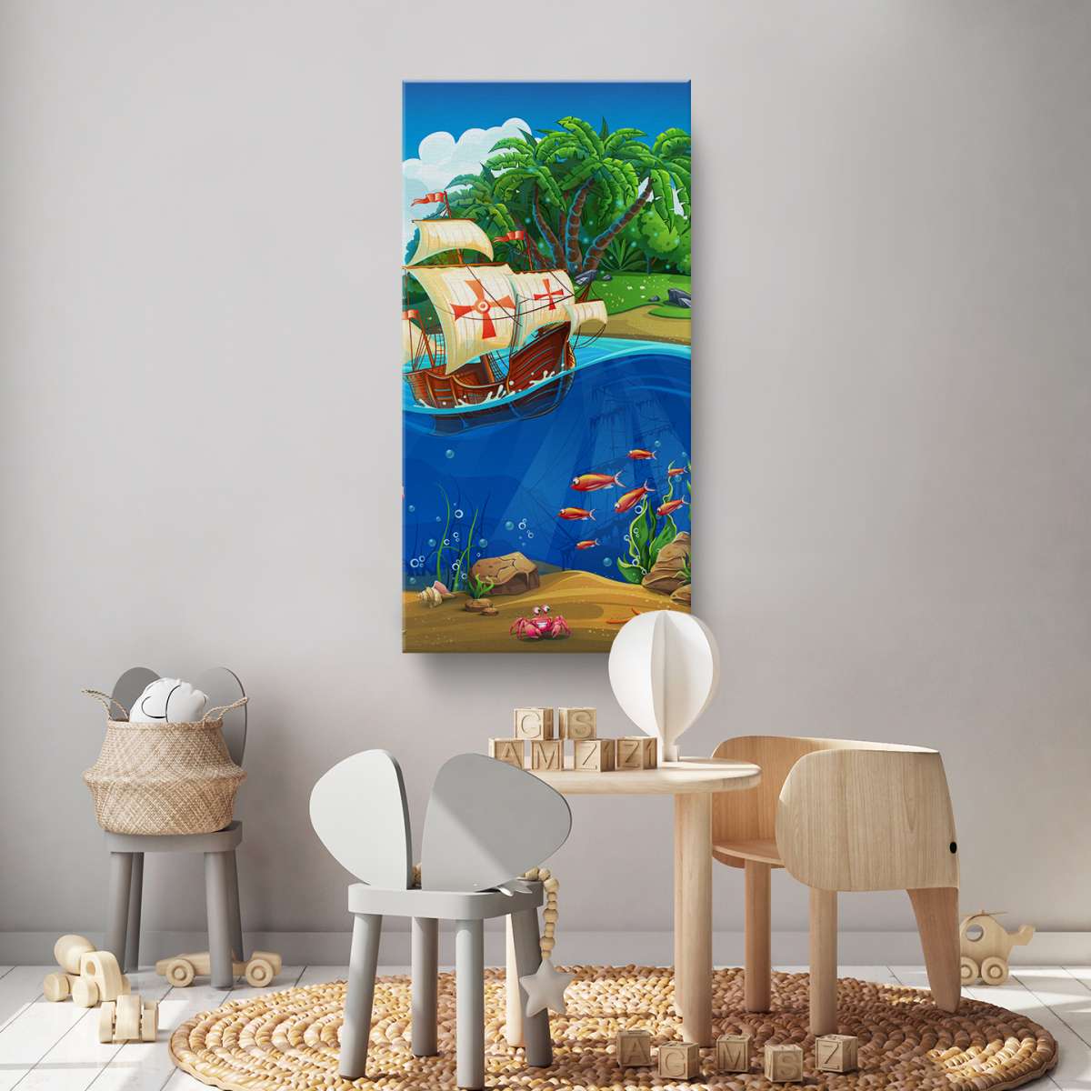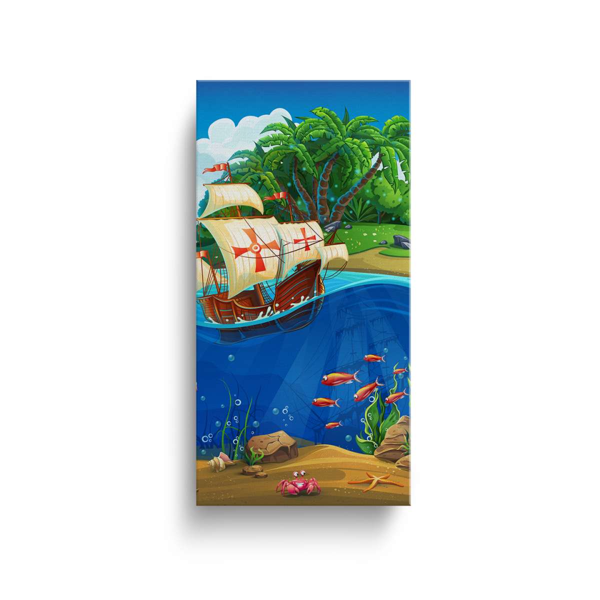 Pirátská loď a mořský svět - ilustrace
