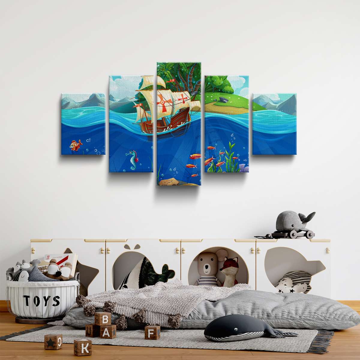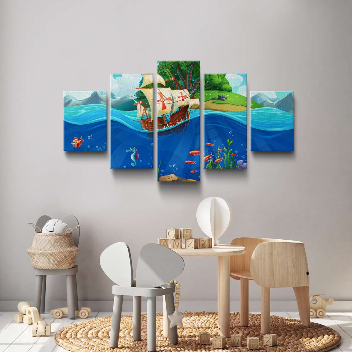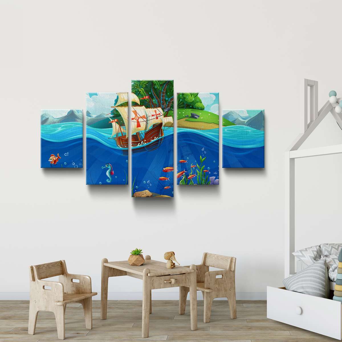 Pirátská loď a mořský svět - ilustrace
