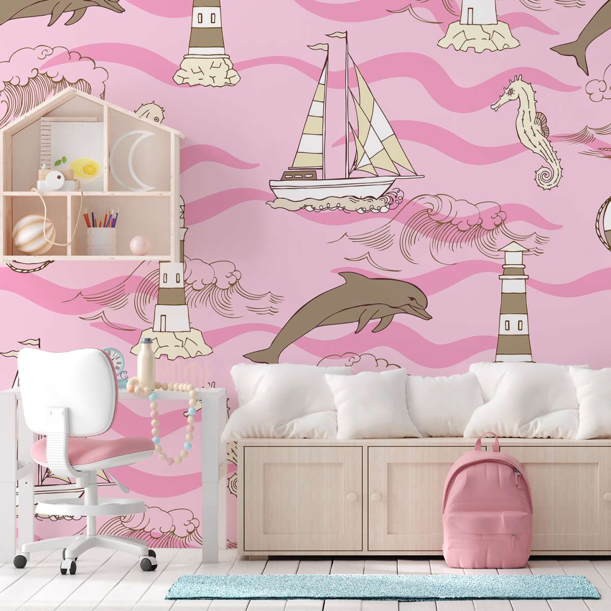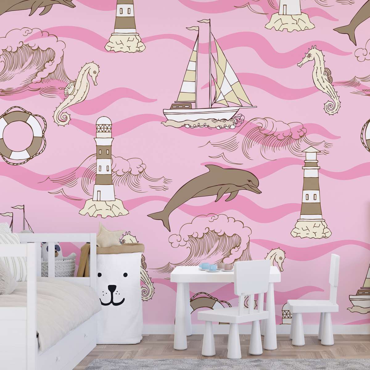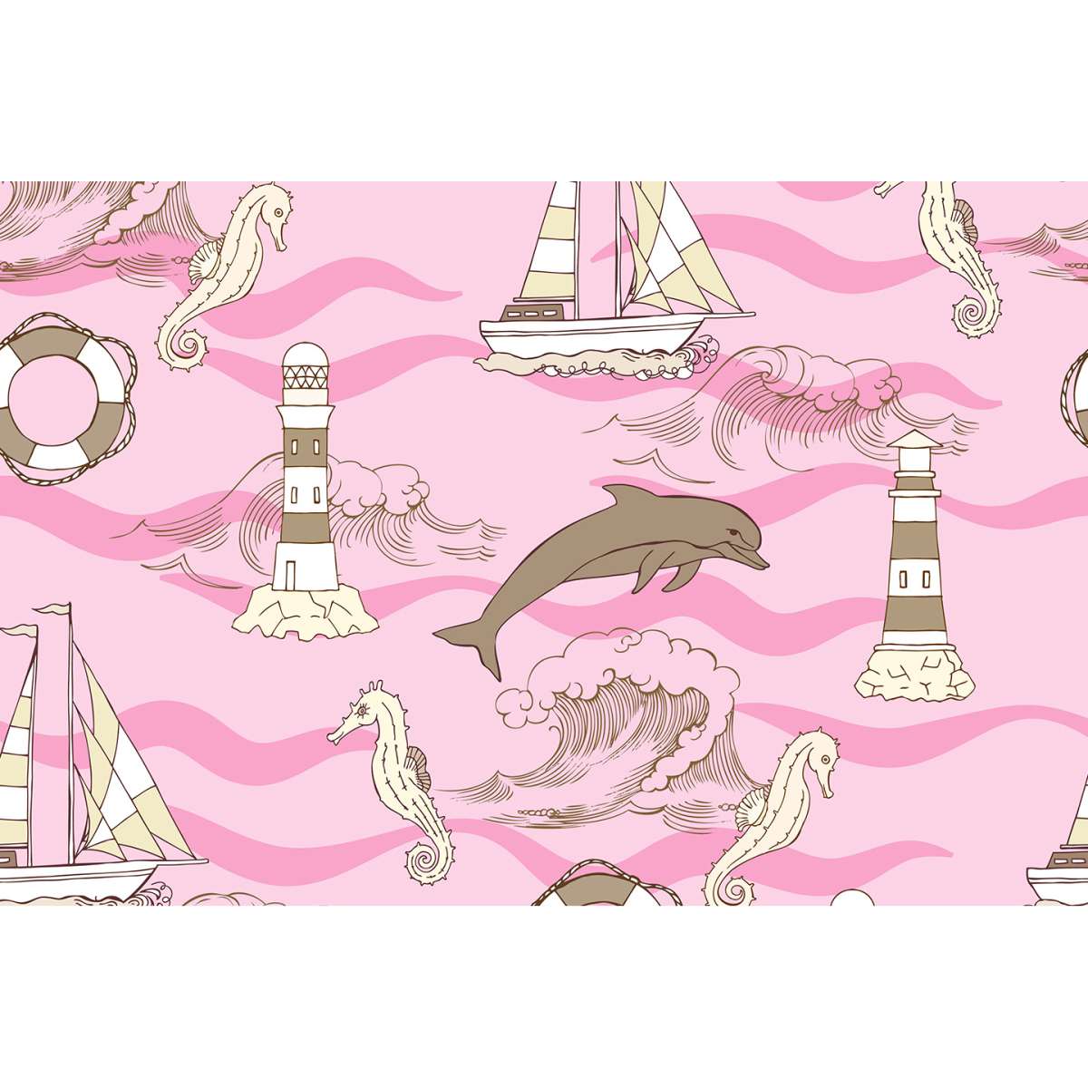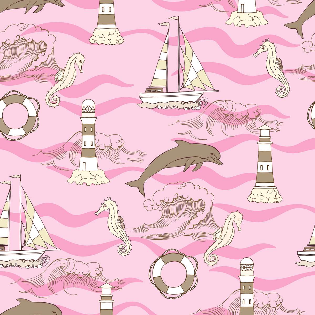 Plachetnice, maják a delfín - námořní vzor