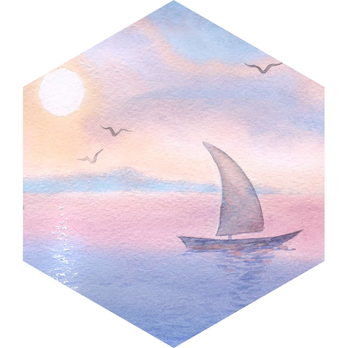 Plachetnice na moři při západu slunce - akvarel