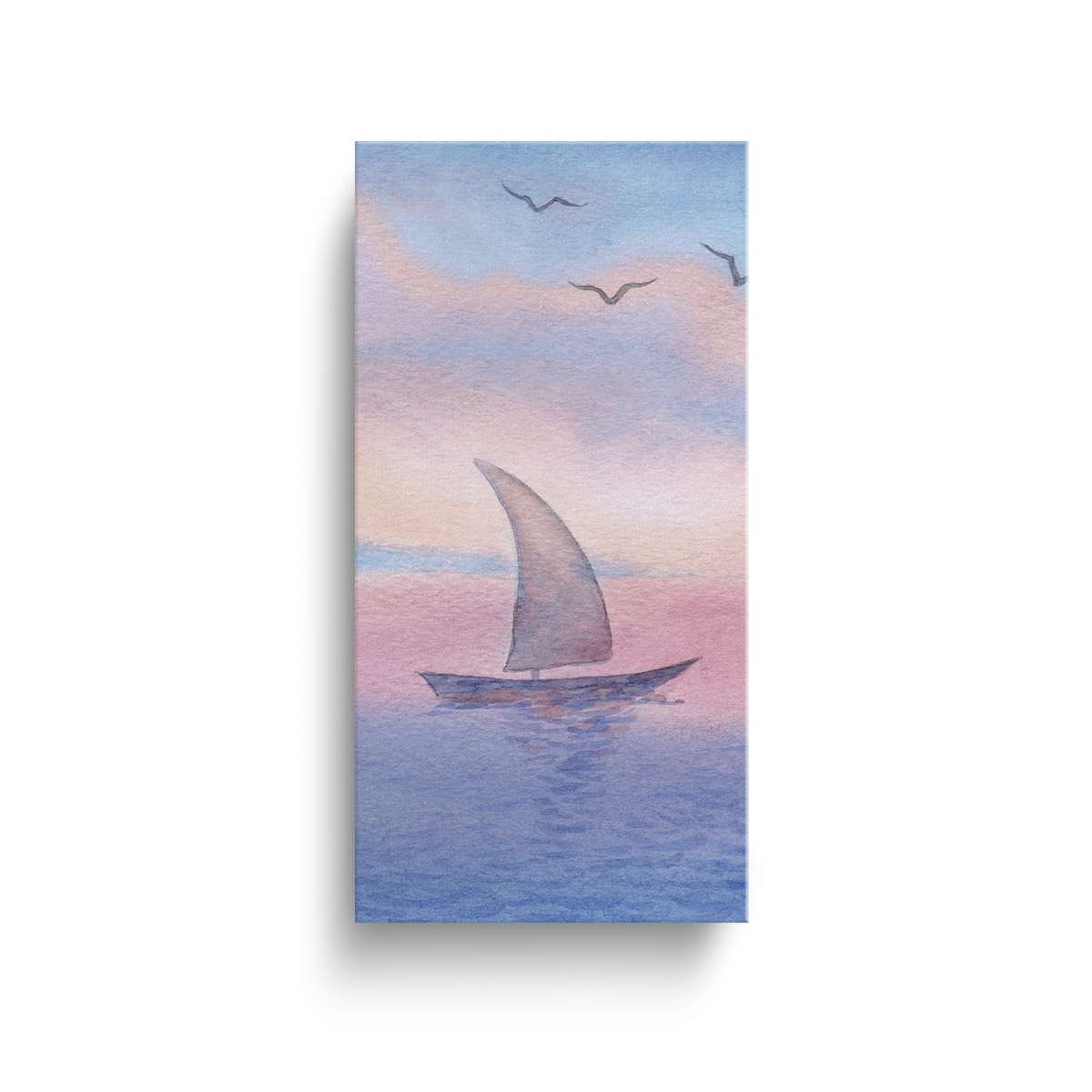 Plachetnice na moři při západu slunce - akvarel