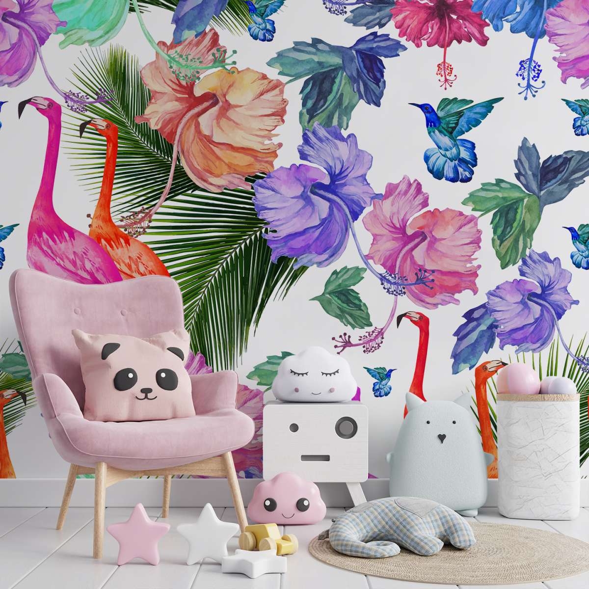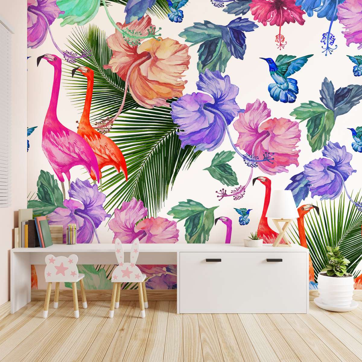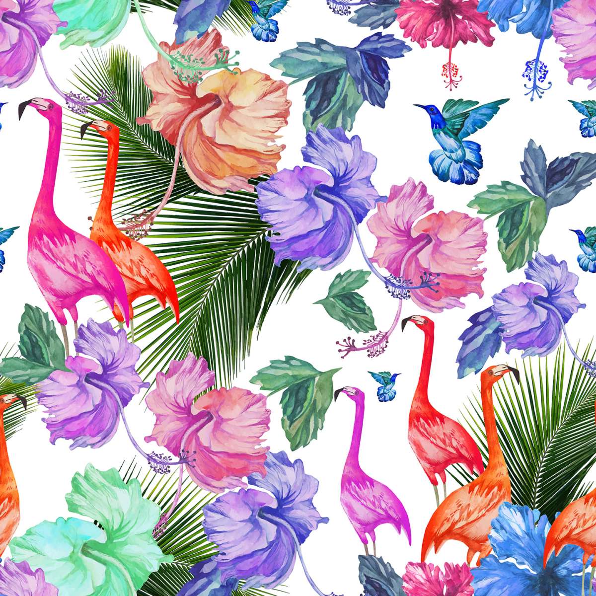 Plameňáci a tropické rostliny - vzor