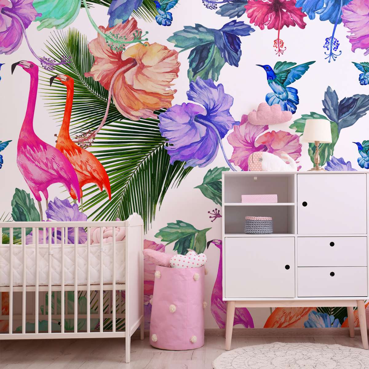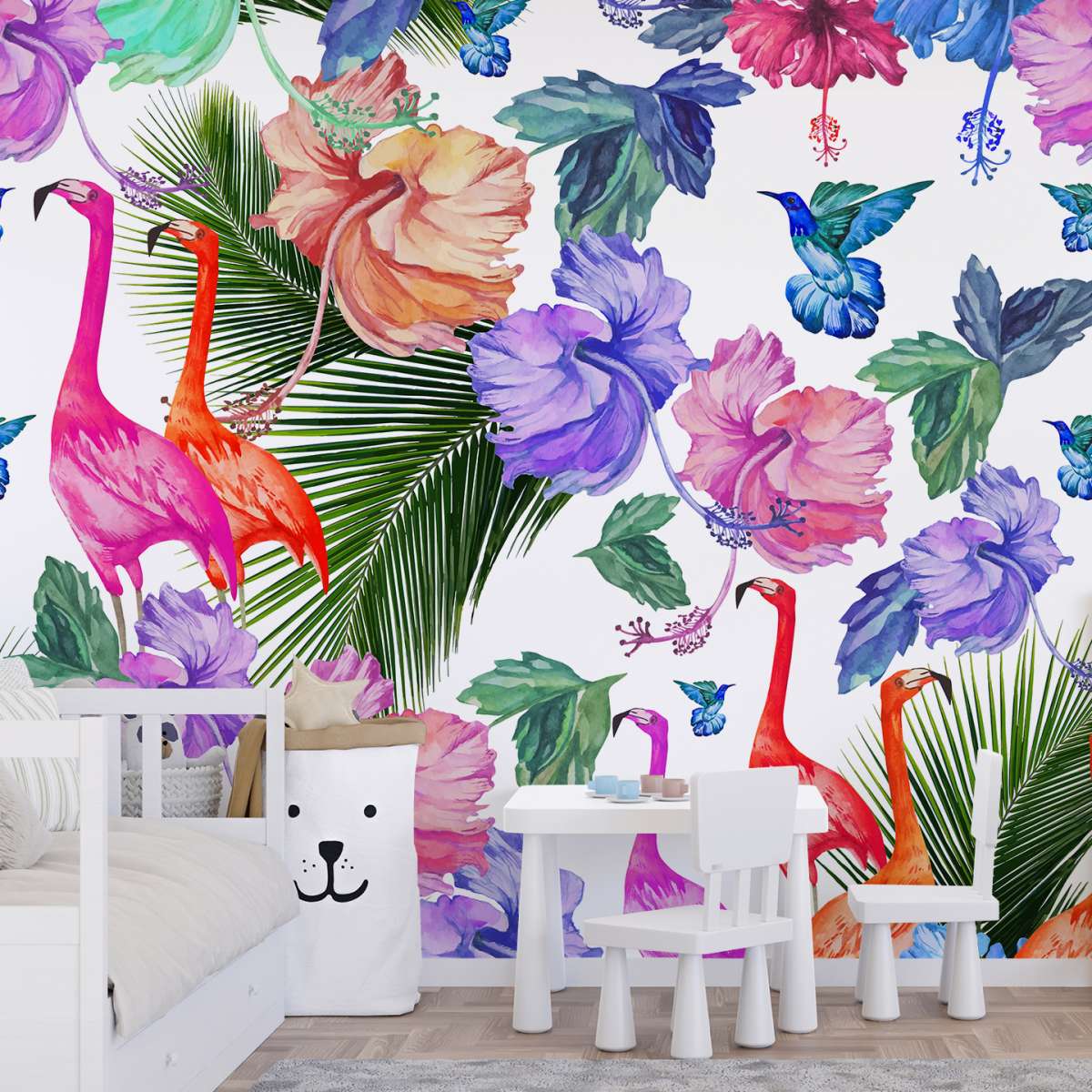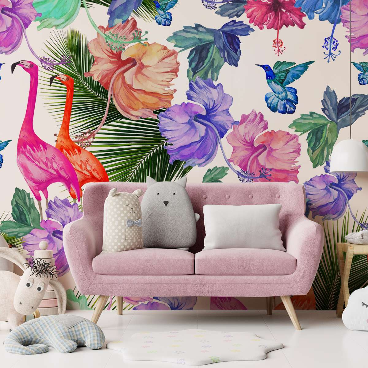 Plameňáci a tropické rostliny - vzor