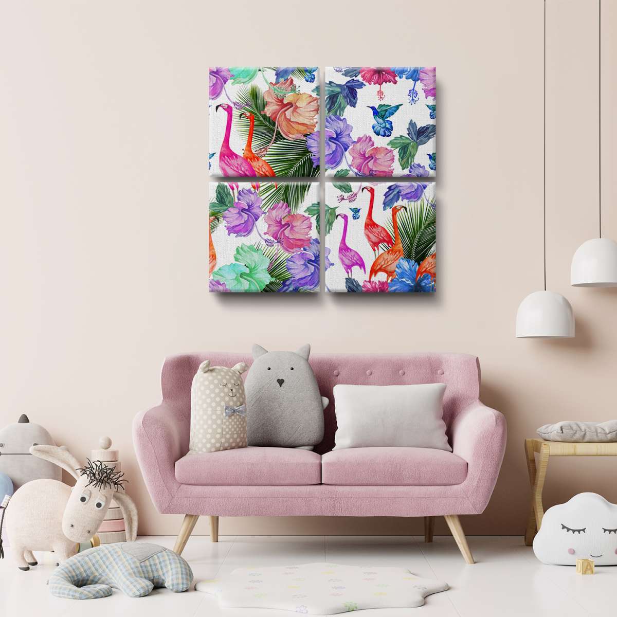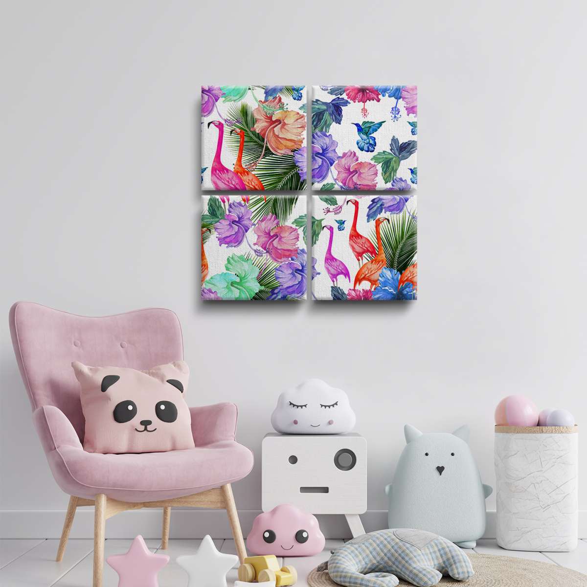 Plameňáci a tropické rostliny - vzor