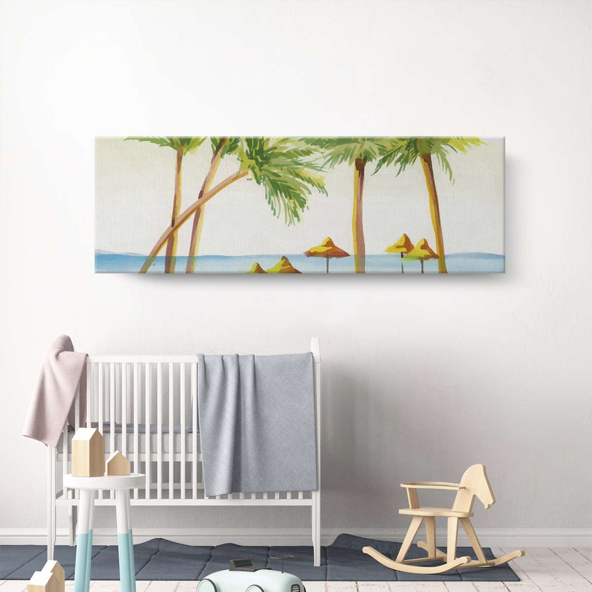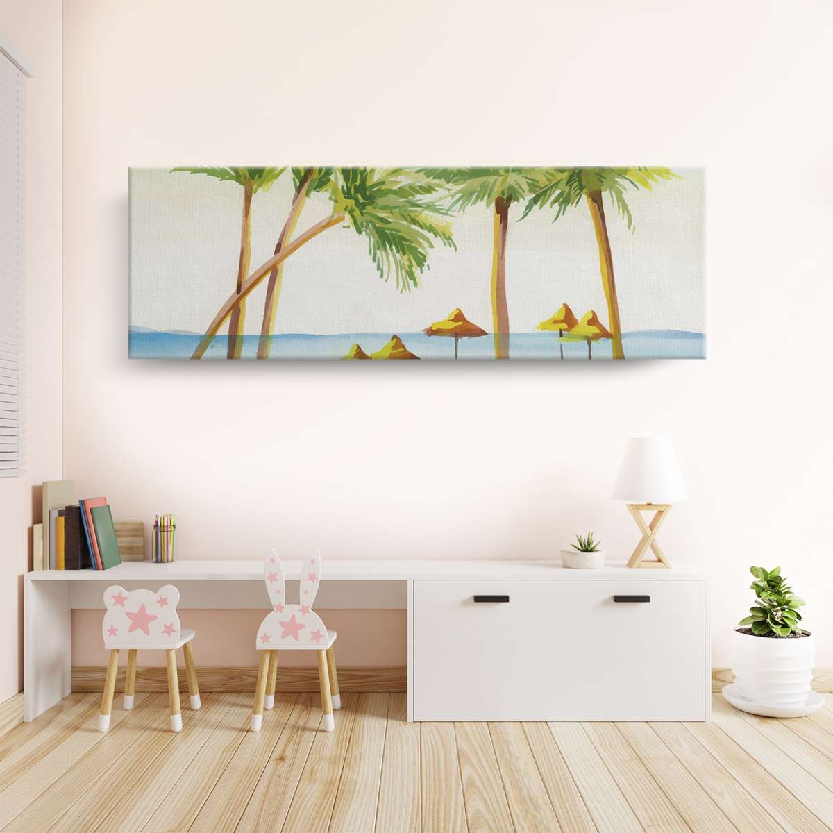 Pláž s palmami - akvarel