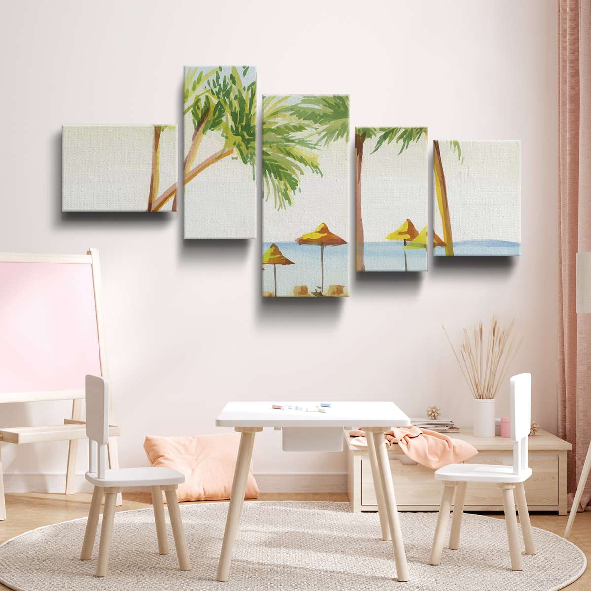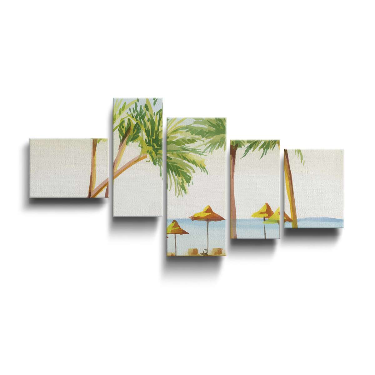 Pláž s palmami - akvarel
