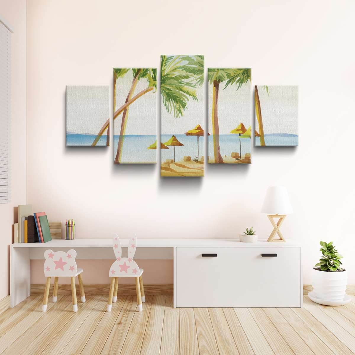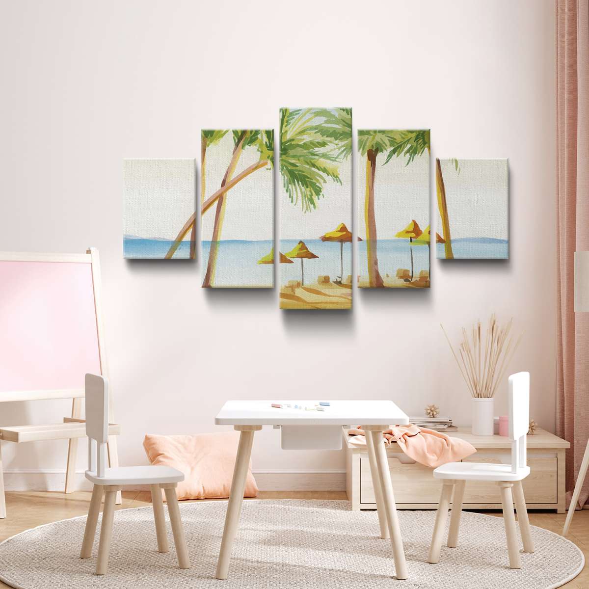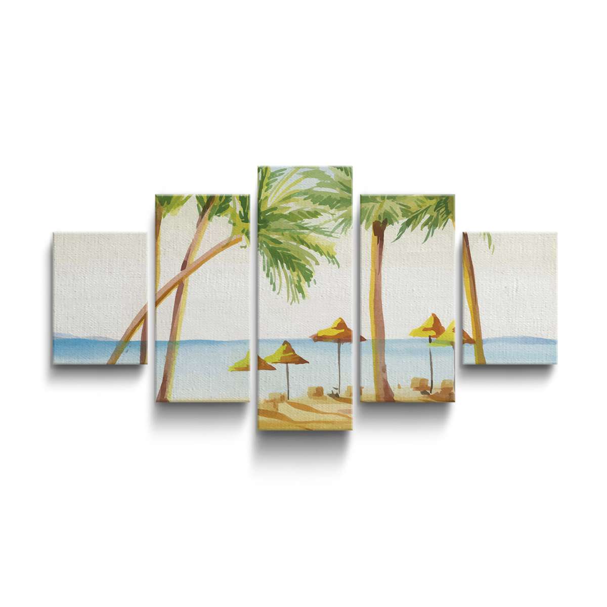 Pláž s palmami - akvarel