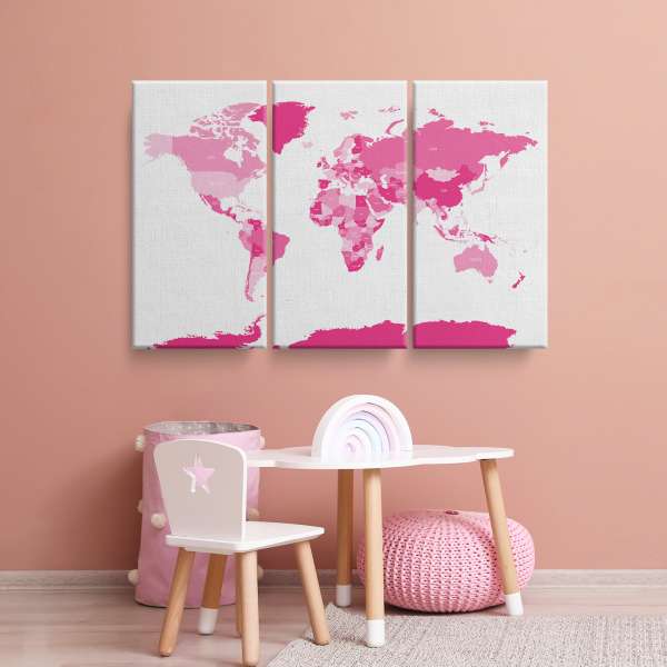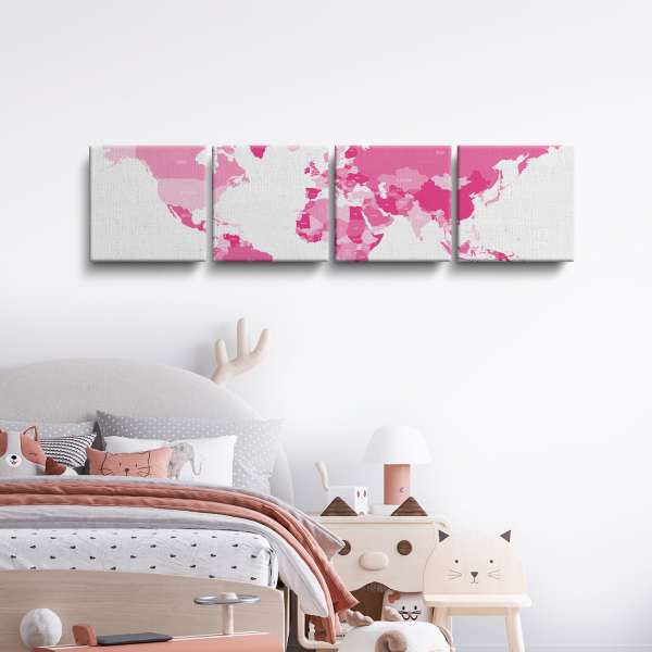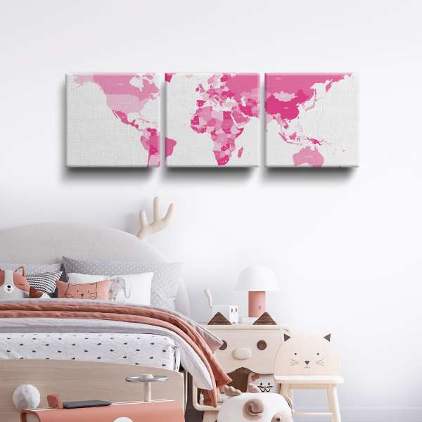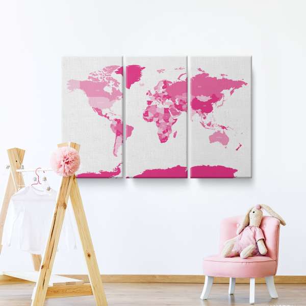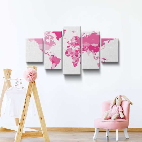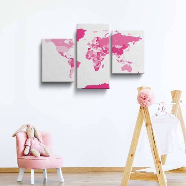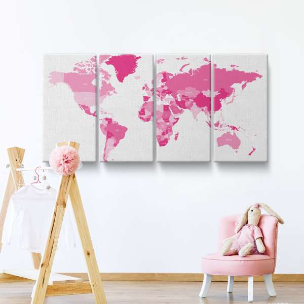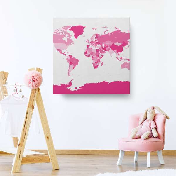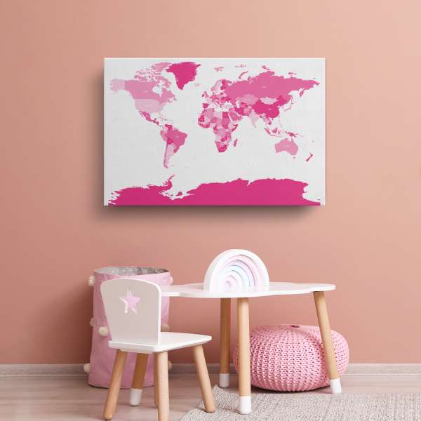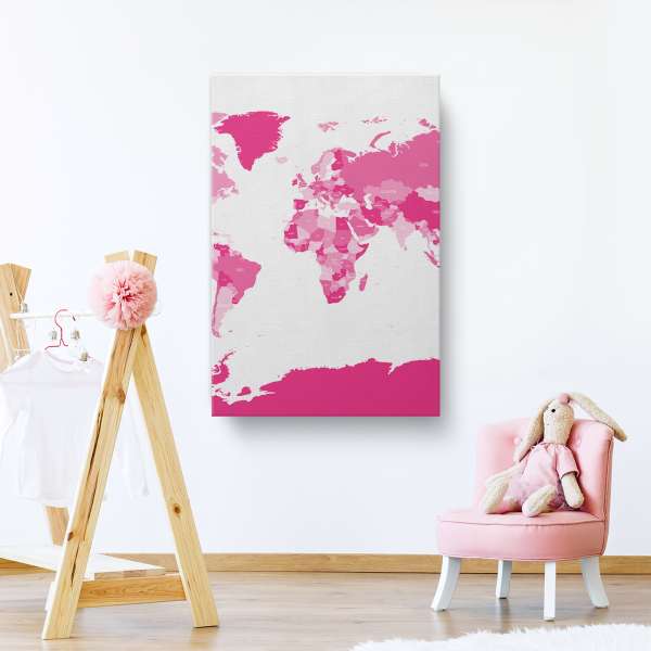 Politická mapa světa - růžová ilustrace