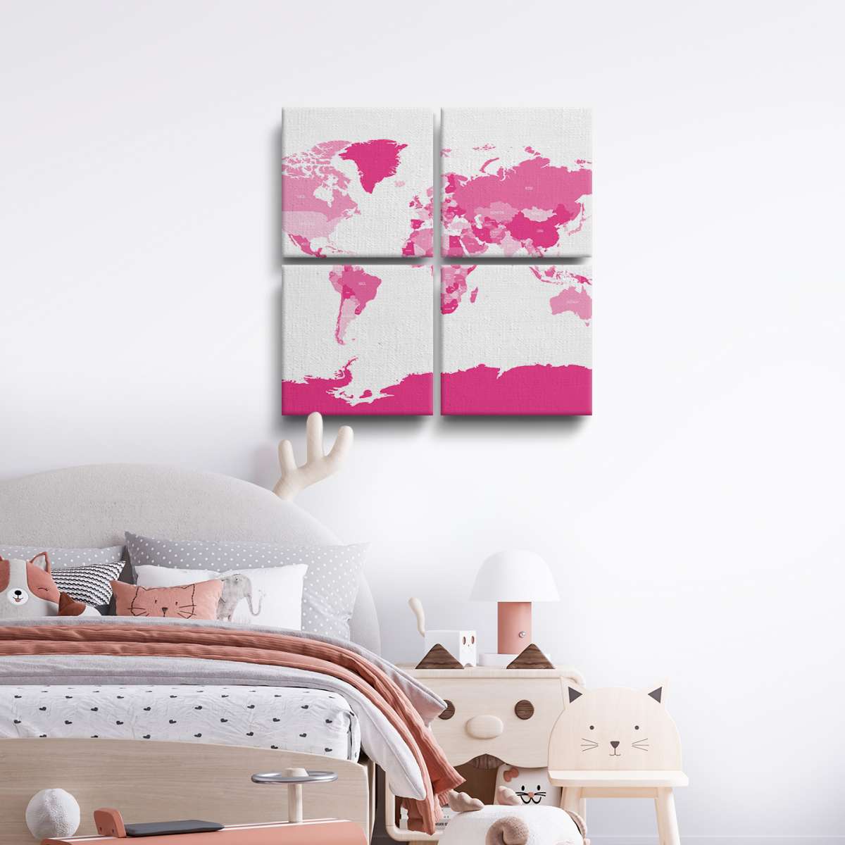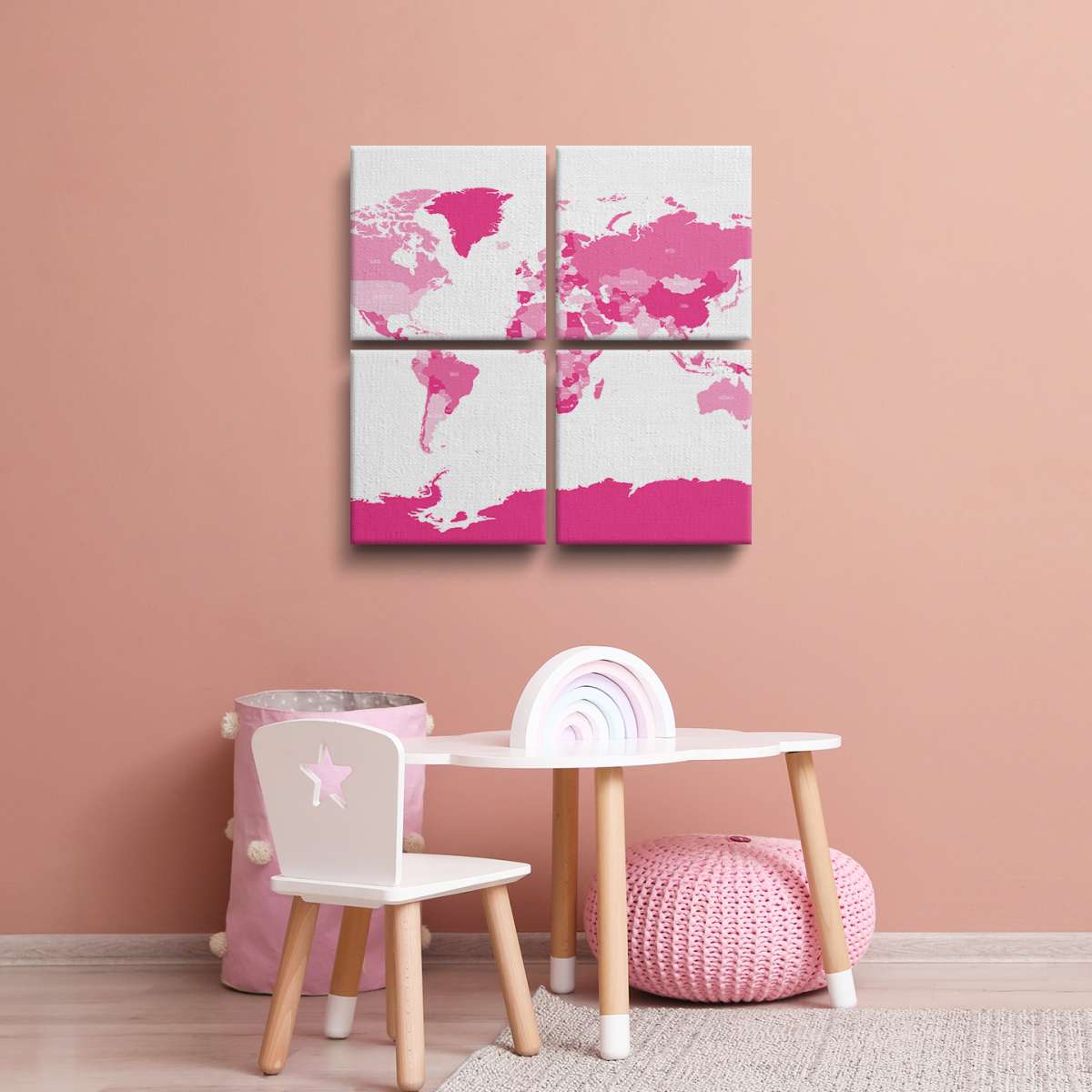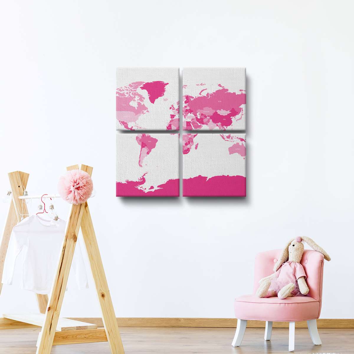 Politická mapa světa - růžová ilustrace