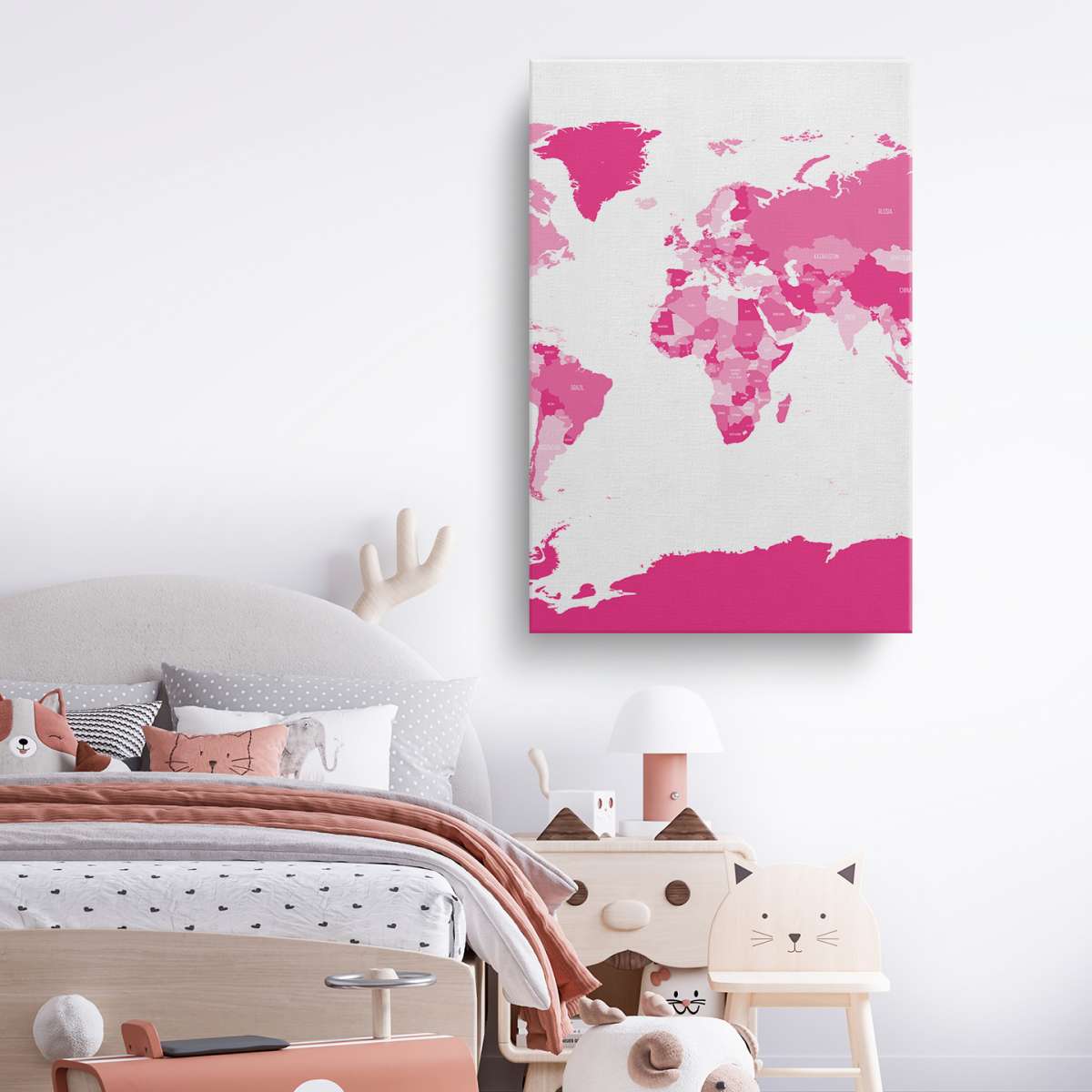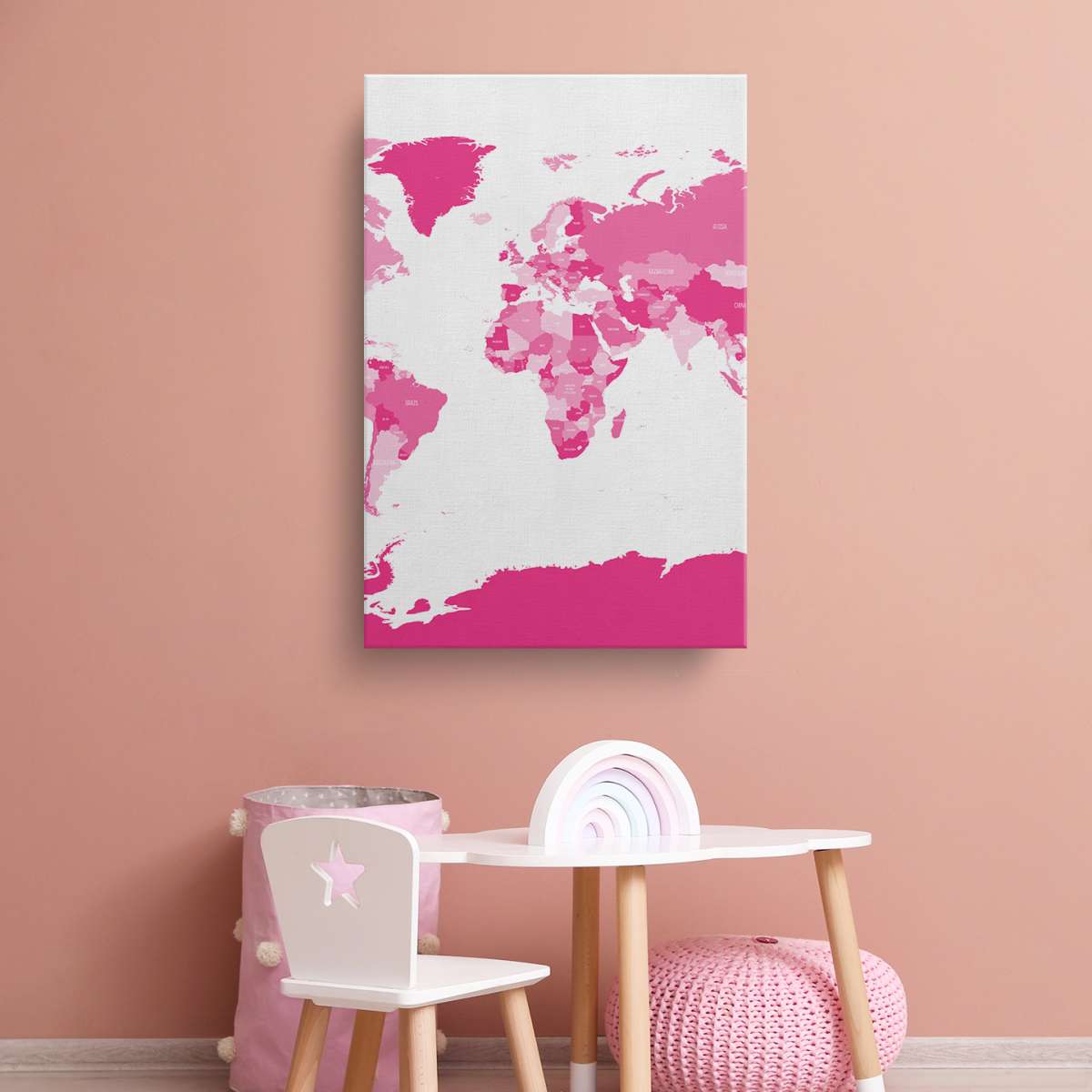 Politická mapa světa - růžová ilustrace