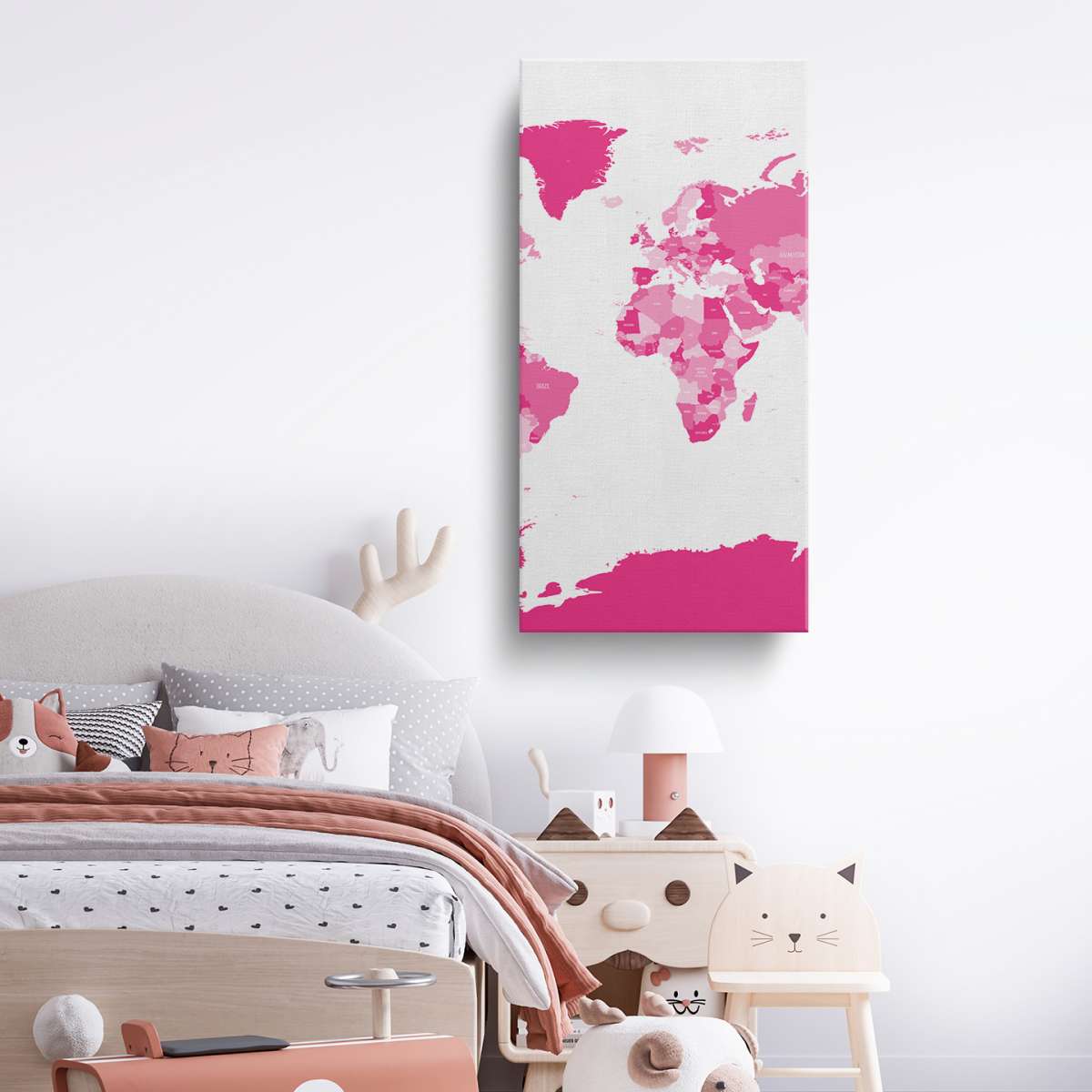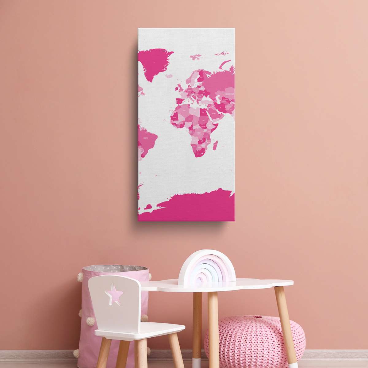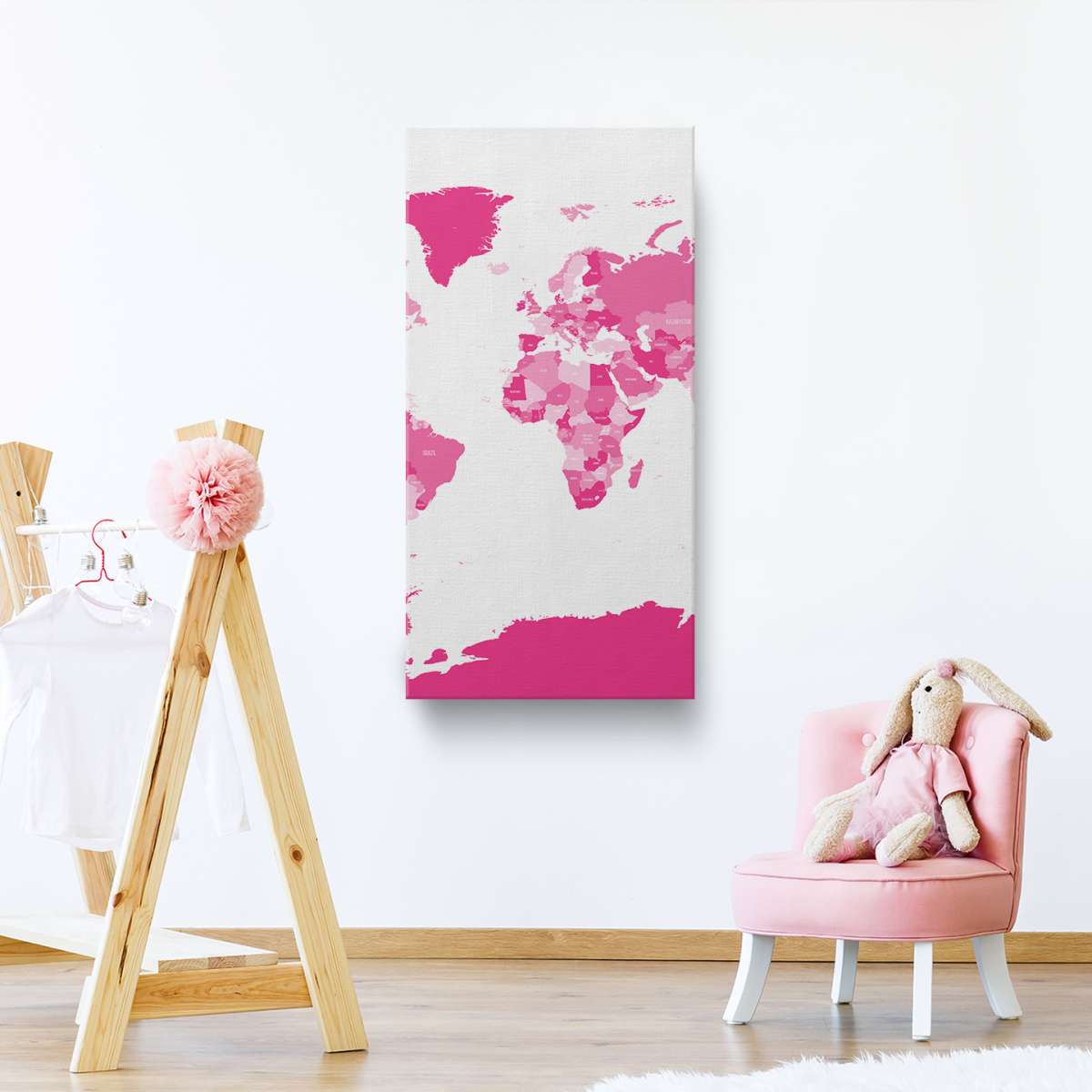 Politická mapa světa - růžová ilustrace