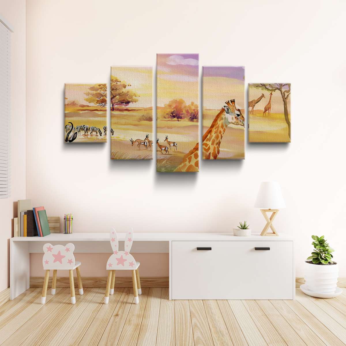Poušť se zvířaty - akvarel