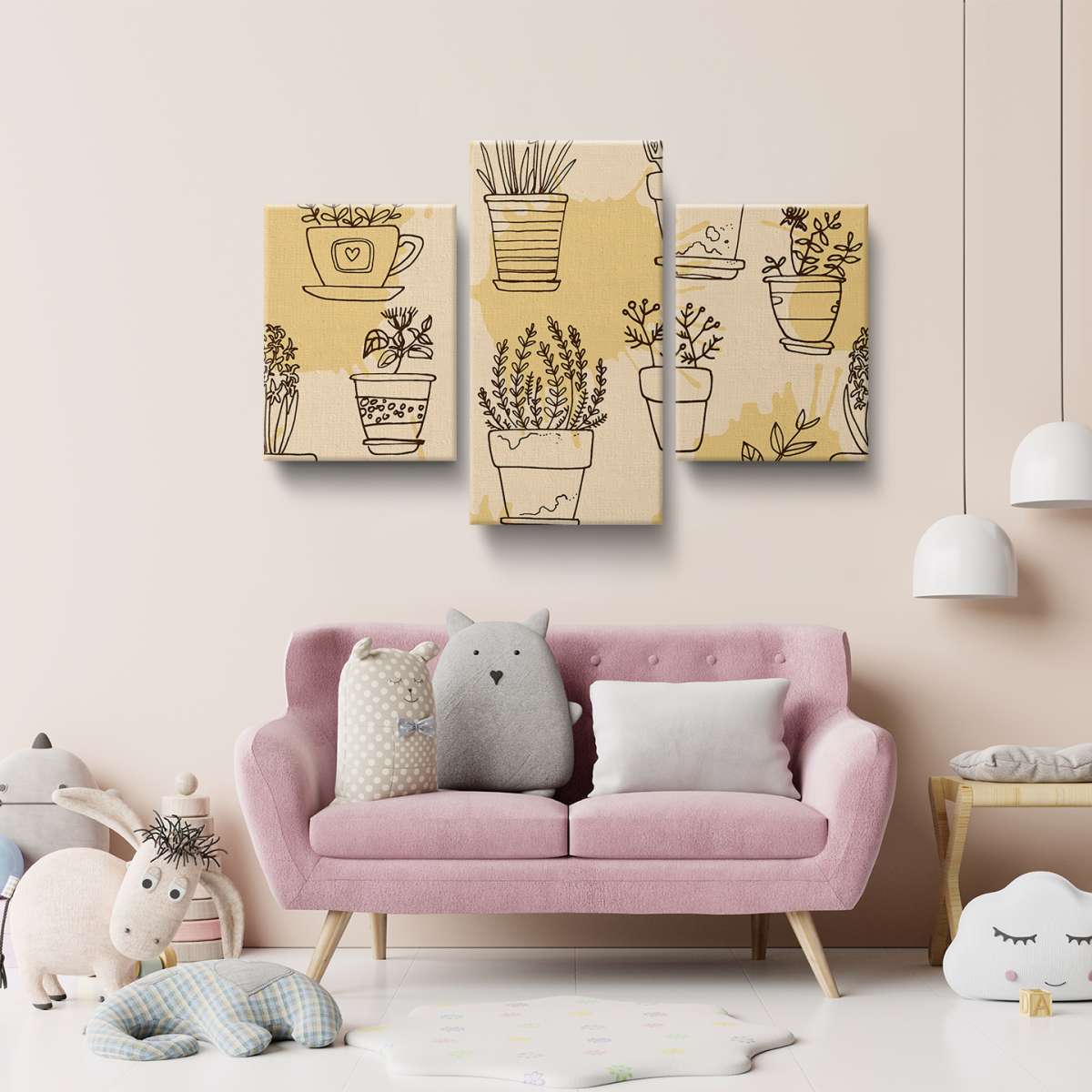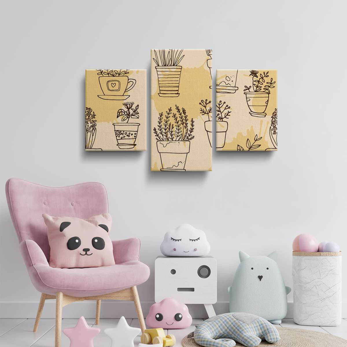 Rostliny v květináčích - oranžový vzor