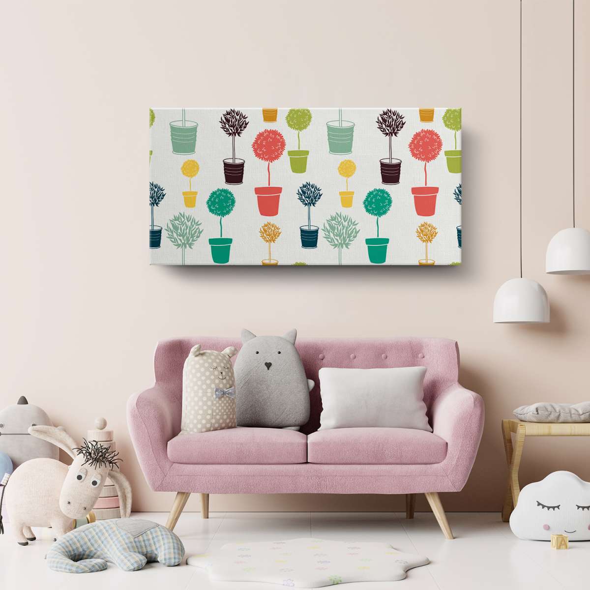 Rostliny v květináčích - vícebarevný vzor