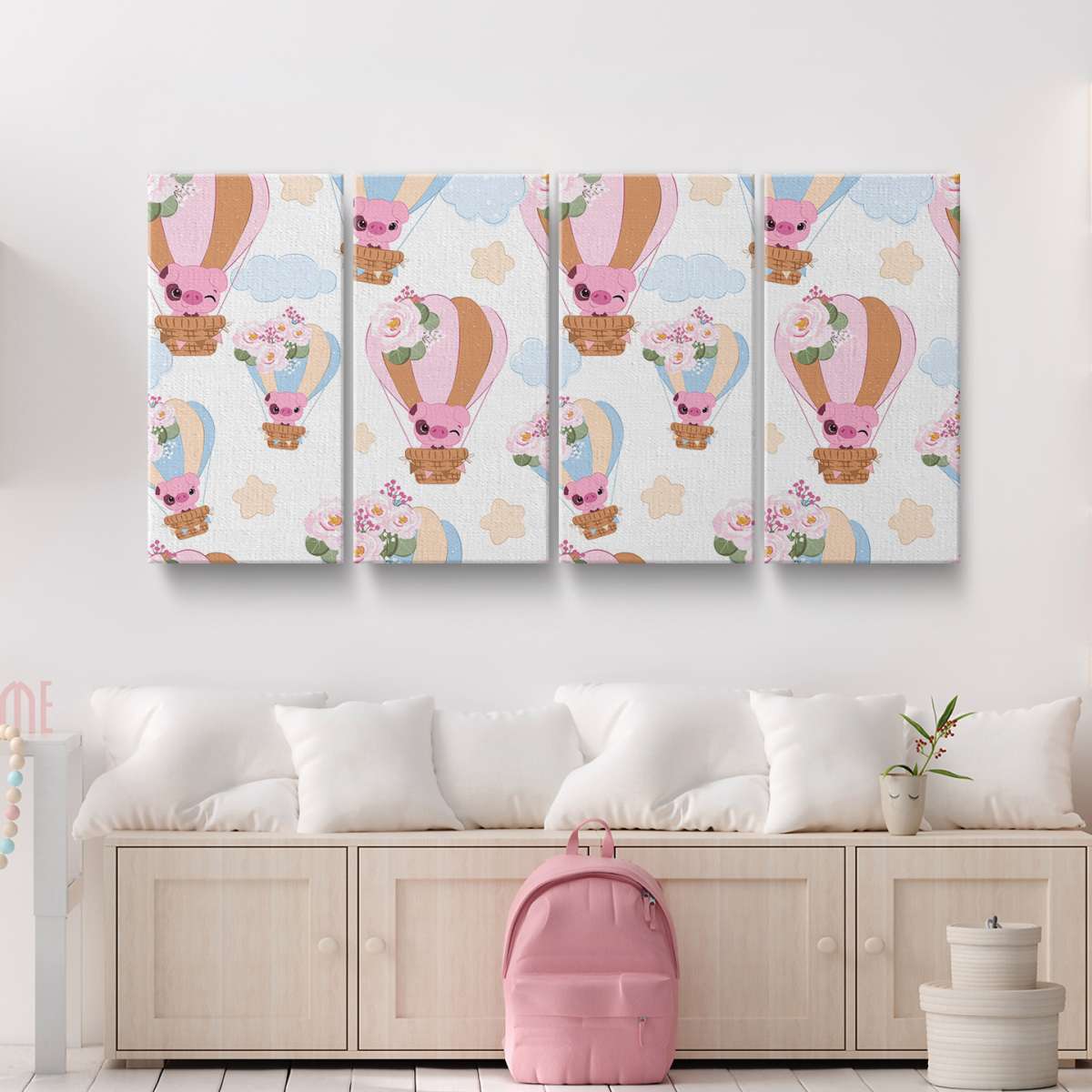 Roztomilé selátko v horkovzdušném balónu - ilustrace
