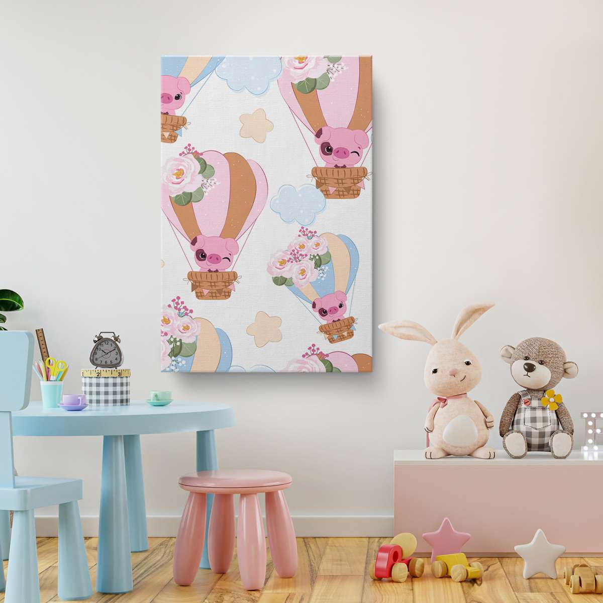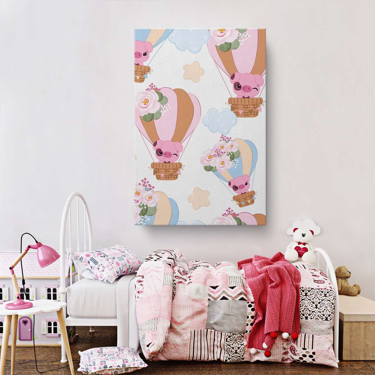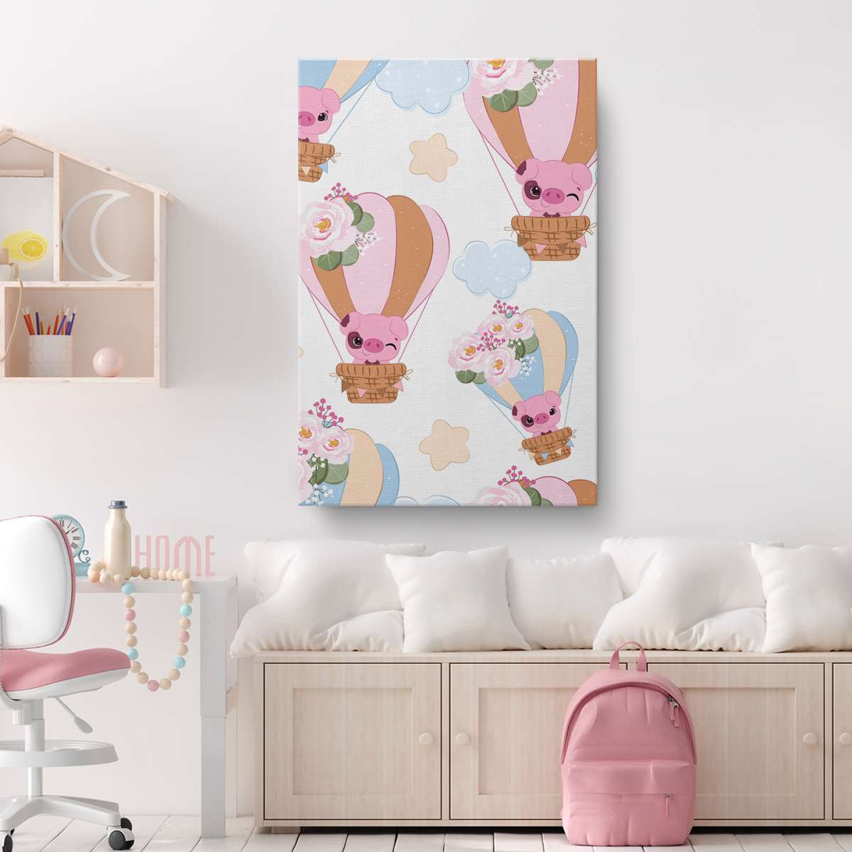 Roztomilé selátko v horkovzdušném balónu - ilustrace
