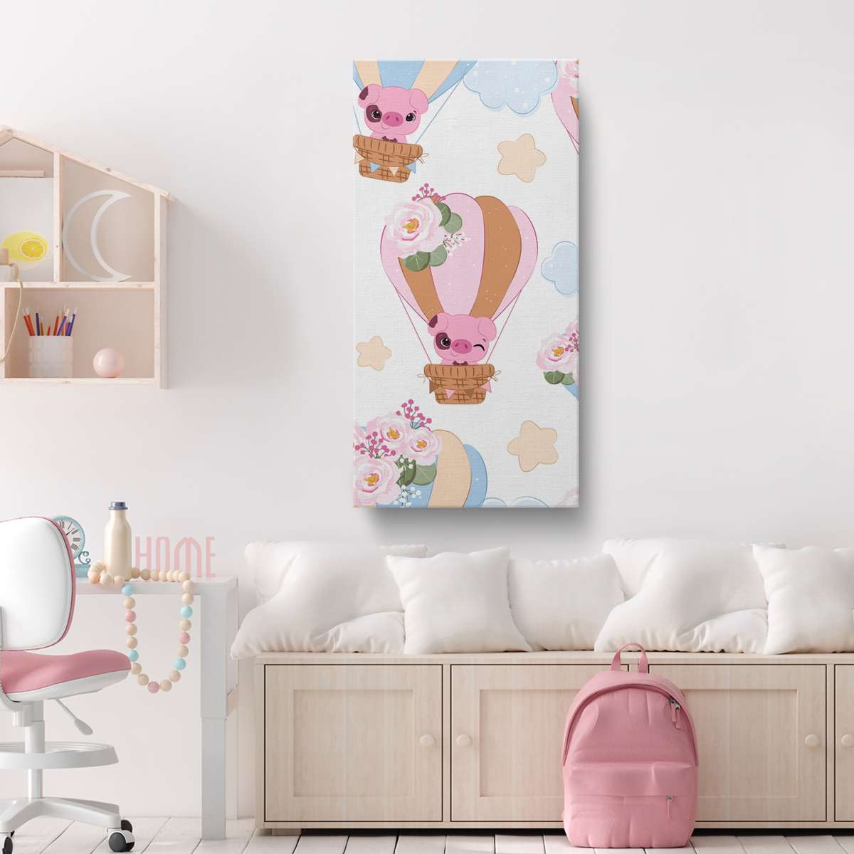 Roztomilé selátko v horkovzdušném balónu - ilustrace