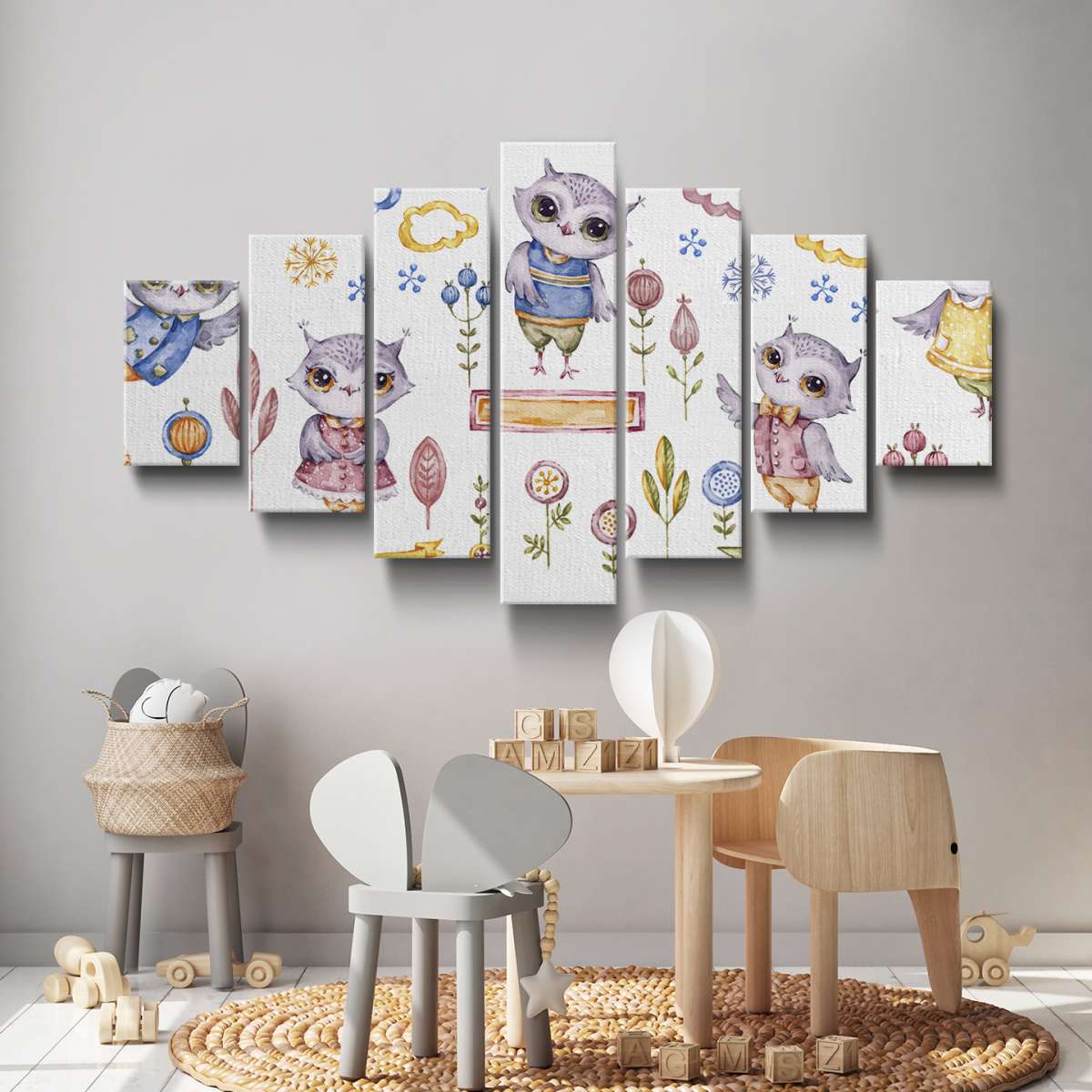 Roztomilé sovy - akvarel