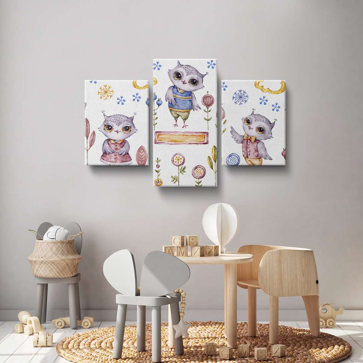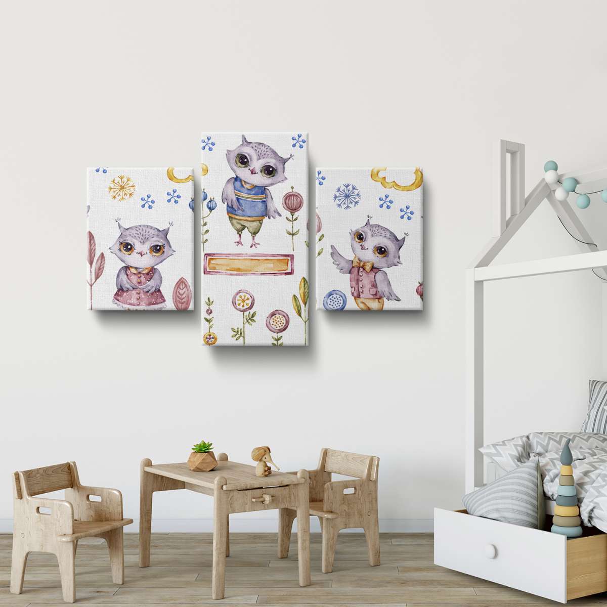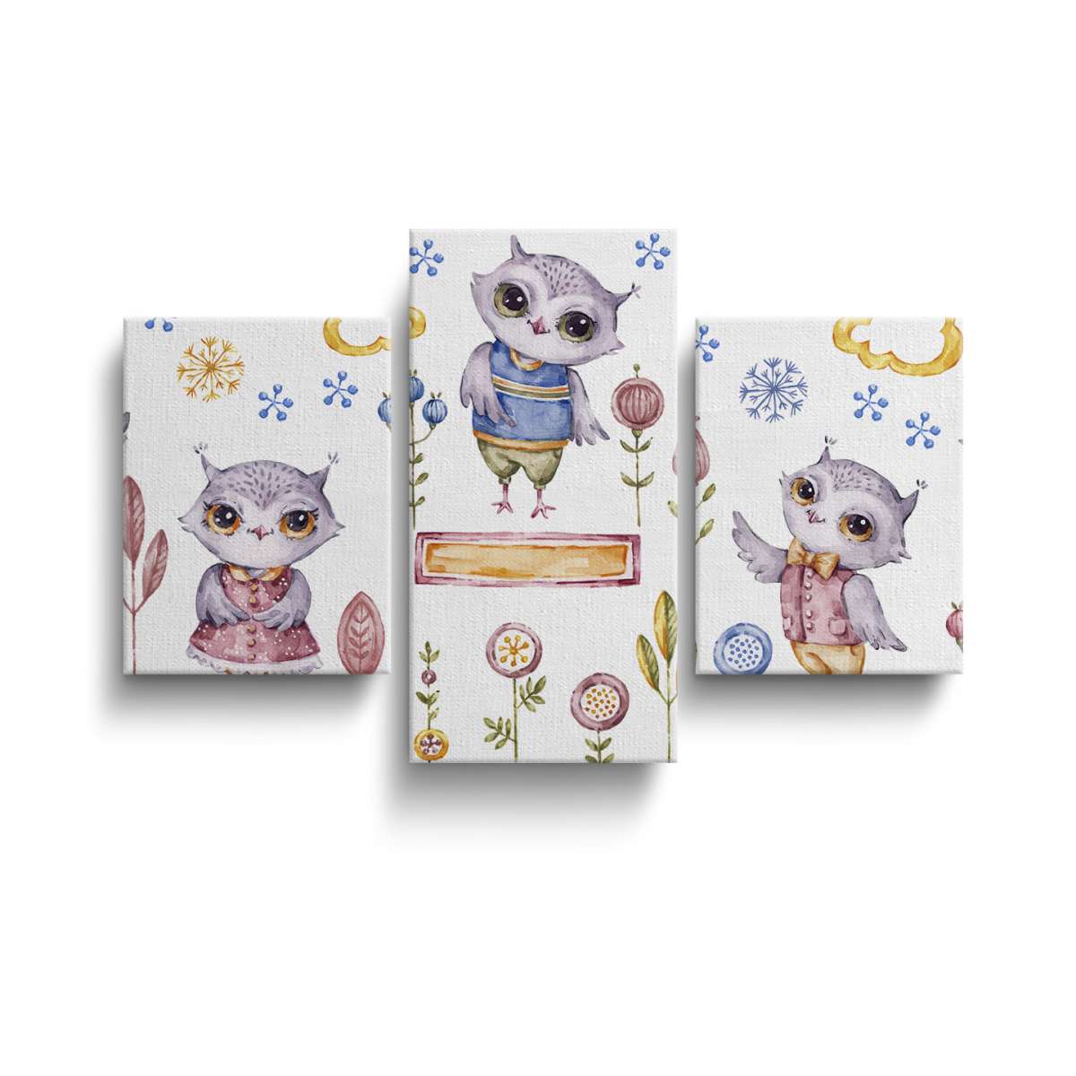 Roztomilé sovy - akvarel