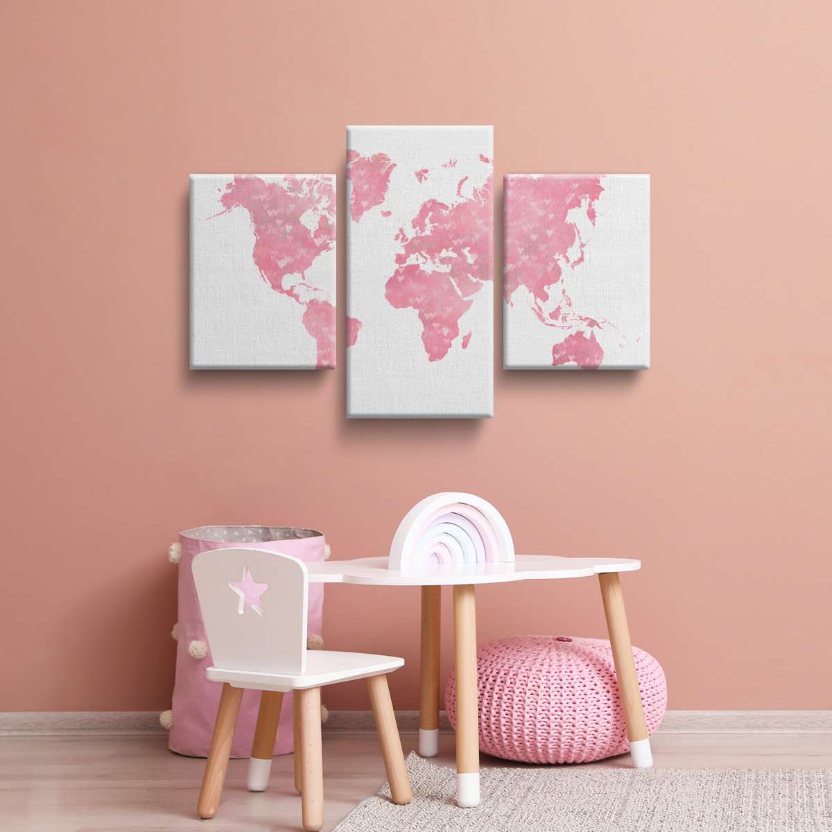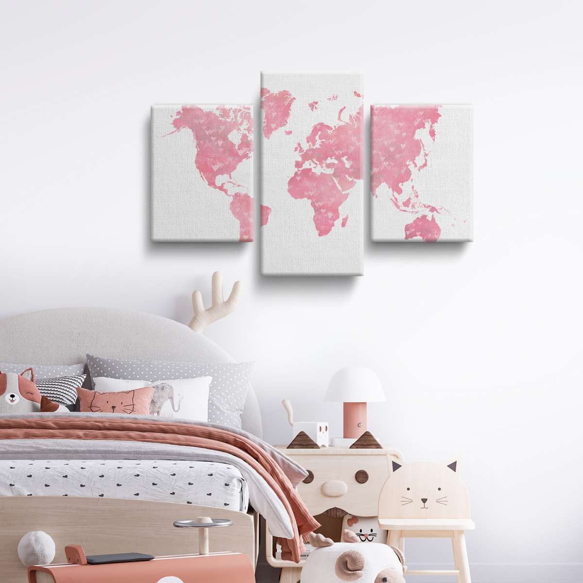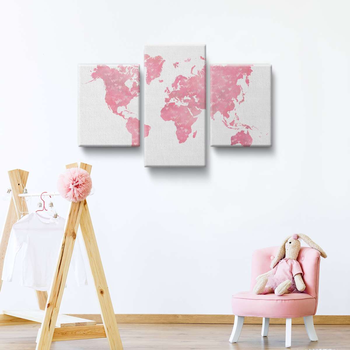 Růžová mapa světa se srdíčky - ilustrace