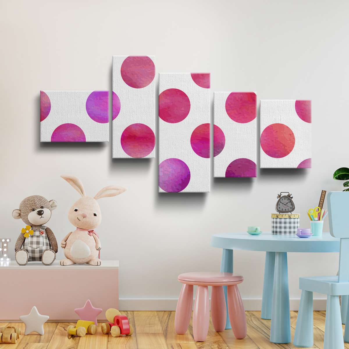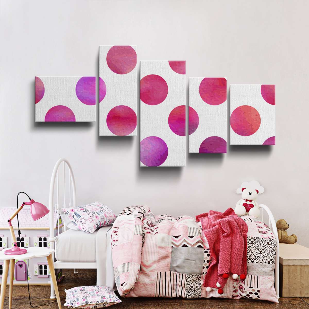 Růžové puntíky - akvarel