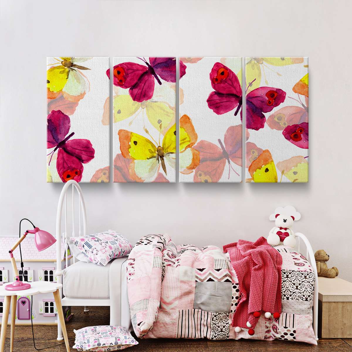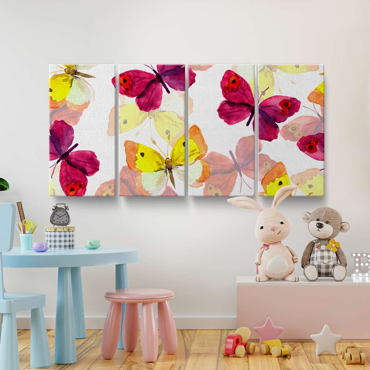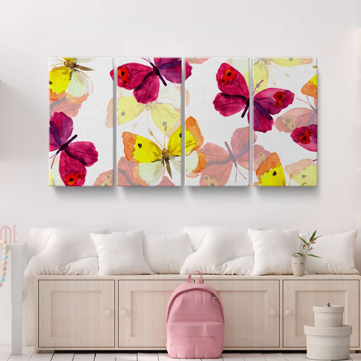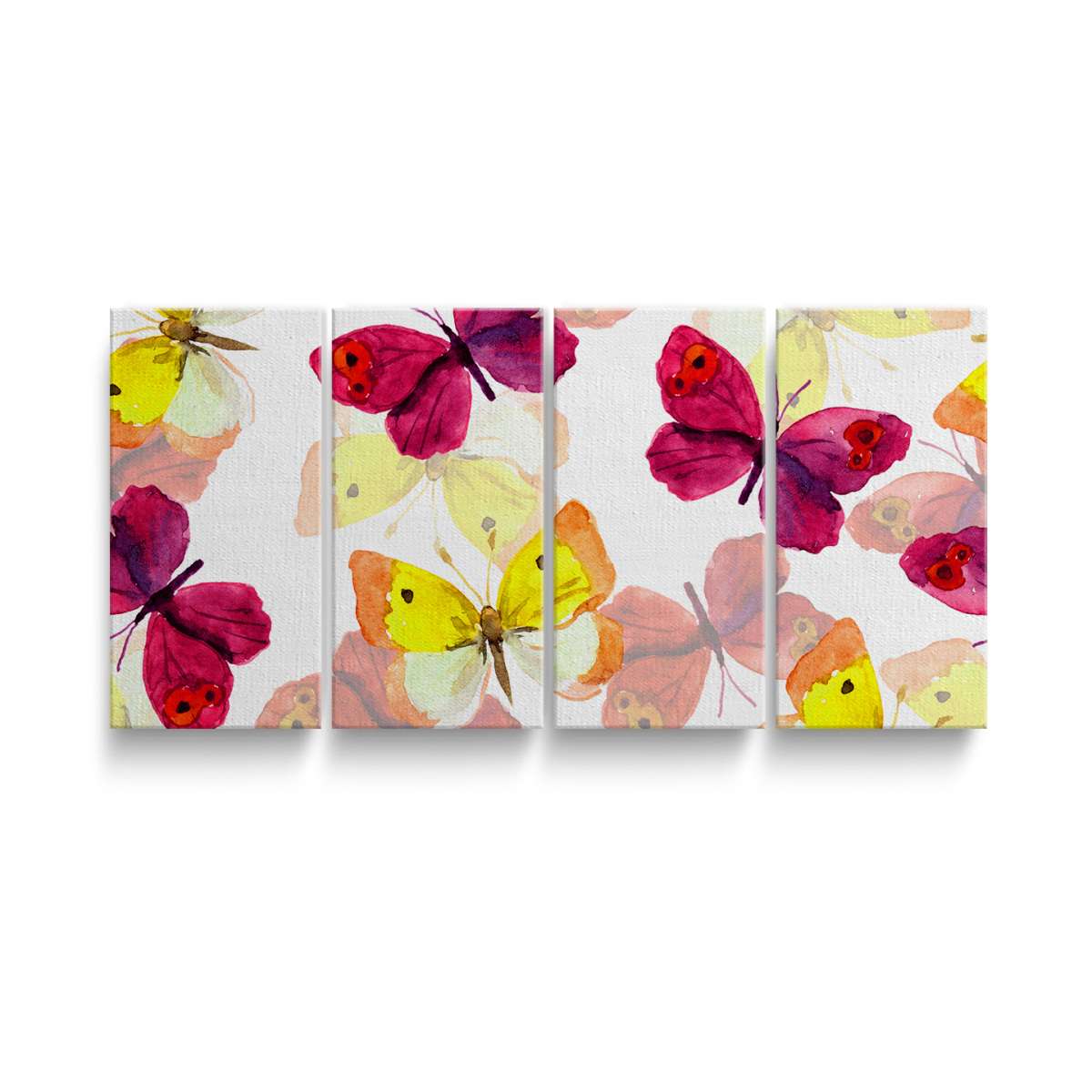 Růžoví a žlutí motýli - akvarel