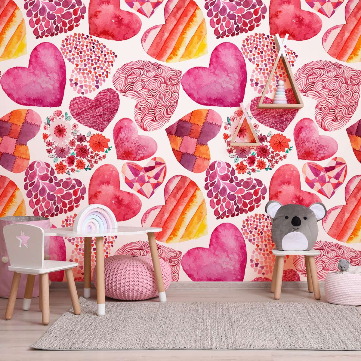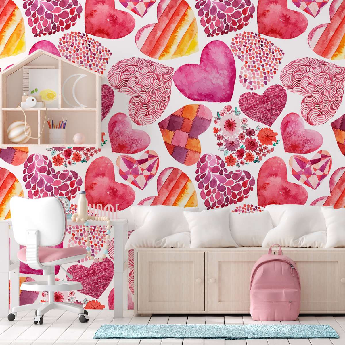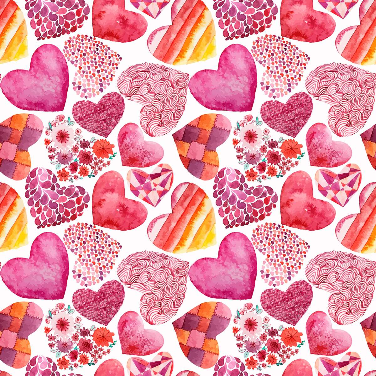 Růžový vzor srdce - akvarel
