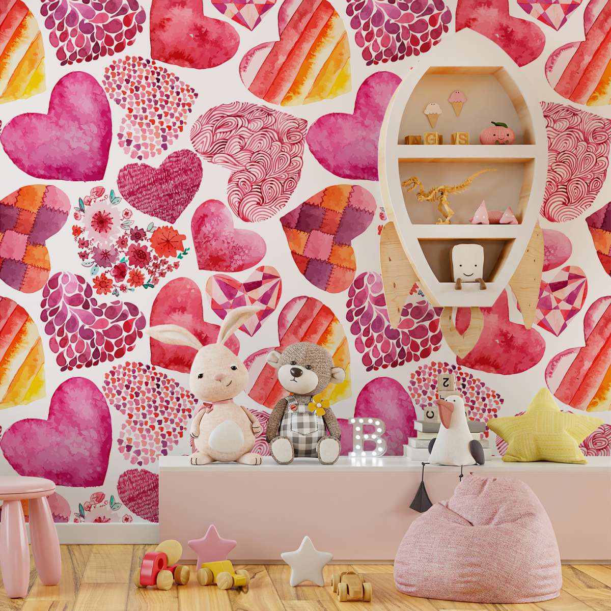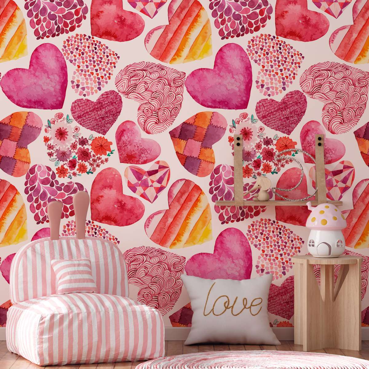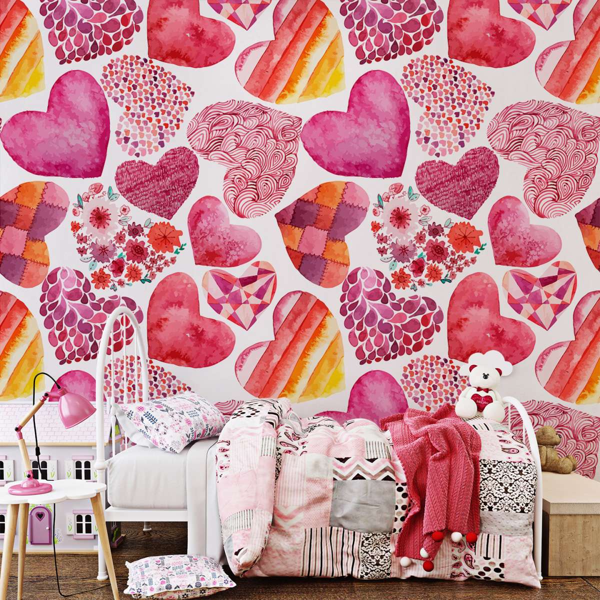 Růžový vzor srdce - akvarel